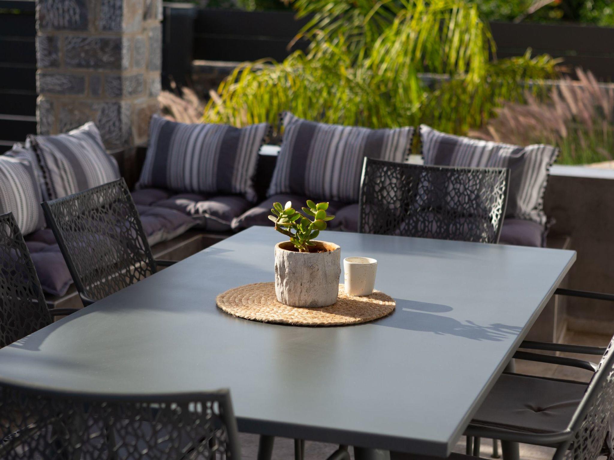 It has a well-appointed outdoor area, comprising of a private swimming pool of 30 square meters with roman steps and 1,2 to 1,5 meters depth, and a beautiful garden with olive trees, a variety of flowers and palm trees. Sun loungers, umbrella and a shower tray with cold and hot water are also available. The scenery will inspire relaxing and quiet moments or not-so-quiet ones, maybe enjoying a BBQ with your loved ones. An extra WC is also available in an auxiliary building, serving the pool and barbeque area. In the same building there is also a washing machine.