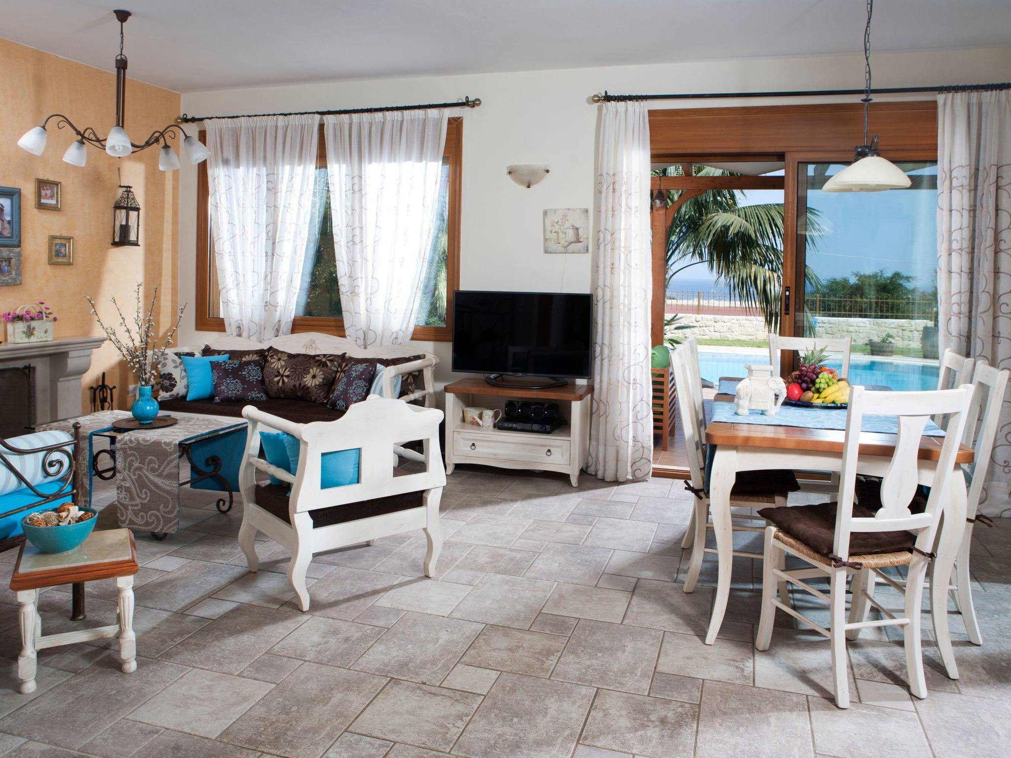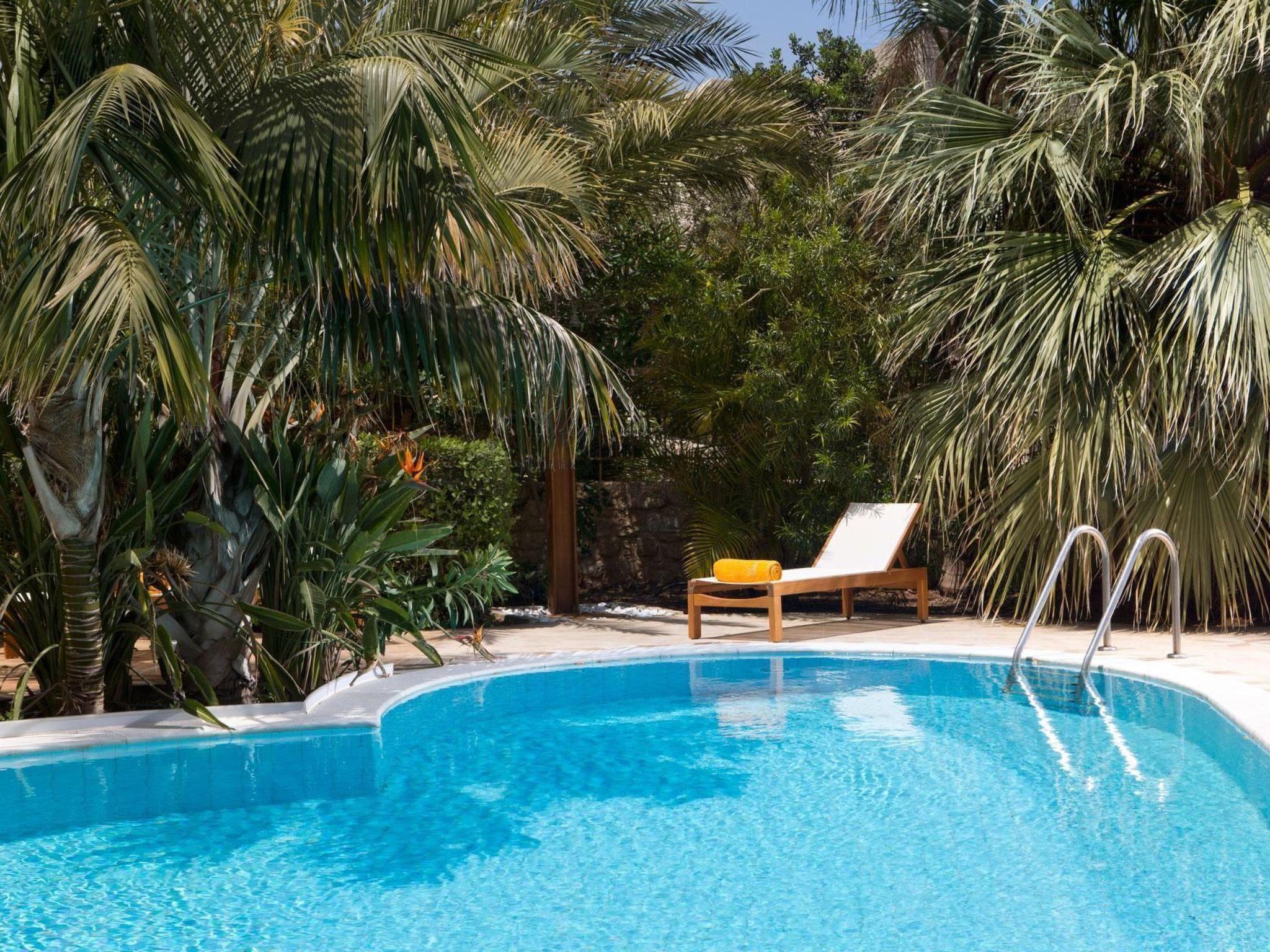 The private pool and the well-tended garden with lush trees and Mediterranean-style planting are also located on the approximately 600 m² plot. Around the garden, a natural stone wall with fence ensures your privacy, but does not prevent you from enjoying a marvellous view over the natural landscape to the sea. The pool can be used from April to October.