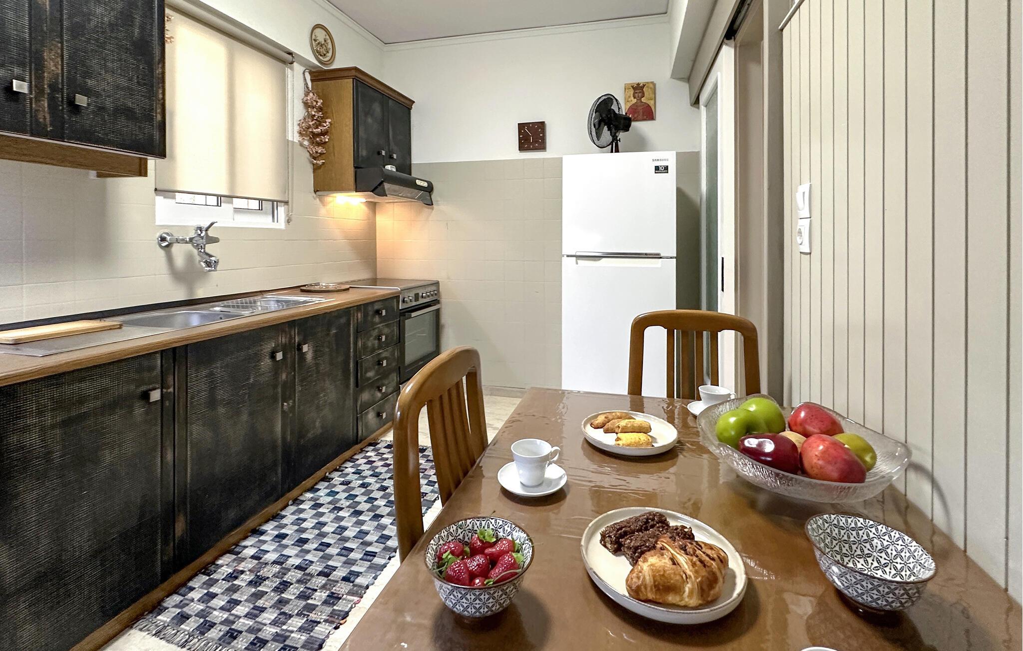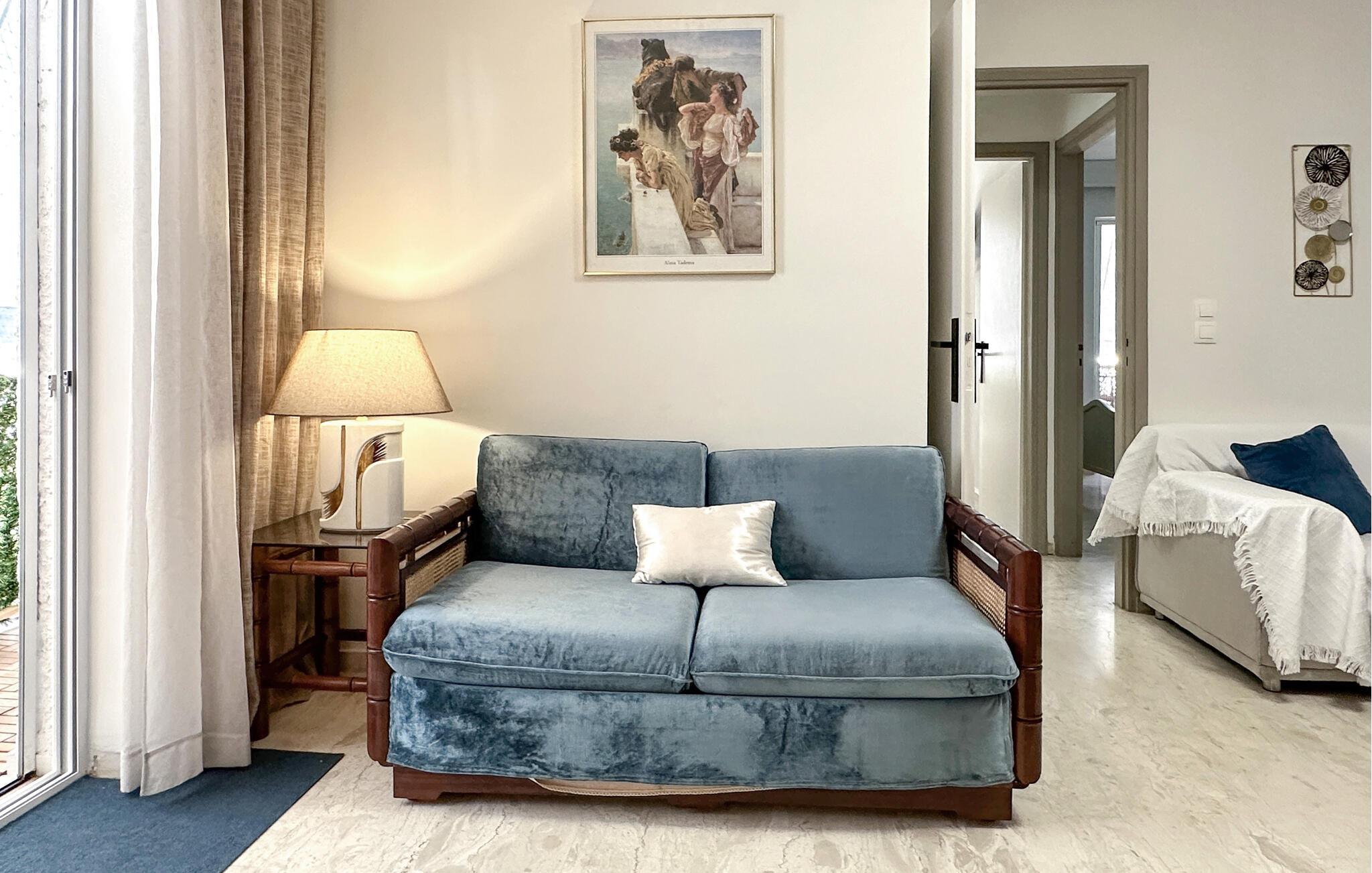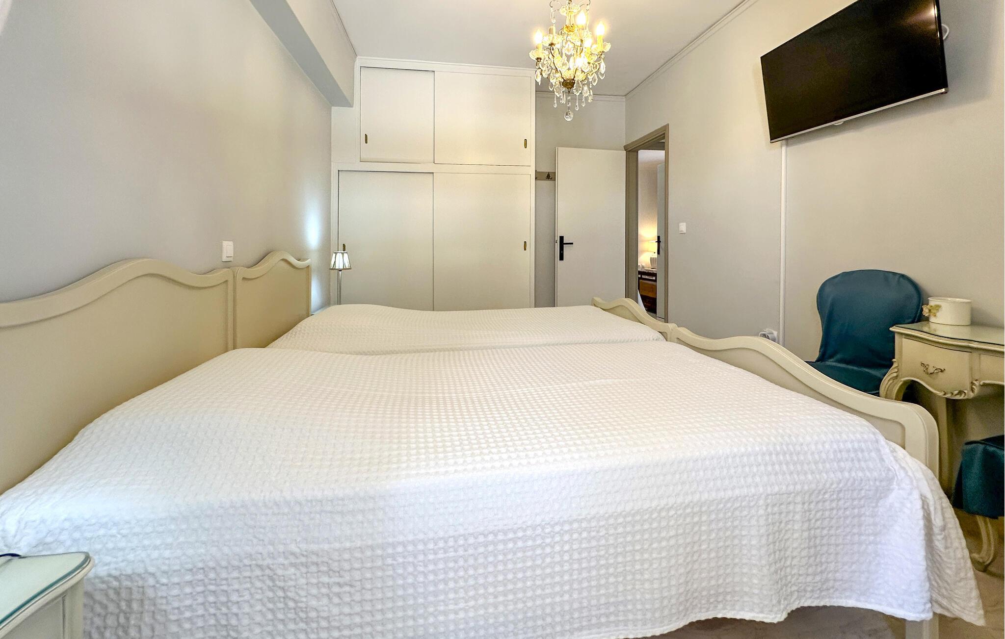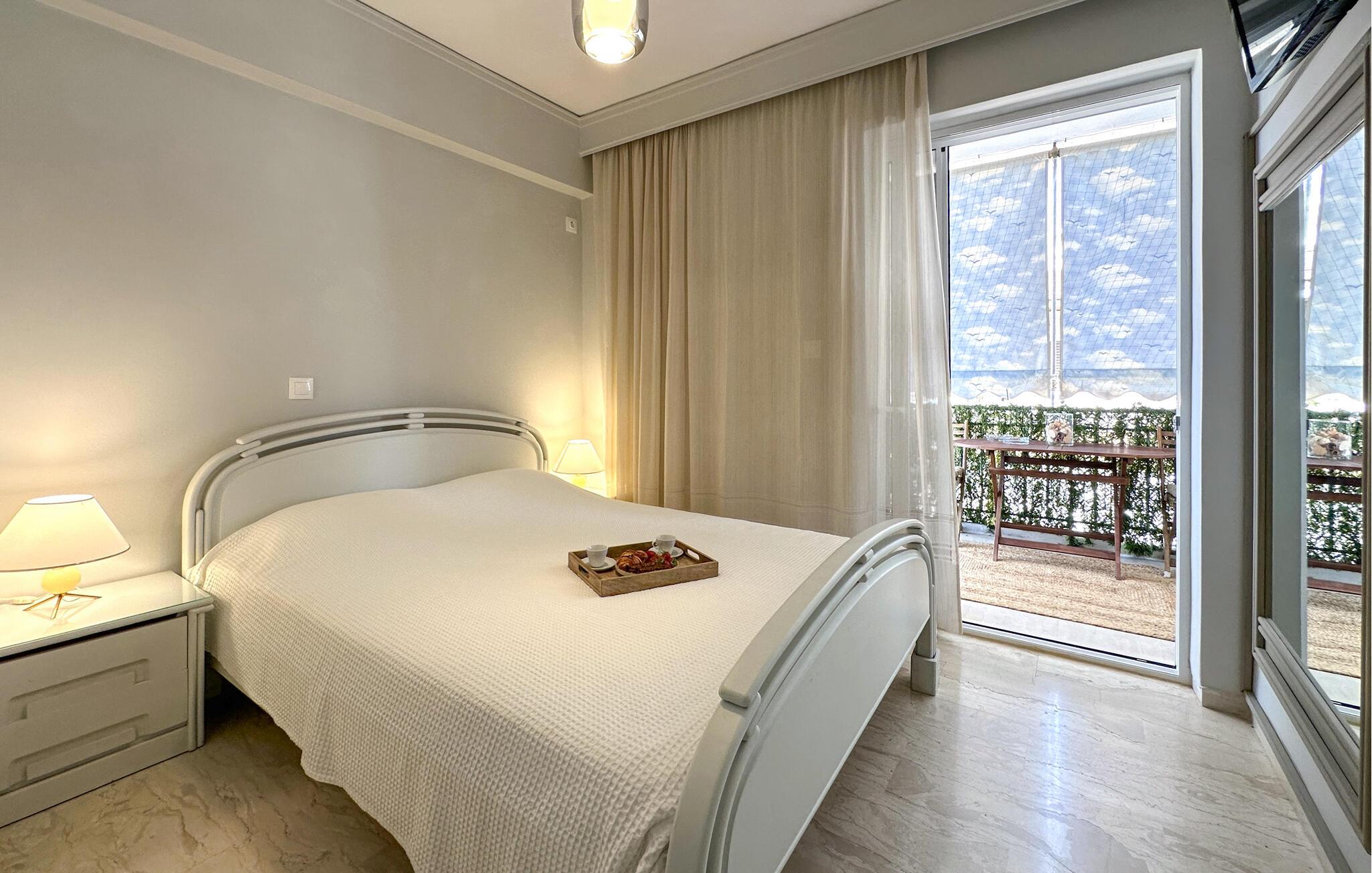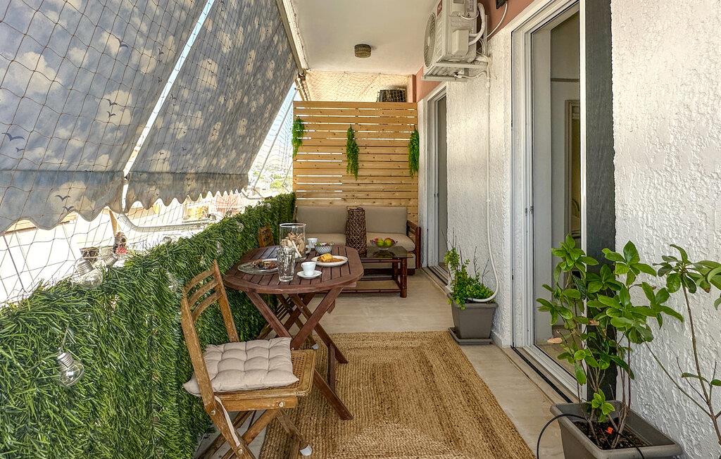 Denne komfortable ferielejlighed er ideel til en familie eller to vennepar, der ønsker at tilbringe afslappende dage i Grækenland. Den smagfulde indretning skaber en hyggelig atmosfære, mens det veludstyrede spisekøkken lægger op til at lave mad sammen. Den store stue lægger op til at blive hængende, hvad enten det er til et spil kort eller en underholdende film. Nyd afslappende stunder på altanen, der er beskyttet mod udsigt og sol, og afslut dagen med en forfriskende frappe. Den centrale beliggenhed gør lejligheden til det perfekte udgangspunkt for jeres udforskninger.