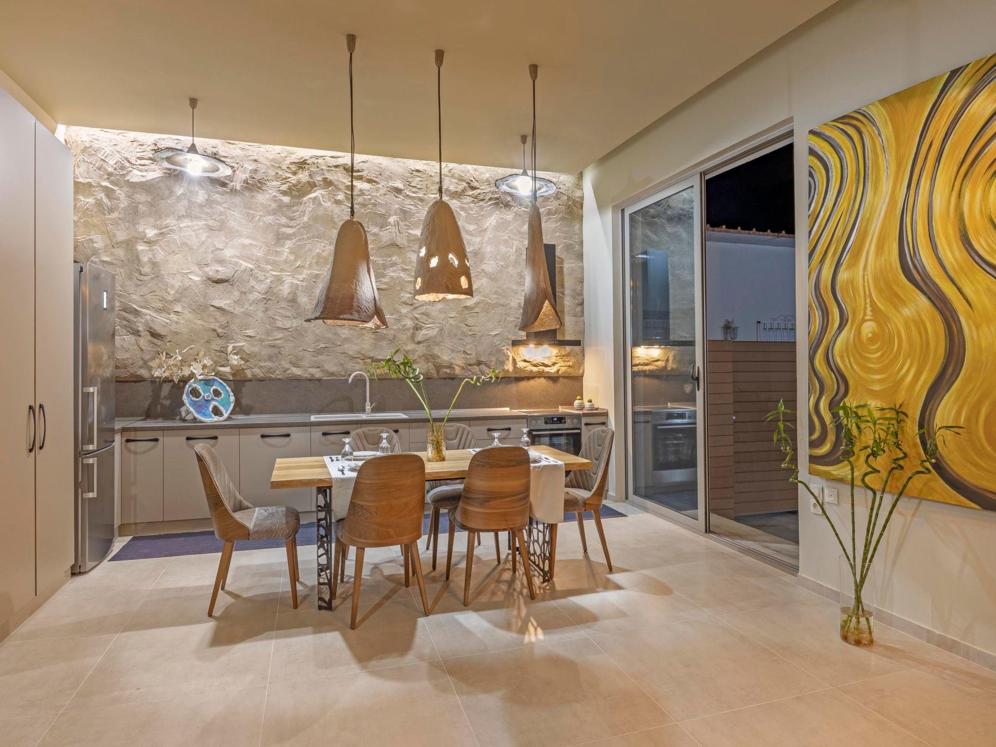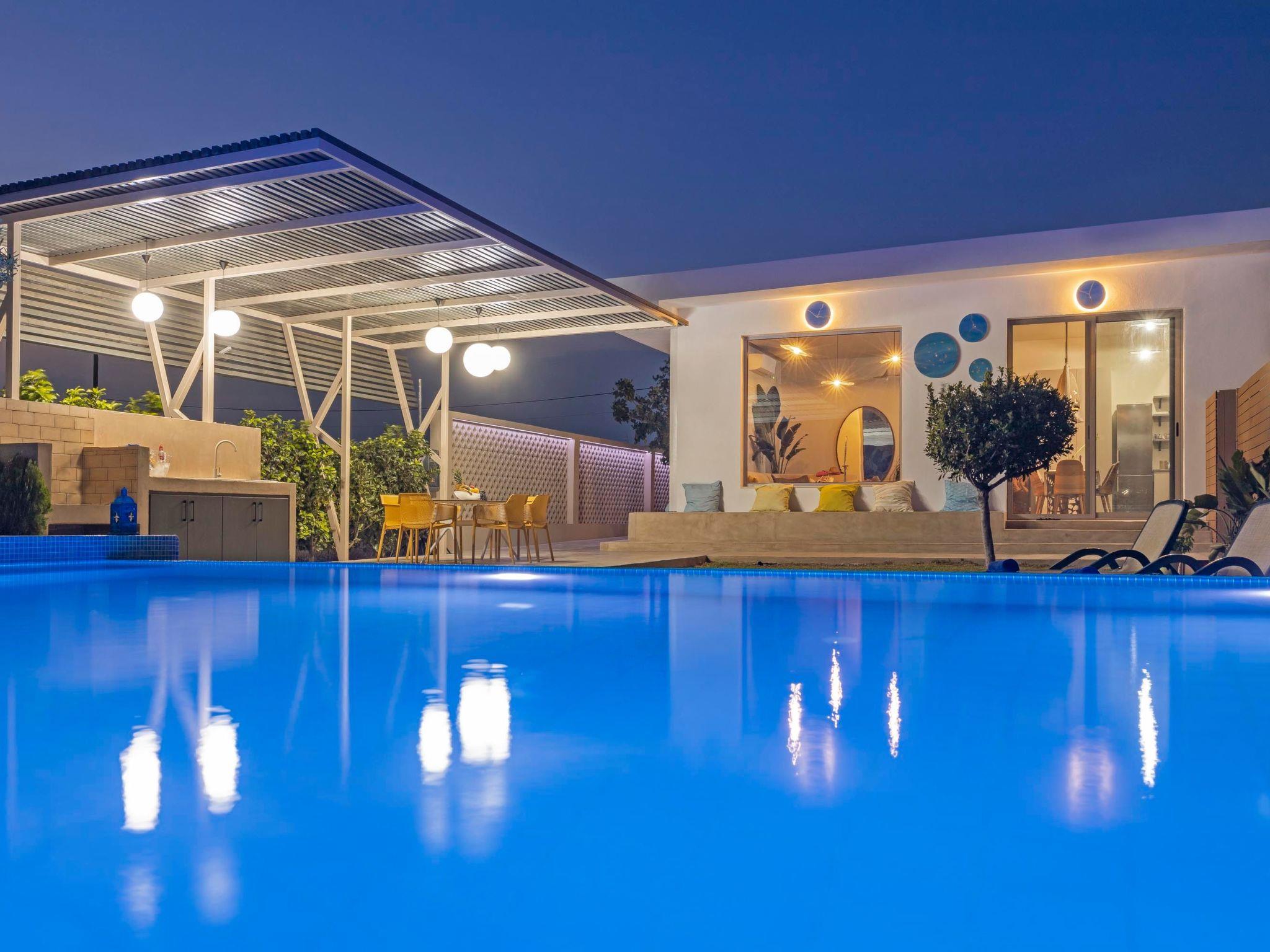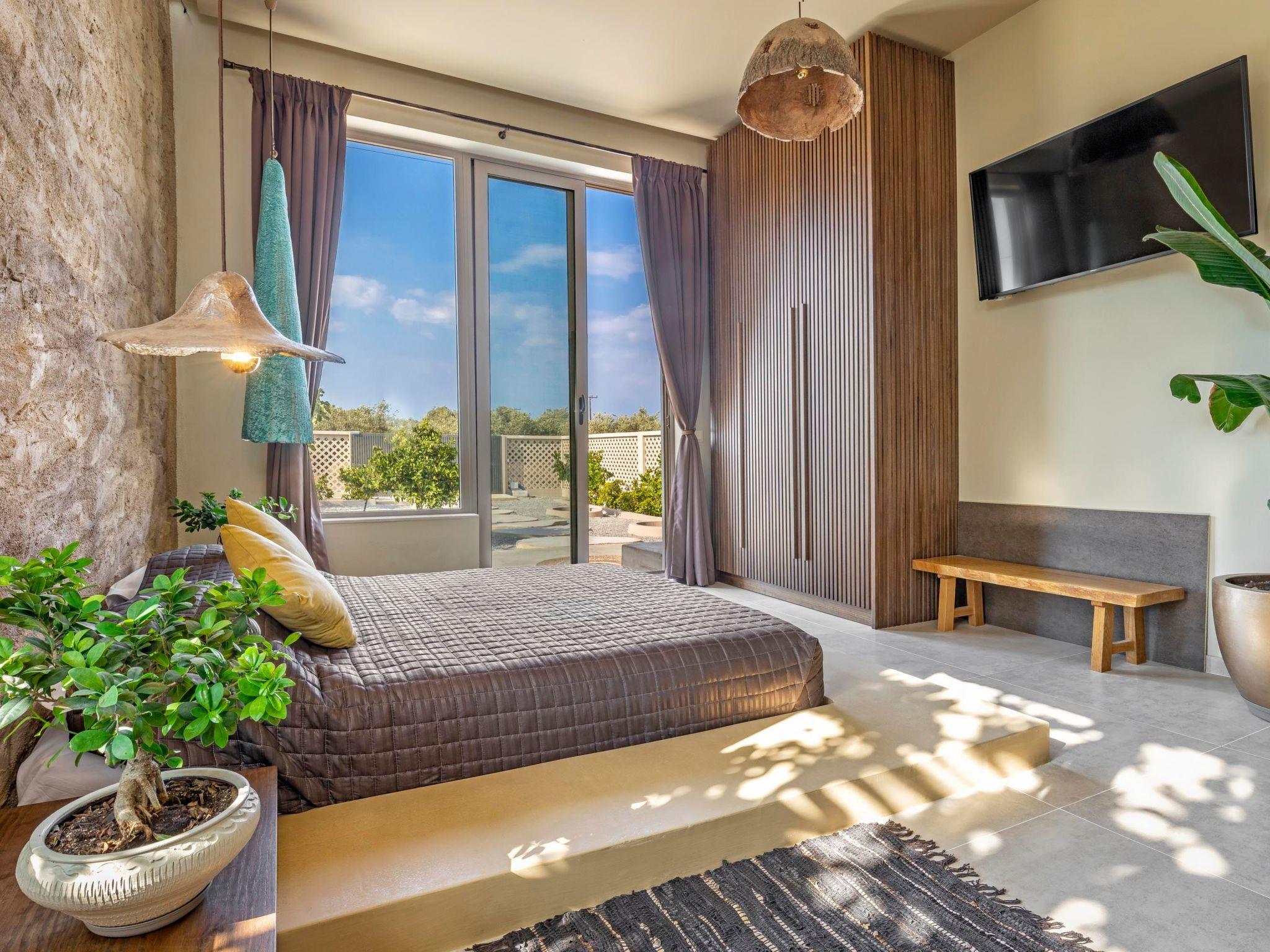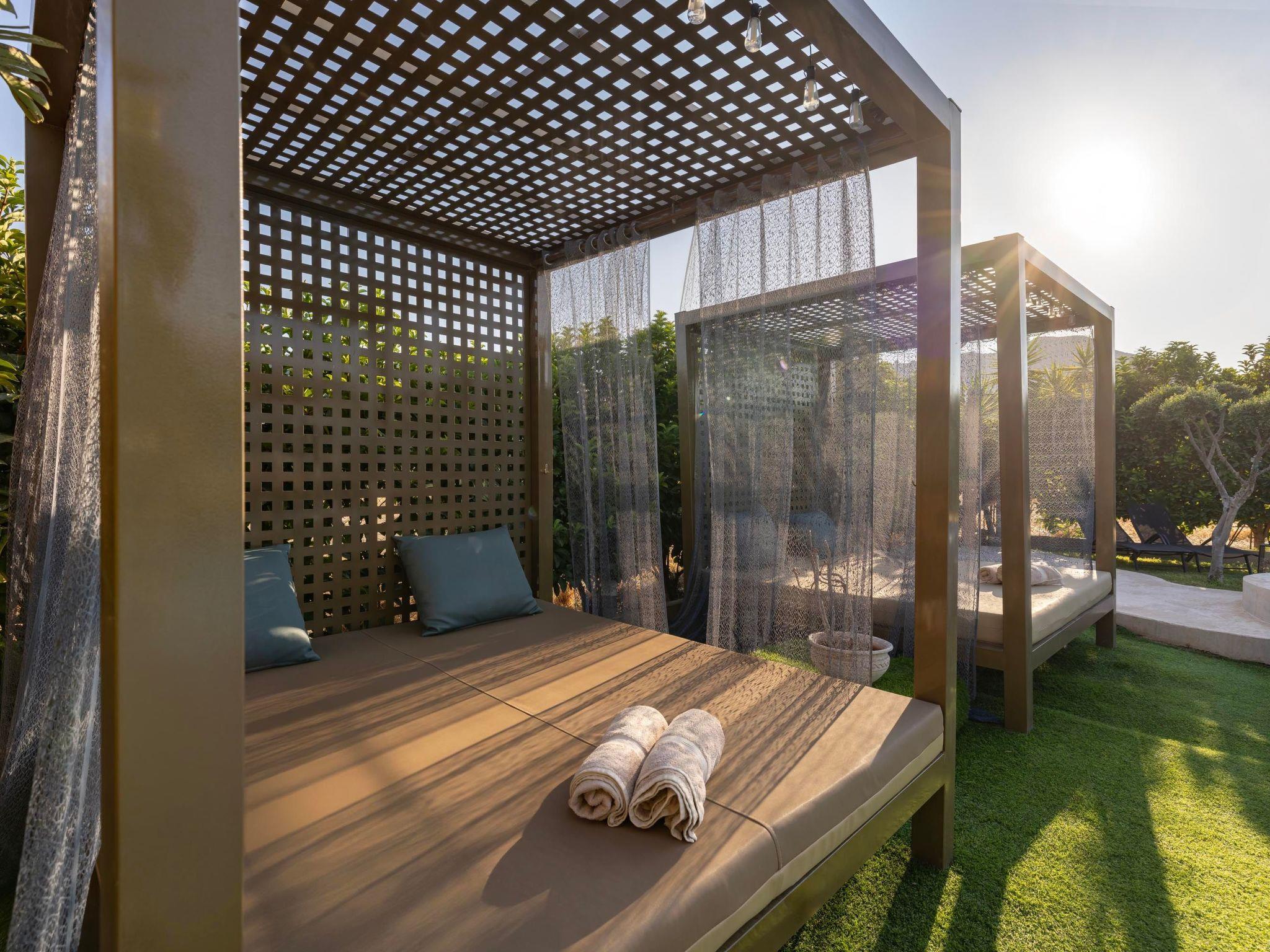 The villa has 2 fully air-conditioned bedrooms with double beds in warm tones and a unique bohemian design. There are 2 unique bathrooms with a shower. The kitchen is fully equipped to accommodate your culinary habits, as well as your experiments with local products and recipes. The ample living room is particularly inviting, with handmade furniture and plenty of free space to use as you please. There is a flat screen with satellite channels in each bedroom and free Wi-Fi throughout the property. The property’s outdoor space is a highlight on its’ own merit. You will enjoy your time at the private swimming pool as the deck is fully equipped with sunbeds and pergola. Outdoor seating areas include the deck and a beautiful veranda with BBQ and outdoor dining table overlooking famous Tsampika hill.