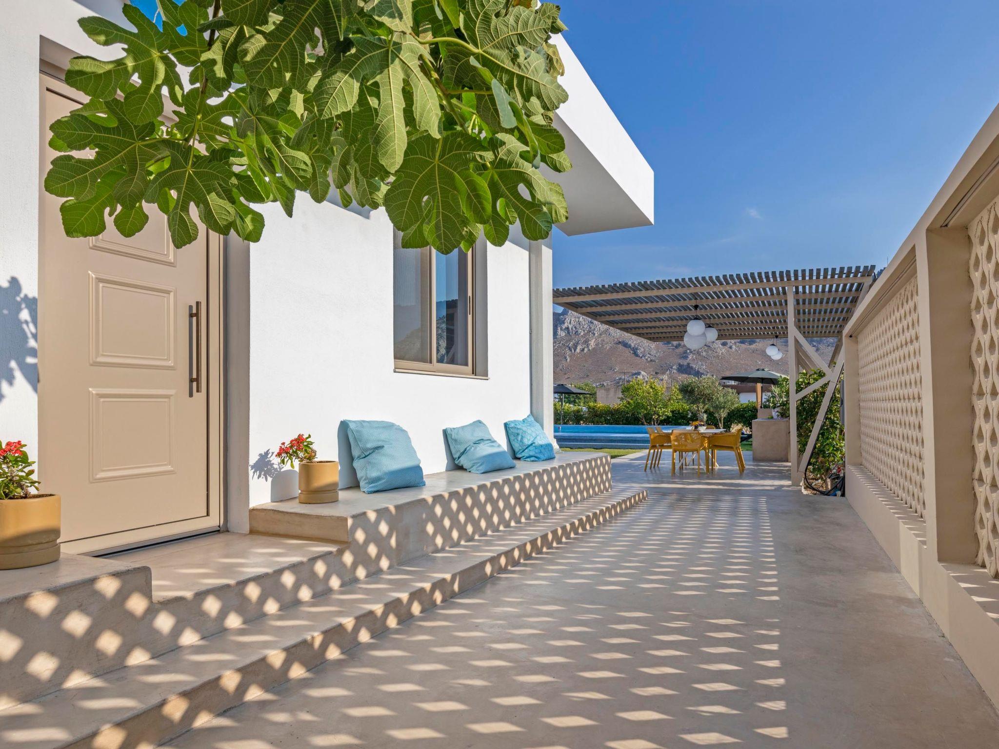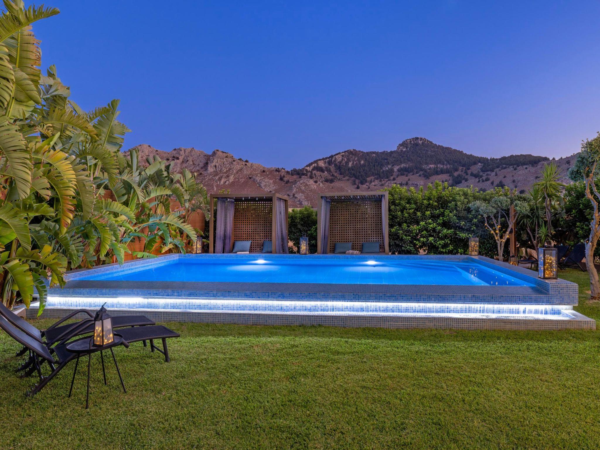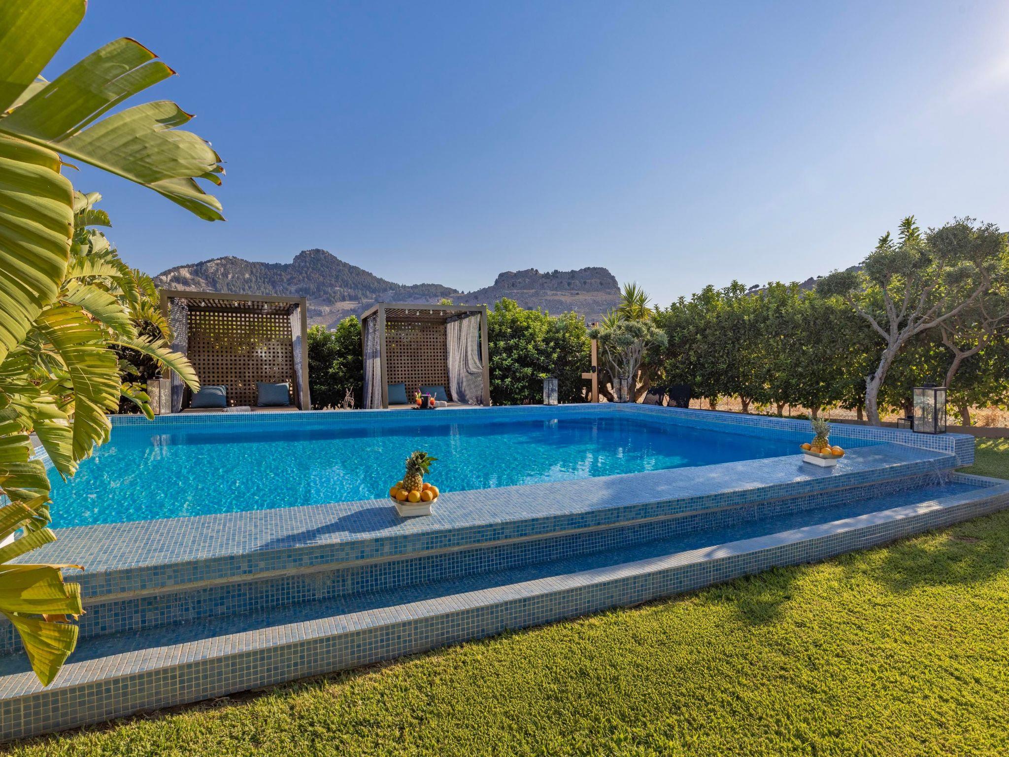 The Villa is located 2 km from Kolympia Village. In the village you will find shops, restaurants, pharmacies, car rentals etc. Tsampika beach, is considered the best sandy beach in Rhodes, is only 8 minutes away by car. One of the most charming locations in Rhodes, the Seven Springs forest is only 1km away. This unique place of natural beauty has scattered freshwater springs, which end up in a small lake. You shouldn’t miss visiting Lindos, at a driving distance of 25 minutes, and its magnificent Acropolis. There you’ll find the most magnificent archaeological site of Rhodes along with the most idyllic beaches. Also, you should visit the Old Town of Rhodes, which is known as the oldest inhabited medieval city in Europe and is located at a driving distance of only 35 minutes.