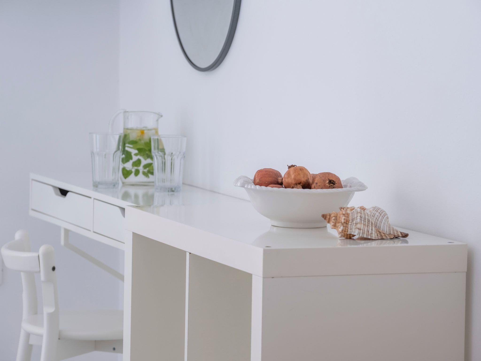 Studio apartment is 30sqm. There are a double bed 1.80x2.00m, air- condition, free internet connection (wifi and Ethernet), kitchen with all utilities, microwave, kettle, two ring kitchen, small oven, coffee maker and kitchen all utilities. Also there is a bathroom with shower. Apartment has a big sea view balcony with dining table and sun beds.