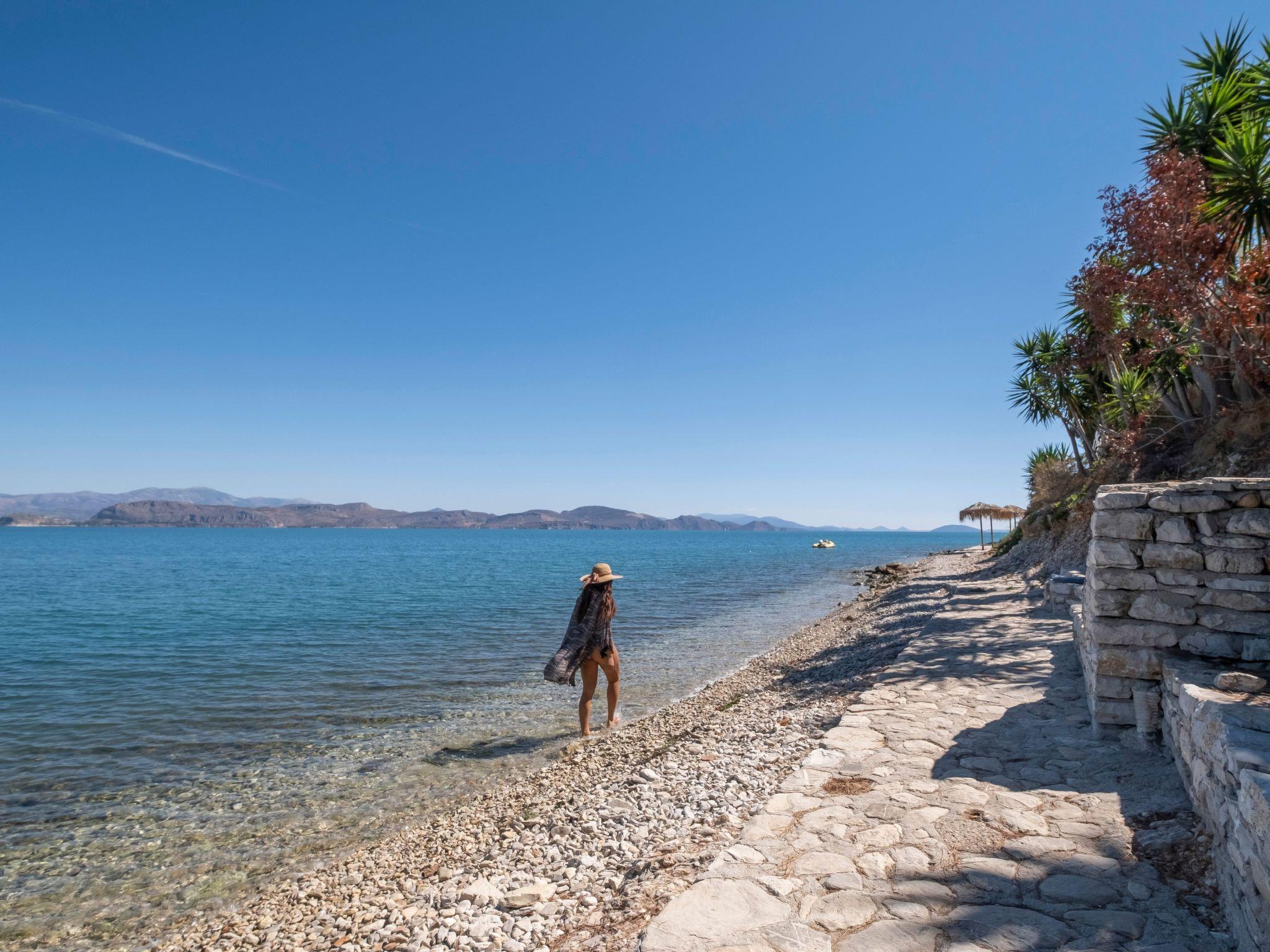 It lies directly beside the crystal-clear sea and it is front of quite no private peaceful beach, only few steps away, enjoying your swimming each time.
