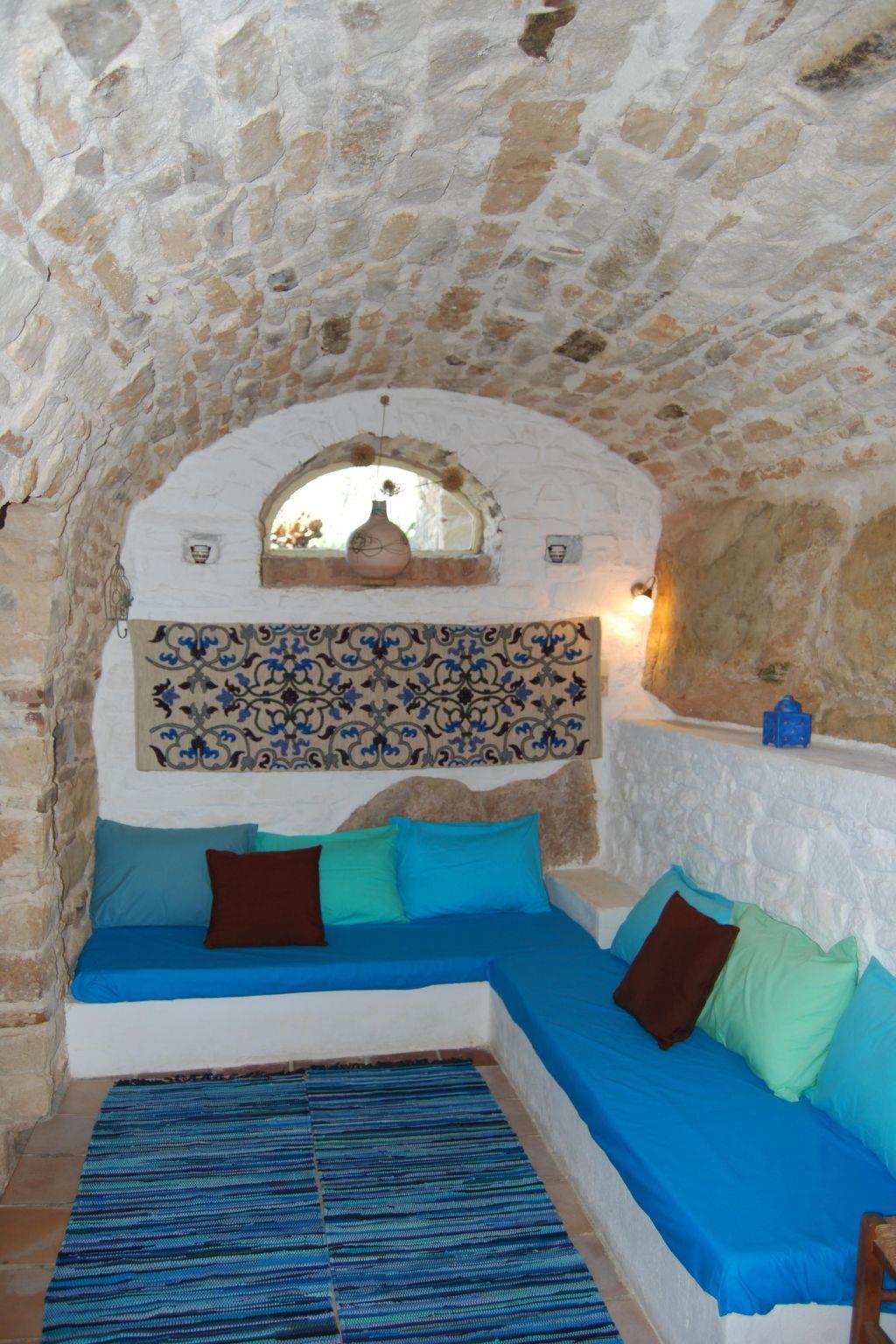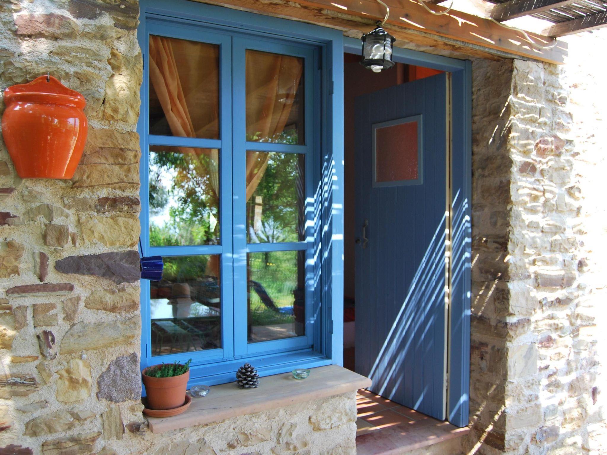 This stony house is quietly and idyllically situated on a hill planted with olive trees and wild pistachio. It offers a wonderful view of the sea and the coast of Turkey. The sandy beach at Karfas is only 300 metres from the house.