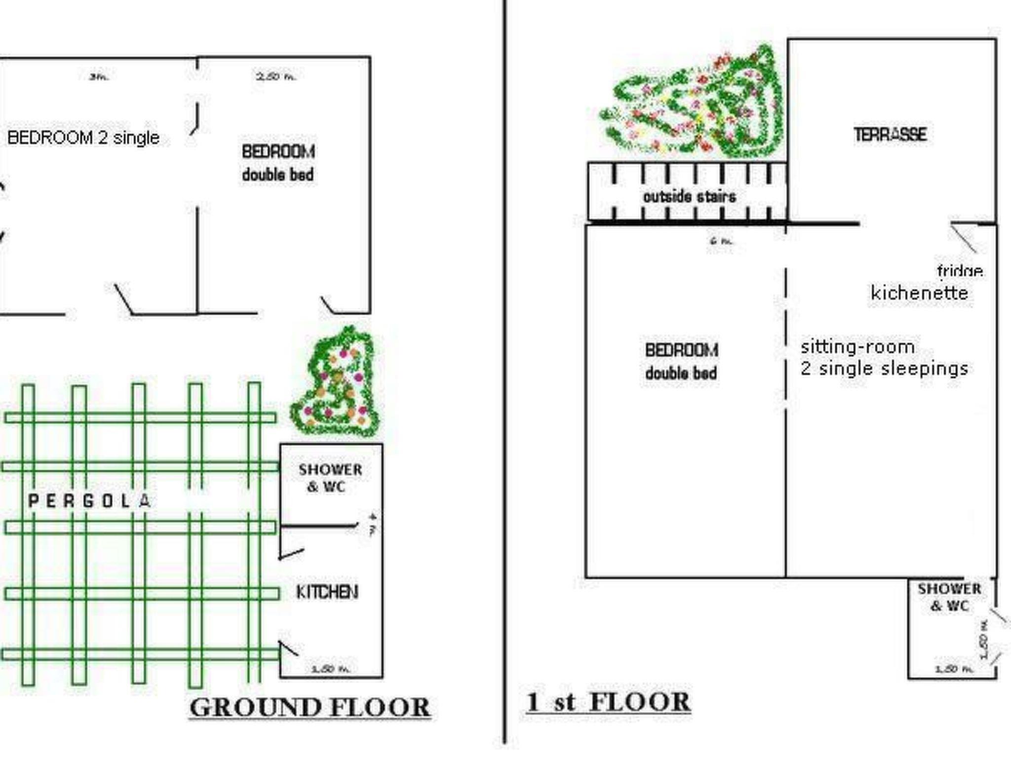 The first floor has also a bedroom with a double bed and a room which can be used as a sitting-room or a bedroom with two single sofa beds more suitable for kids. The first floor pergola has a wonderful view of the sea, too.