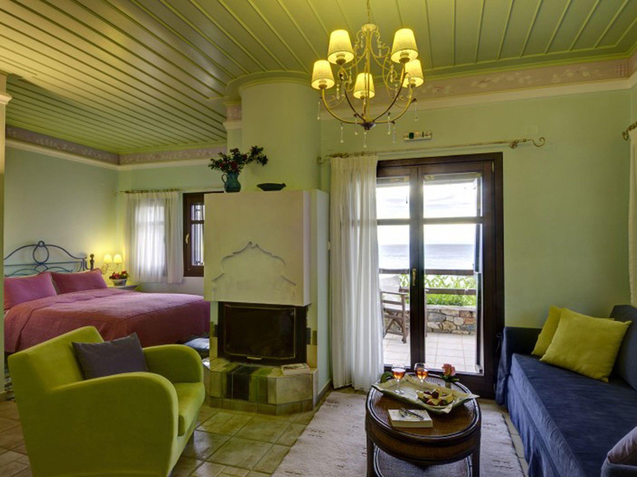 5 flats - each for 2-3 persons (two of them are also suitable for 2 adults + 2 children): Each flat is very tastefully and modernly furnished. The whole flat practically consists of one room. The sleeping area with a double bed is separated from the rest of the flat either by a counter or by curtains. The living room has a large sofa bed, fireplace, TV, heating, very well-equipped kitchenette, dining table with 4 chairs, shower/WC, terrace (20 square metres) with garden furniture and sea view.