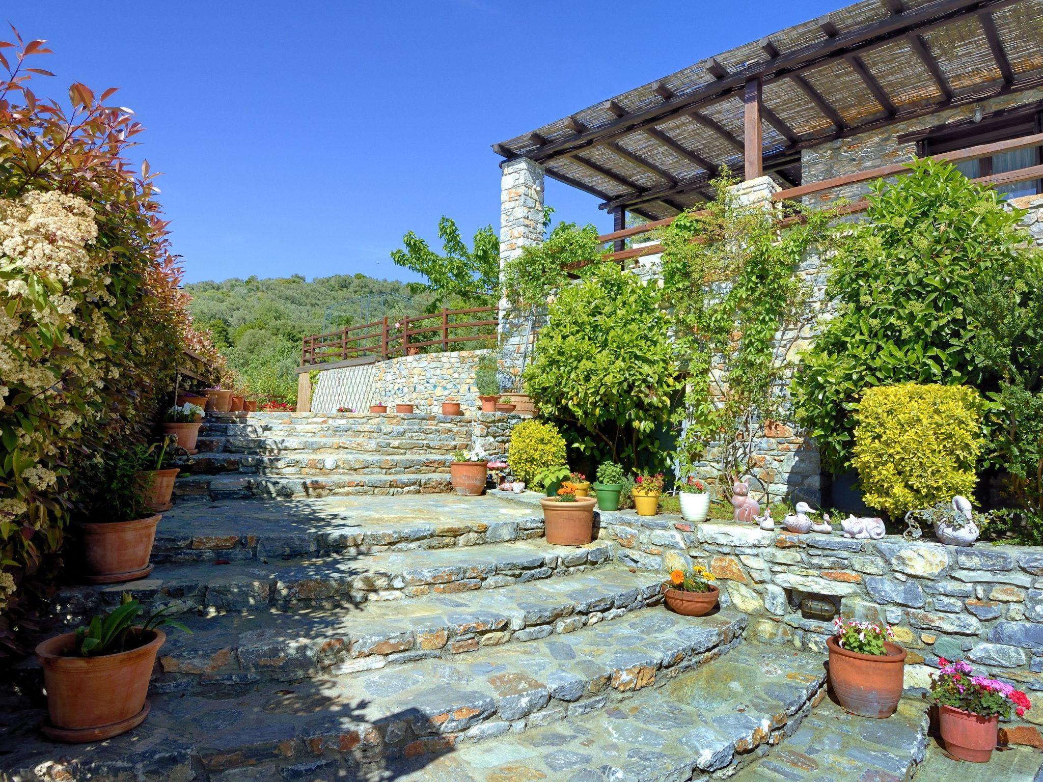 It is situated on a slope and you have a very beautiful panoramic sea view from everywhere.