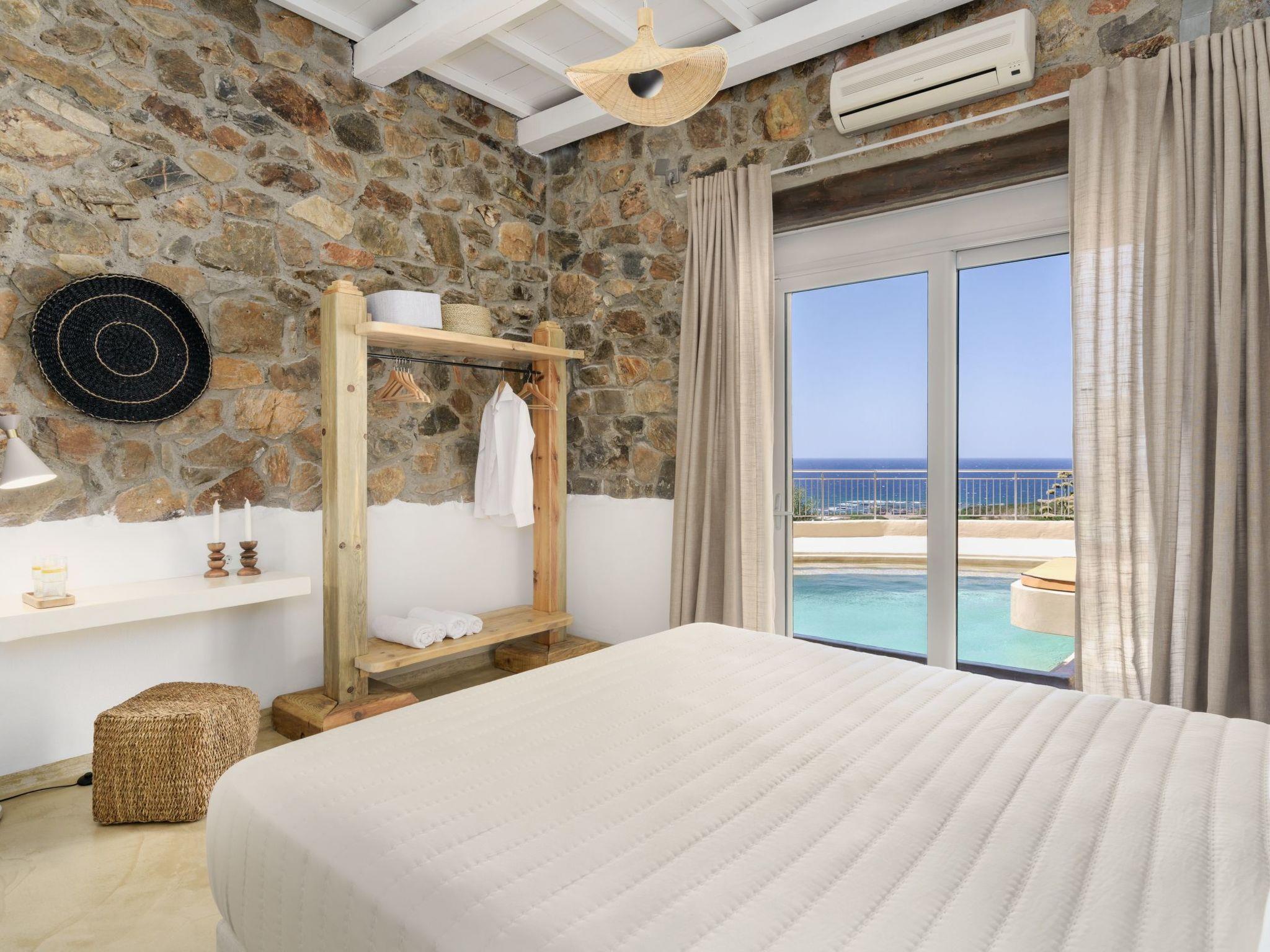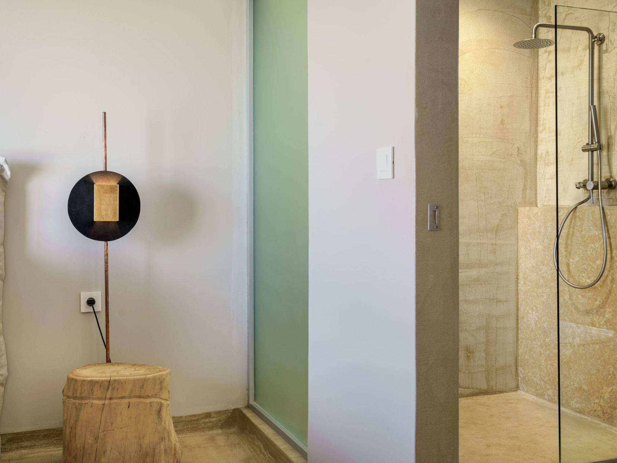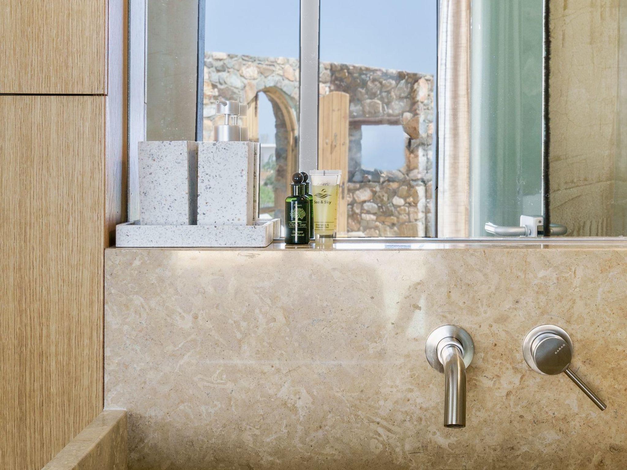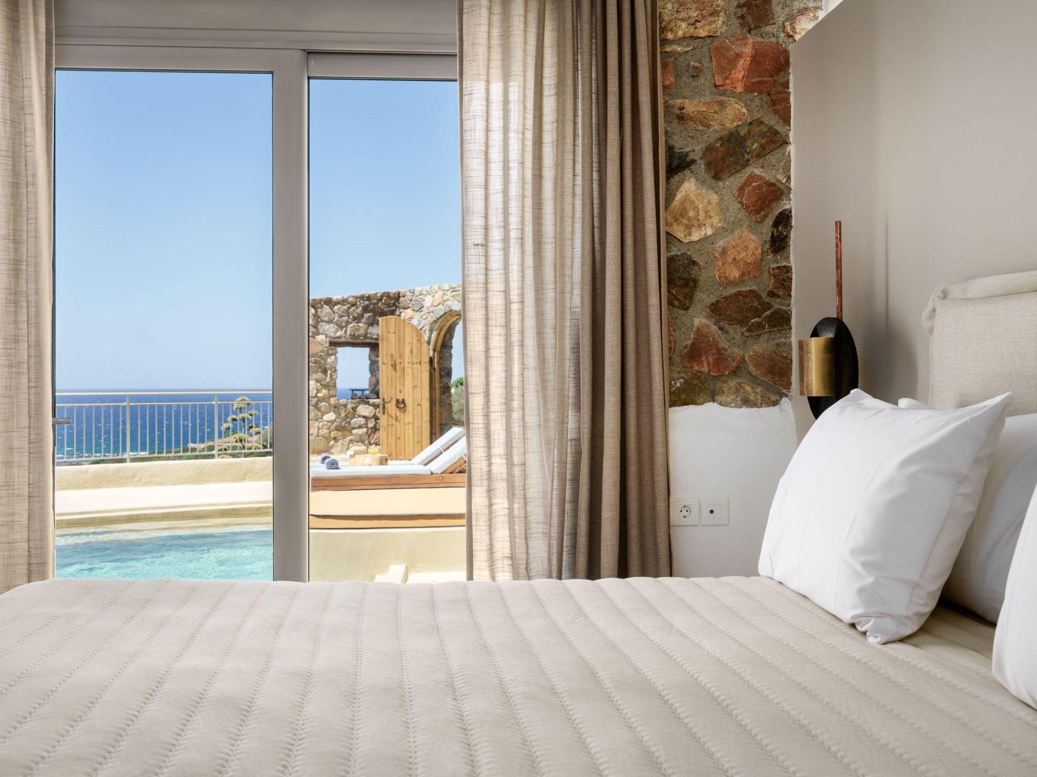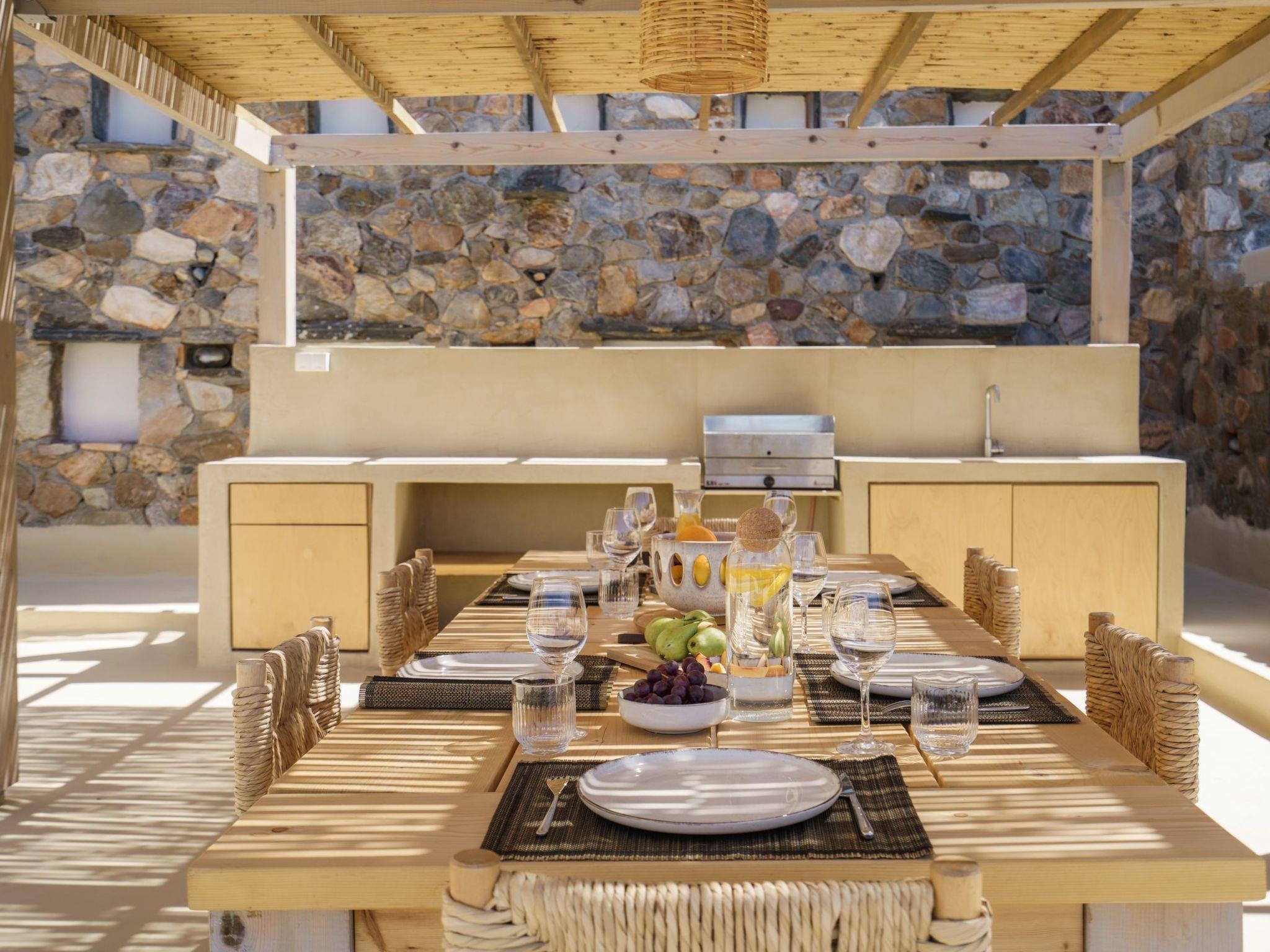 Stepping outside where a 4x2,5m pool (with a kids’ pool section) awaits, you’ll be invited to bask in the Mediterranean sunshine and enjoy refreshing dips at your leisure. With panoramic views of the sea stretching out before you, the outdoor space of our villa is the perfect spot to unwind and savor the beauty of the surroundings. There is also an electric BBQ, an outdoor kitchen and an outdoor shower for your exclusive use.