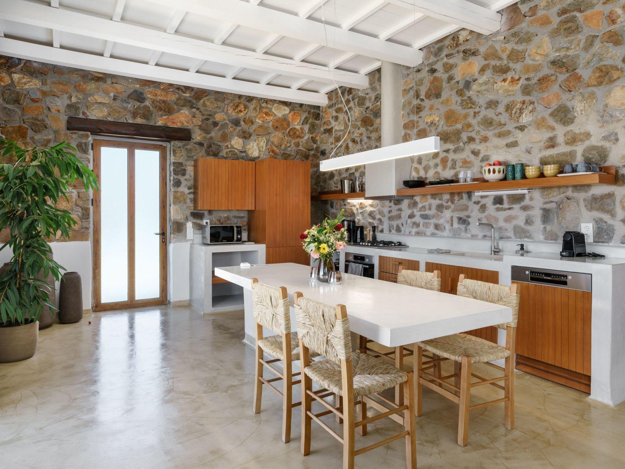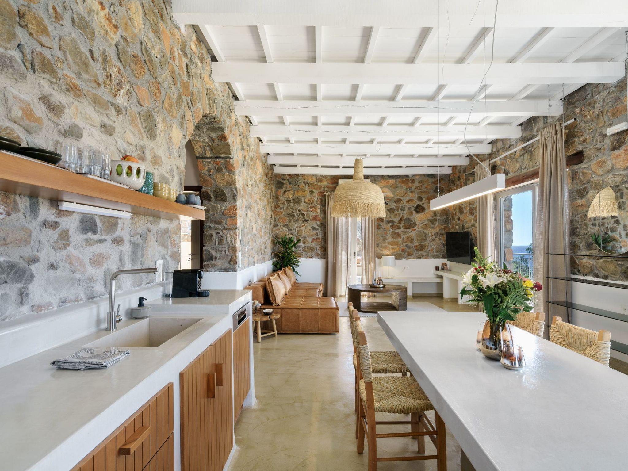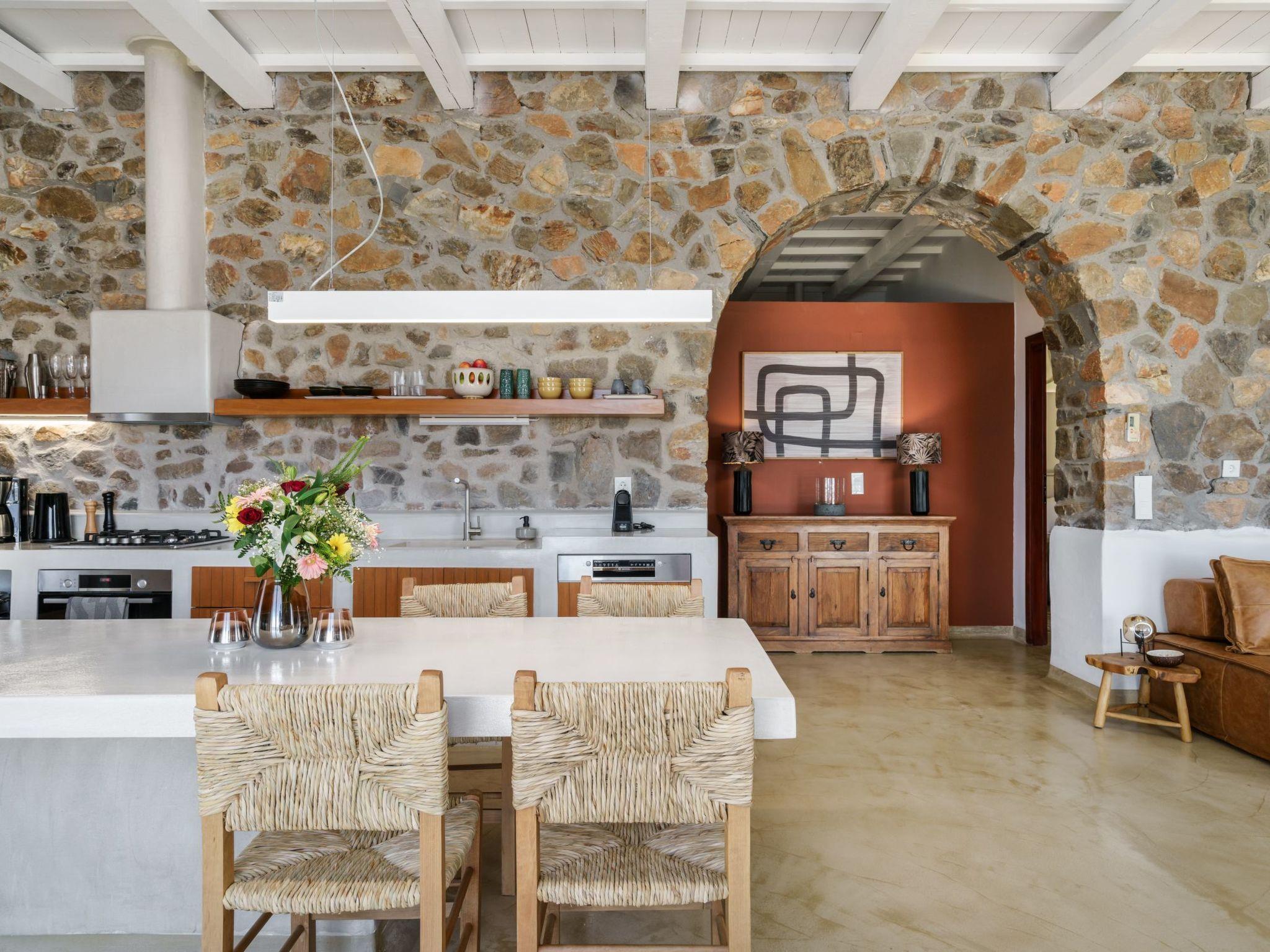 Newly renovated Artemis villa is a part of a villa complex. Stepping inside you'll find an inviting open-plan space featuring a fully equipped kitchen with oven, dish washer, refrigerator, microwave, nespresso machine, etc, a cozy dining area, and a comfortable living room with a 55” smart TV, air conditioning and Wifi, all seamlessly integrated to create the perfect setting for relaxation and comfort.