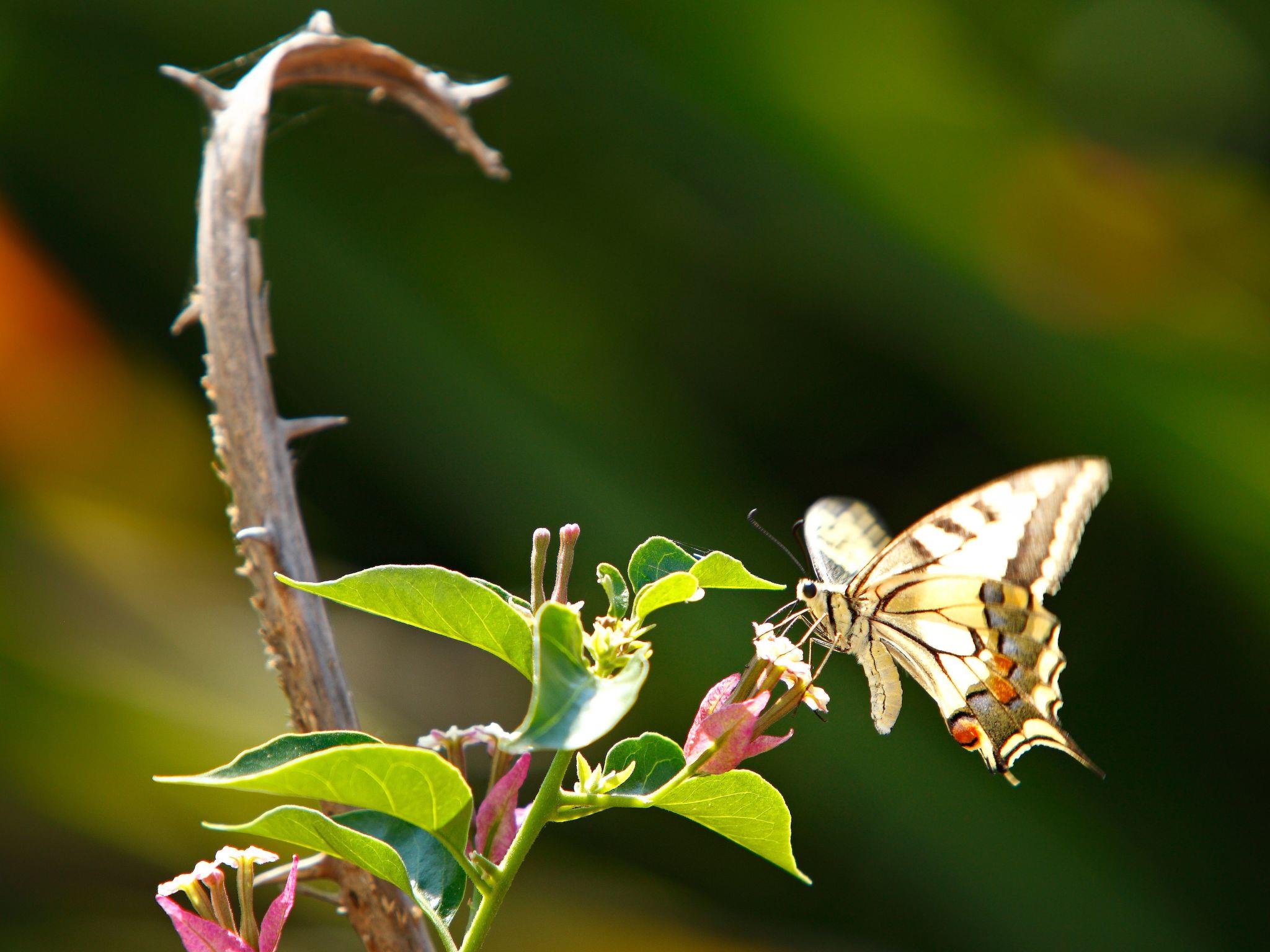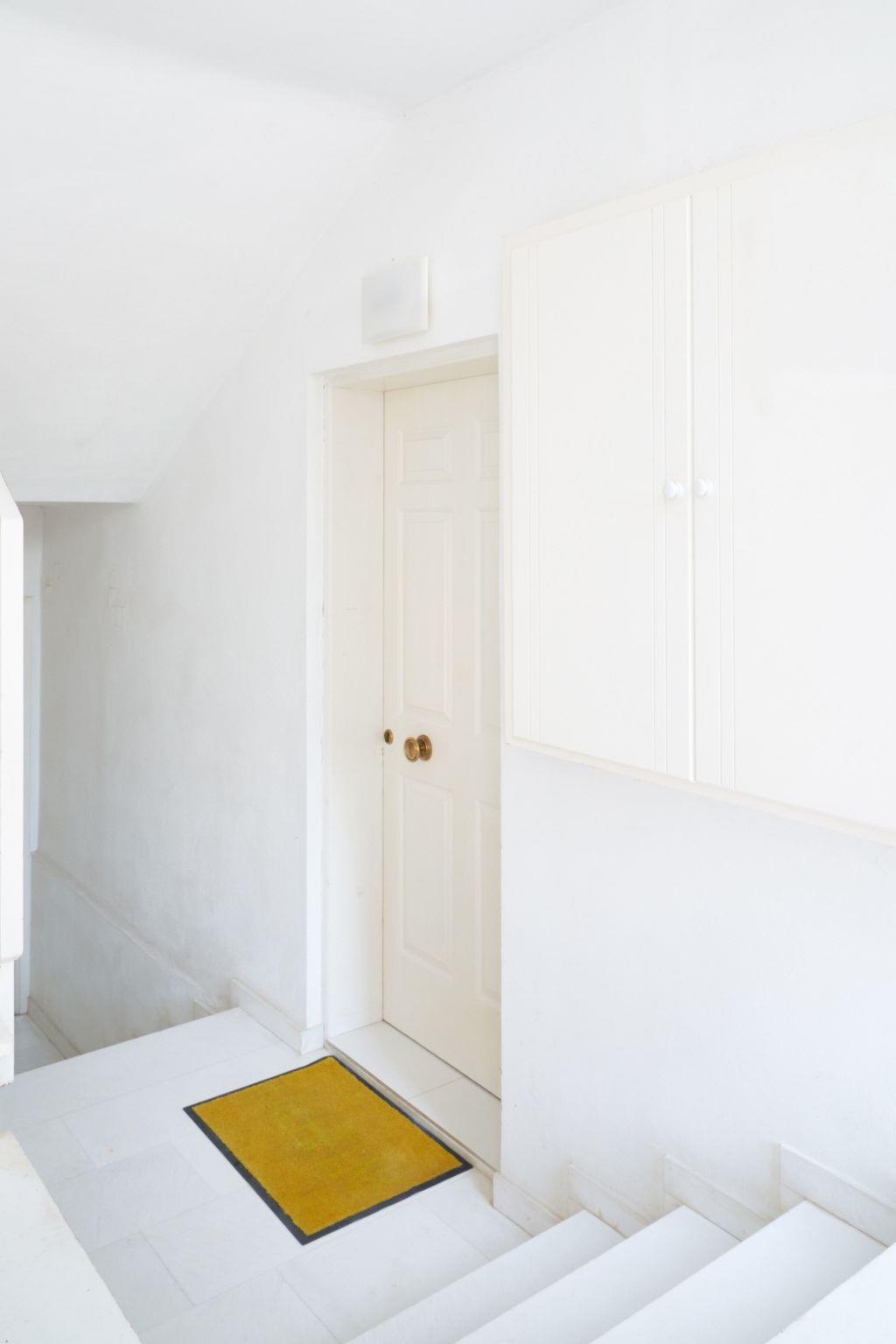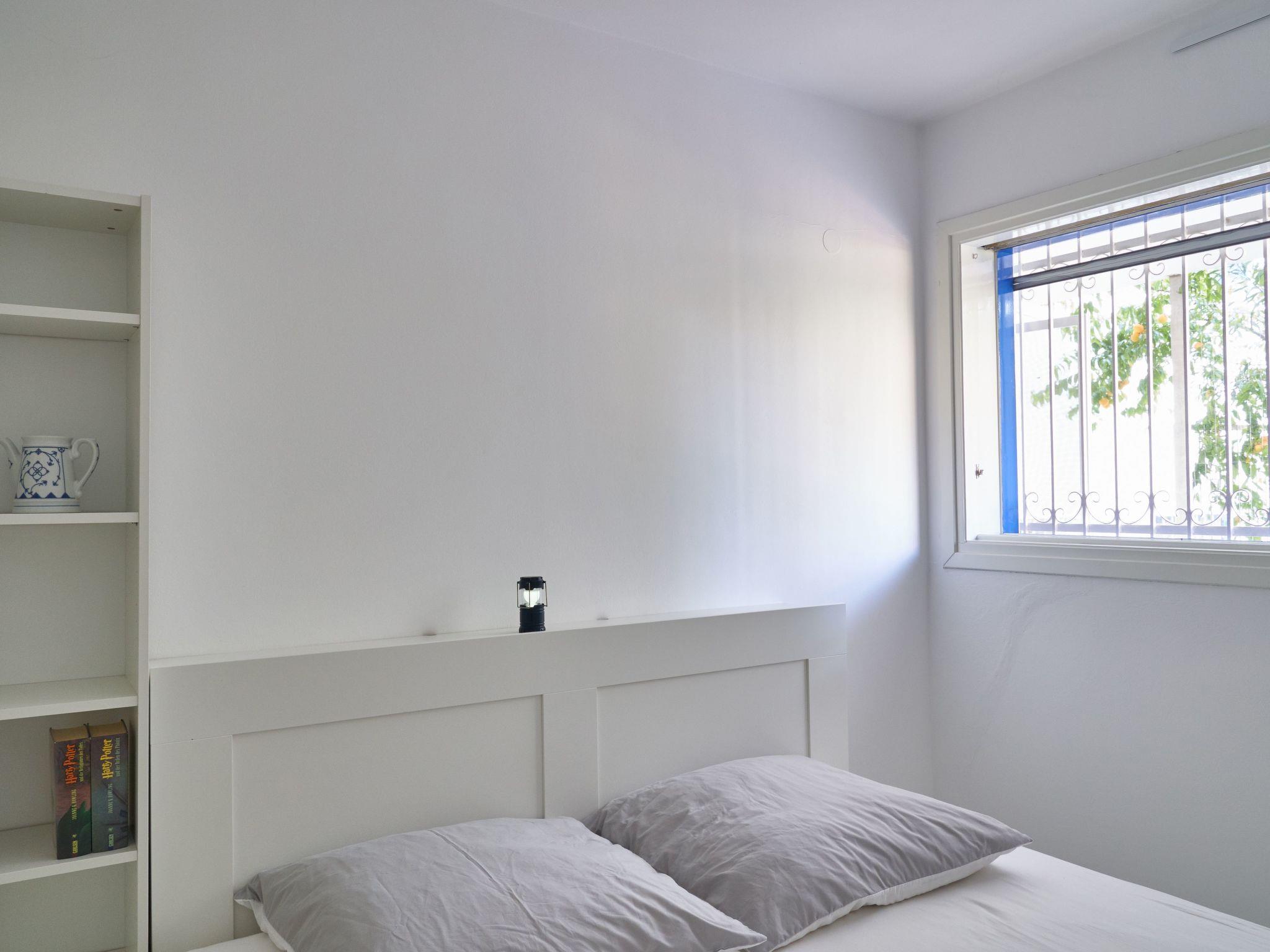 The covered, shaded terrace (approx. 12m²) directly in front of the living room door is the ideal place for meals. It is furnished with a dining table, benches and chairs and offers a cosy view of the greenery. It is partially fenced to protect it from overgrown plants and can be closed off with a gate. This also makes it suitable for small children. The neighbouring front garden leads you a few steps to another garden (300m²), which we call the "plantation". Here you come to another outdoor terrace. White chairs at the dining table do not get hot even in summer and invite you to linger. A footpath leads on to a paved car park. There is a sliding gate at the rear which, together with the surrounding garden fence, provides good protection against small children running off. The driveway to the house is practically only used by residents and is therefore not very busy. The green area consists of various grasses and flowers depending on the season, until it dries to a "yellow area" in the summer heat. The "plantation" is a natural garden - the plant area is neither mowed nor watered. Of course, it can be walked on everywhere. You can pick ripe oranges here, especially in winter - but some remain hanging on the branches until summer. Other trees bear lemons and olives. The fig tree at the garden gate is ready for harvest in August, followed by the peach tree in front of the flat entrance in September. The car park is large enough for two cars, and two-wheelers can also be parked here. Otherwise, we only use one car park - when we are on site.