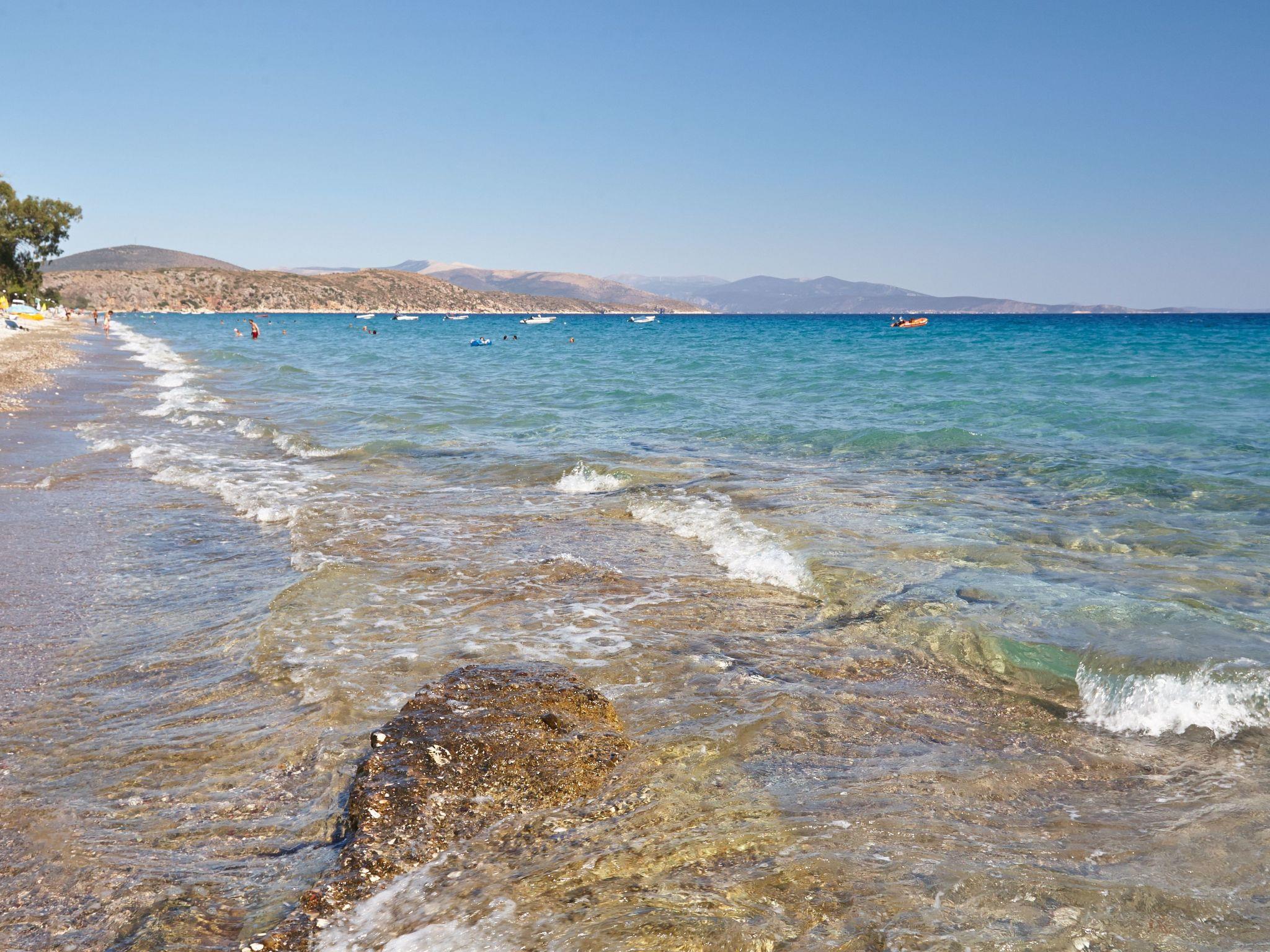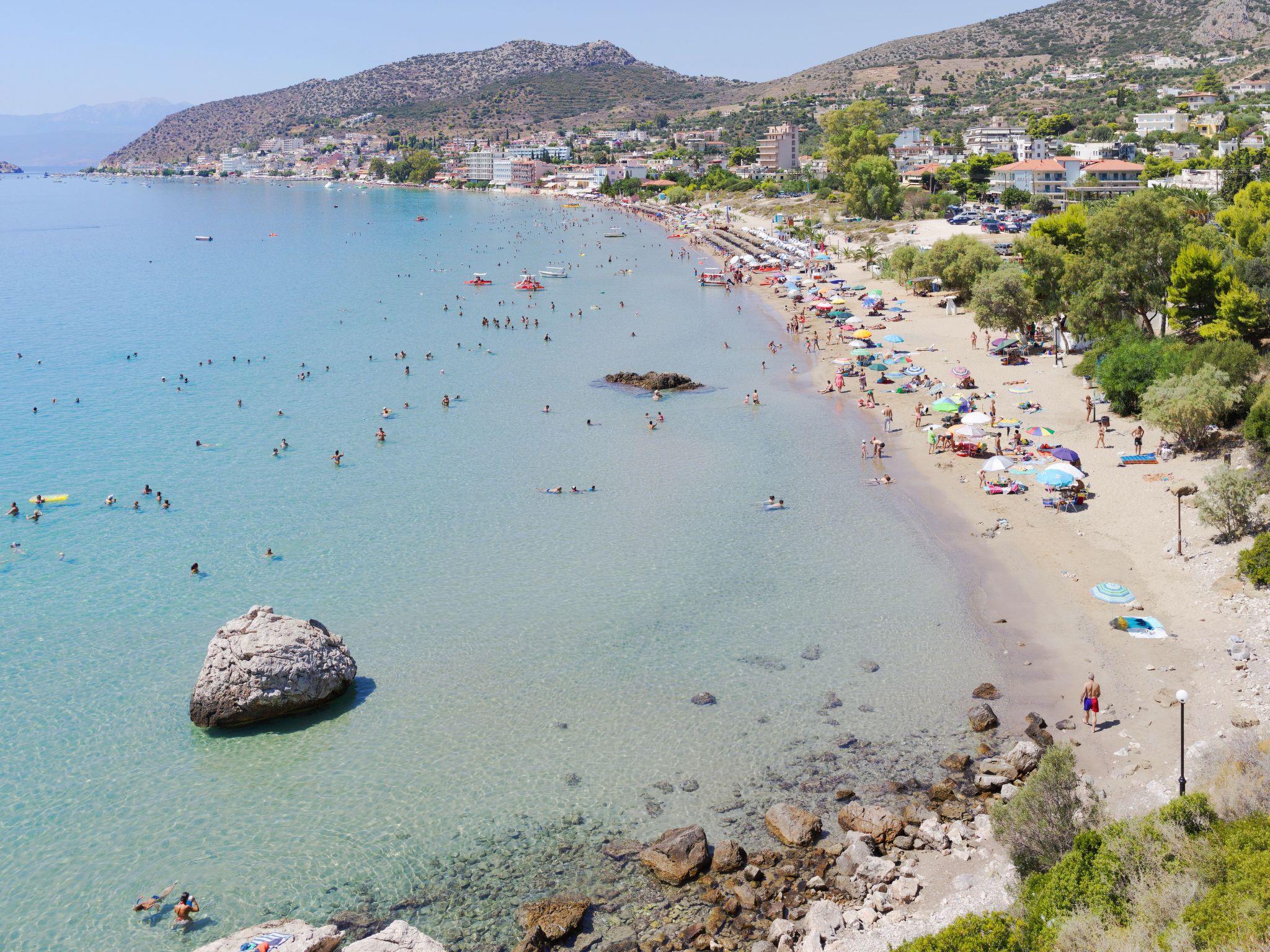 Drepano, the village right next door, is authentic Greek, manageable, everything for daily needs can be found there.Tolo, the village behind Cape Kastraki, about 2 km away, is very touristy and crowded in summer, there is something going on here.Nafplio is the nearest small town. It was the capital of Greece from 1829 to 1834. Very popular and also quite beautiful, there are important ancient sites within a radius of 30 km - Tiryns, Mycenae, the castles are a good 3500 years old. Nemea, Epidauros, Argos, Lerna, Midea etc. Classical Greek theatre plays are performed in the ancient Amphitheatre of Epidauros from June to August. A visit here is unforgettable!