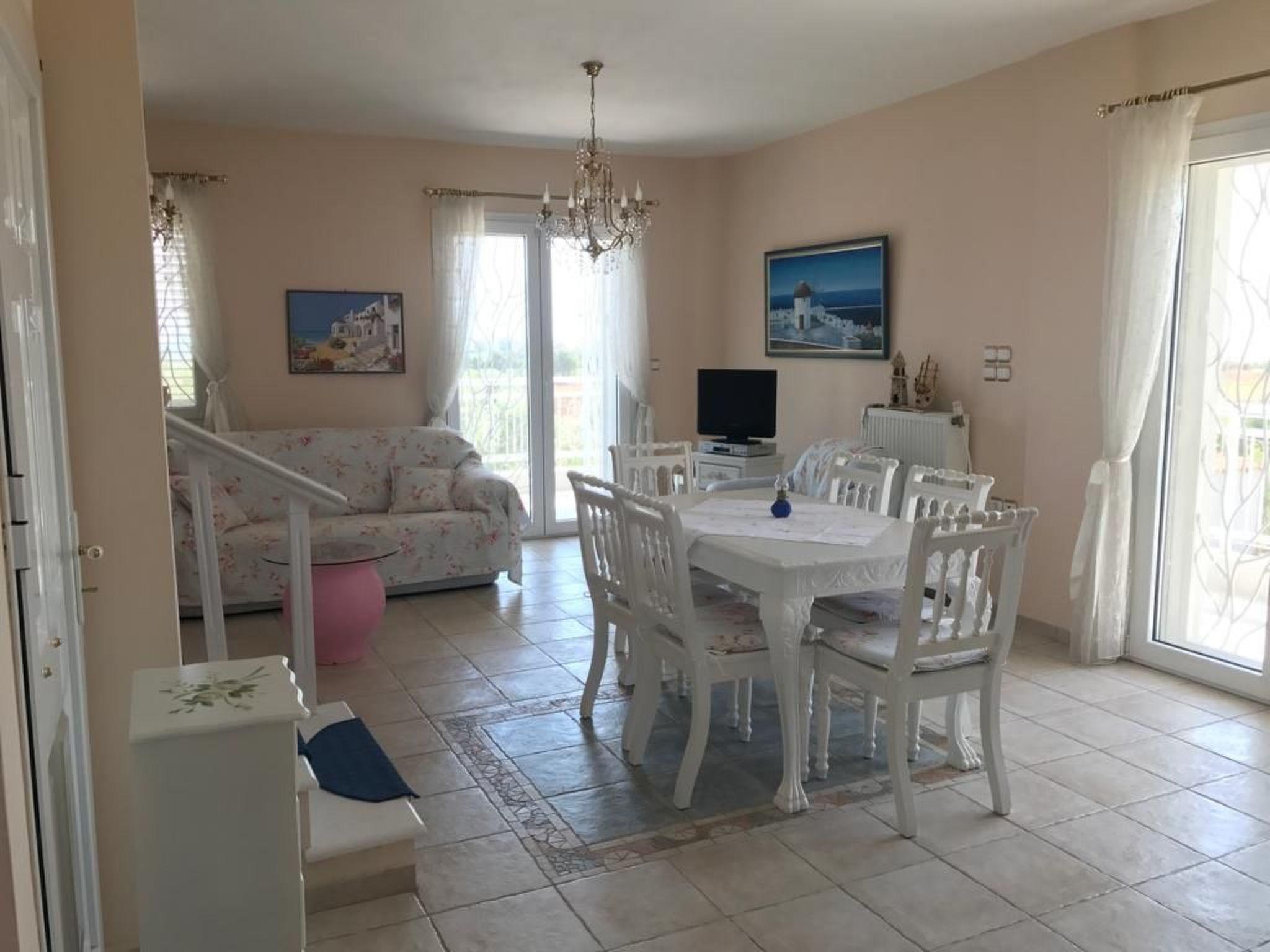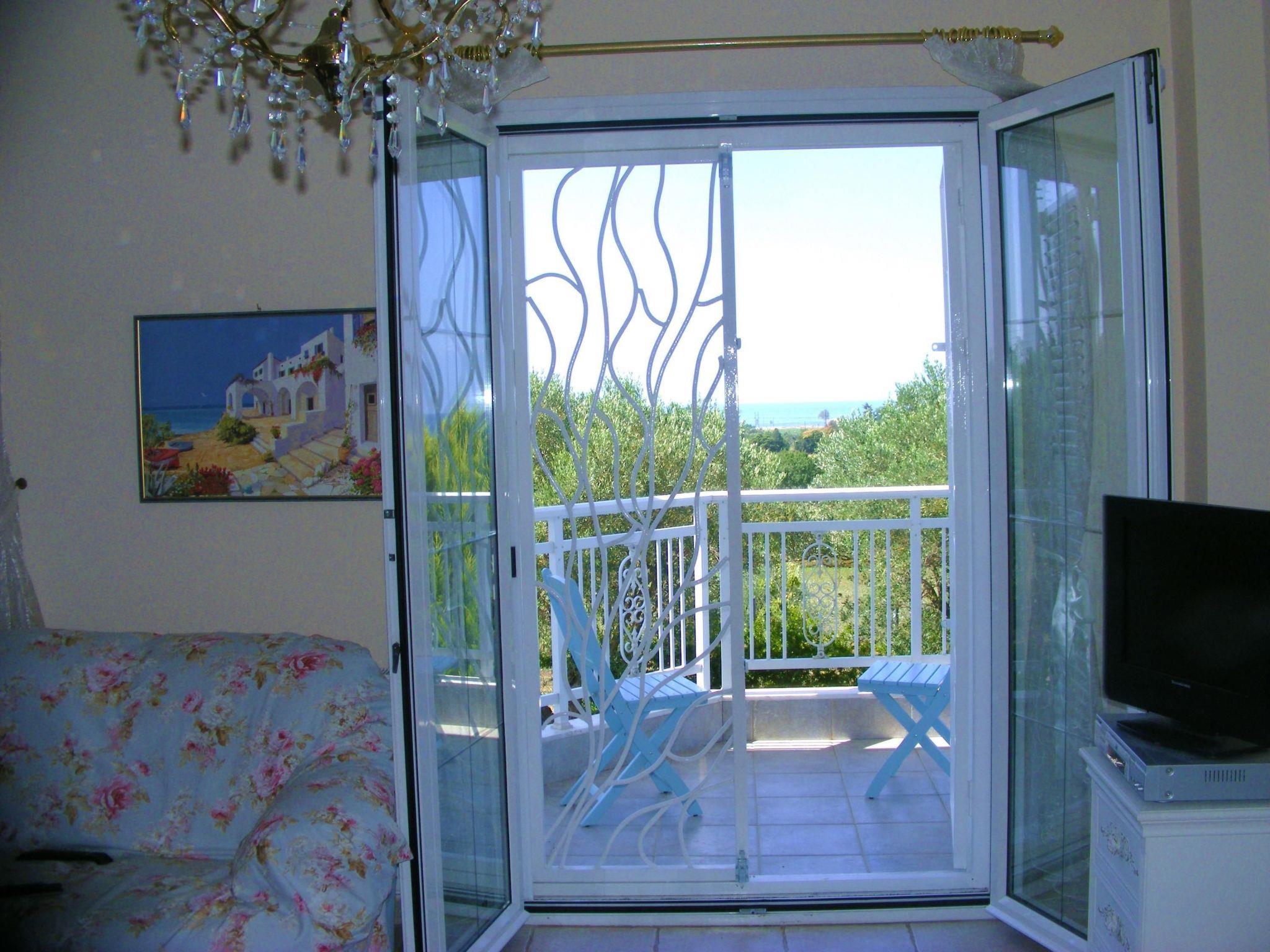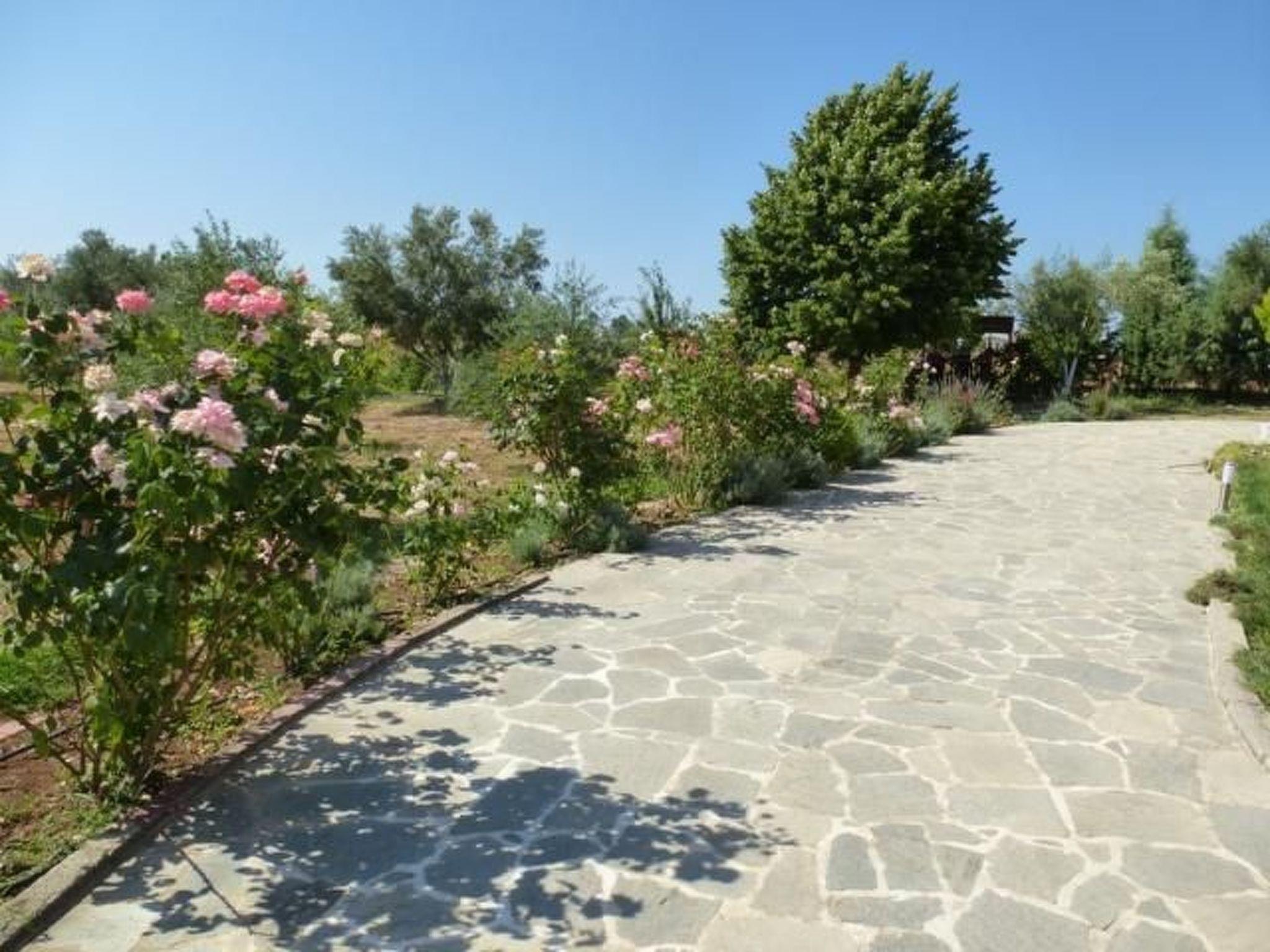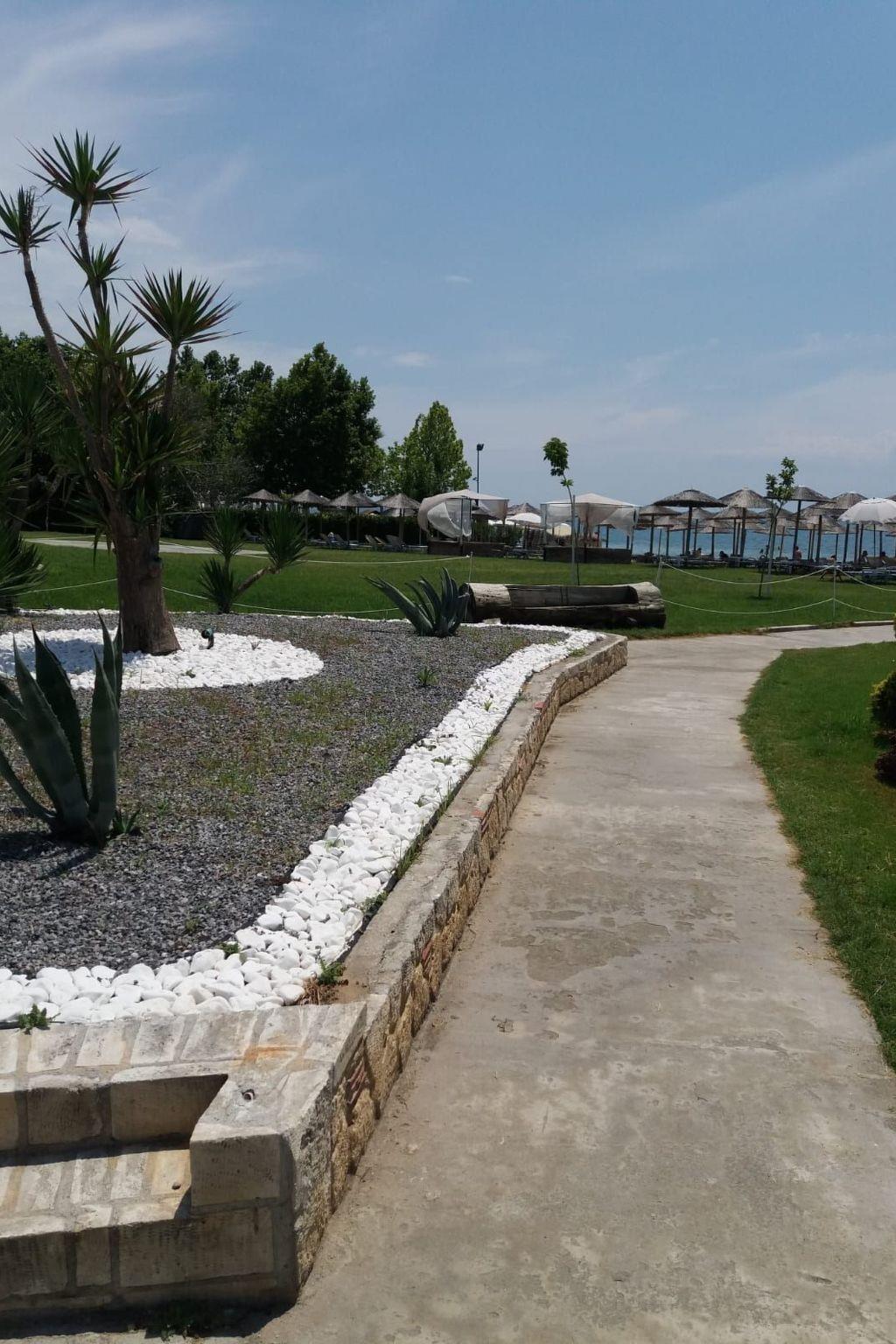 The beach is about 700-800 metres away. It is ten minutes to a bus stop. It is not absolutely essential to hire a car, but it is recommended. The famous holiday town of Chalkidiki is about 30 minutes away by car. Places of interest nearby are the historical town of Thessaloniki (old town, Agora, White Tower) and in the Chalkidiki area the Petralona cave and Afytos. You can combine visiting sights and swimming in the sea on your holiday. The town of Thessaloniki is also accessible on a lovely boat trip. There is a water park for entertainment in the area and there is a well-known shopping centre.