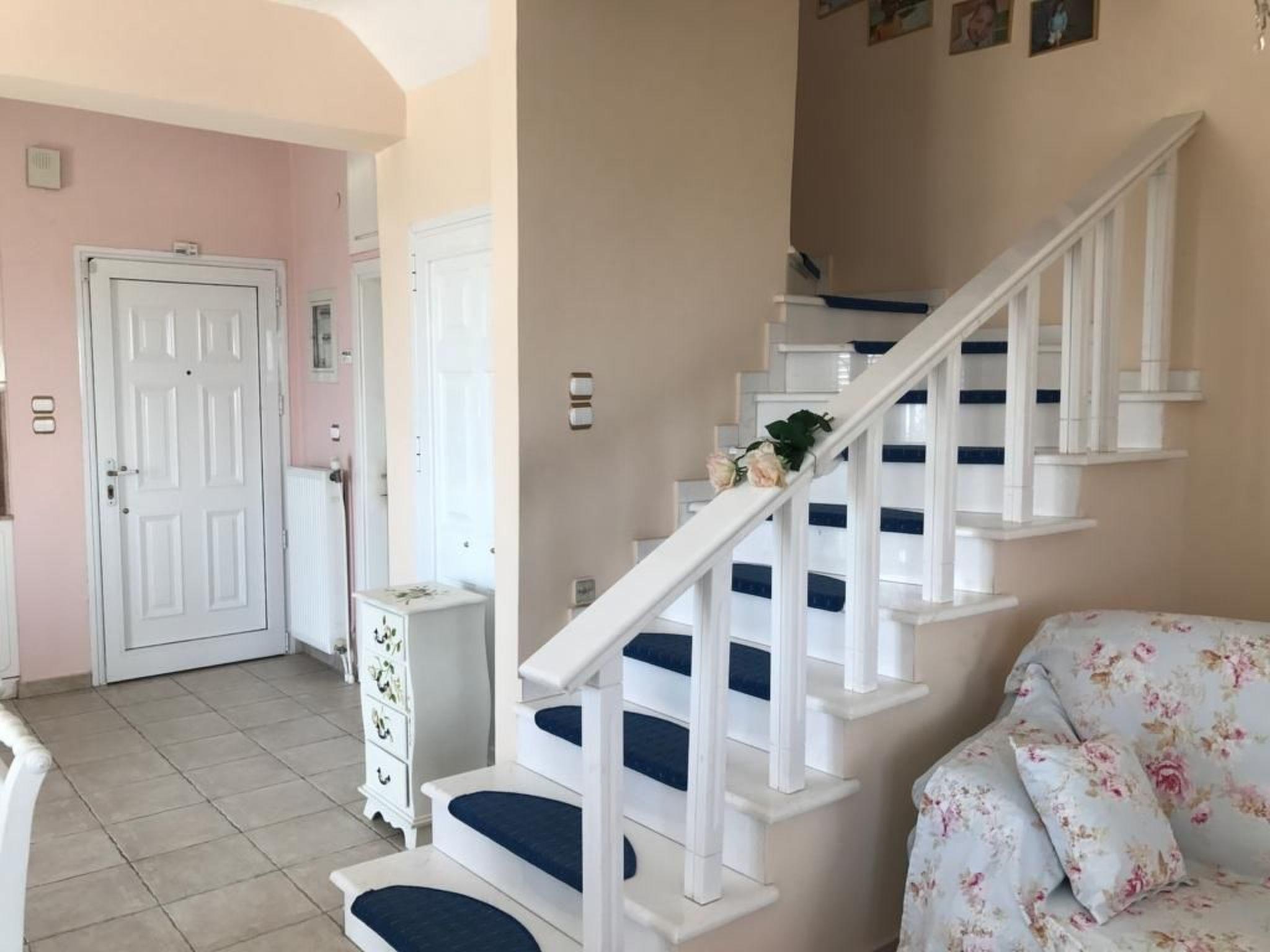 The semi-detached house is in Epanomi, about 3km from the fishing town of Michaniona. It was built in 1998 and has a sea view.