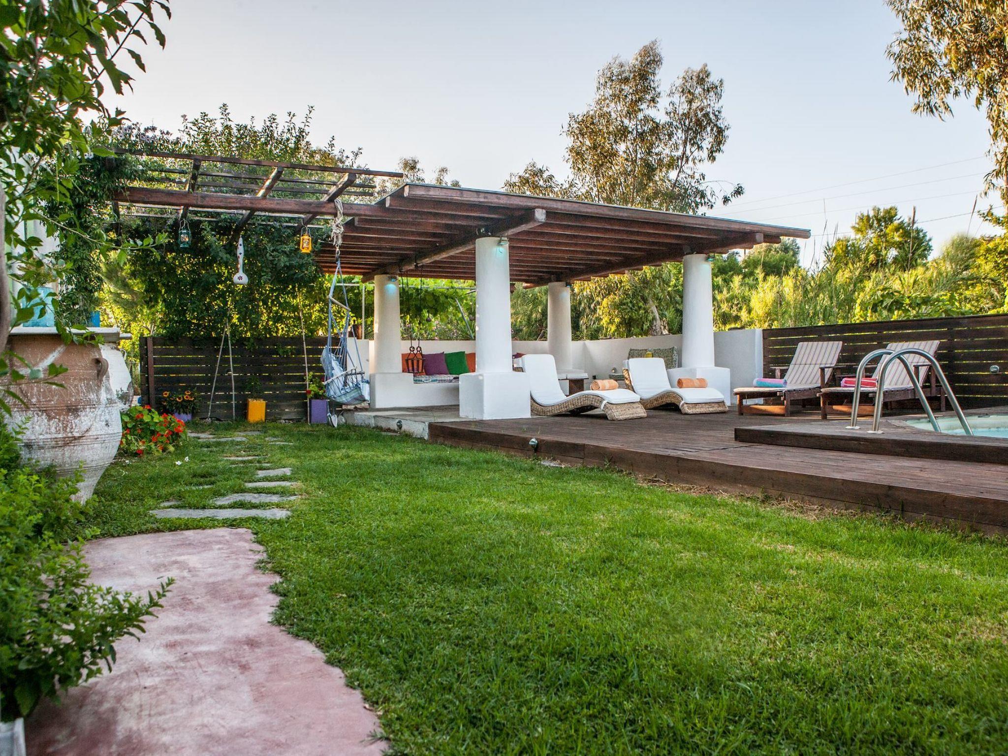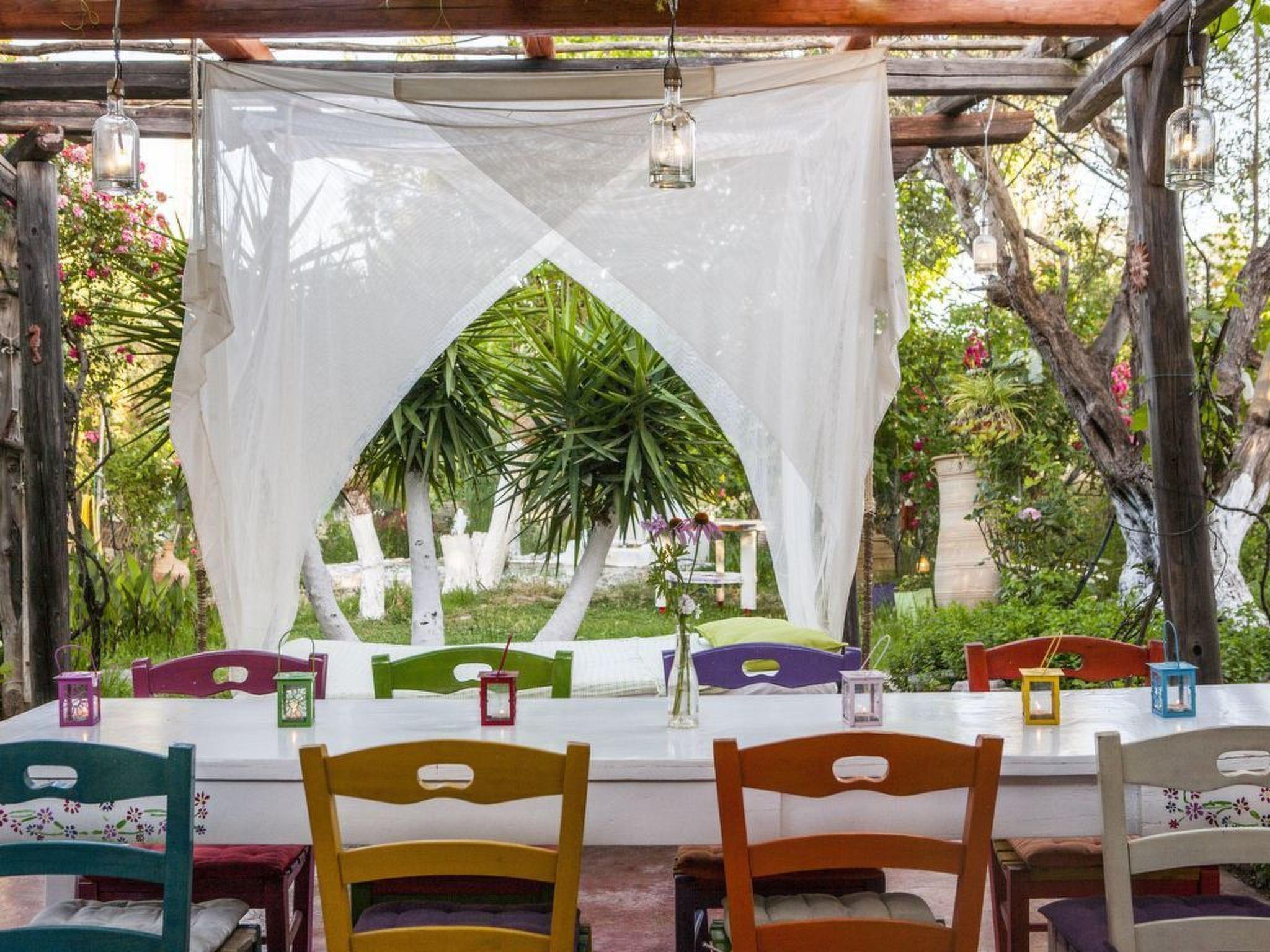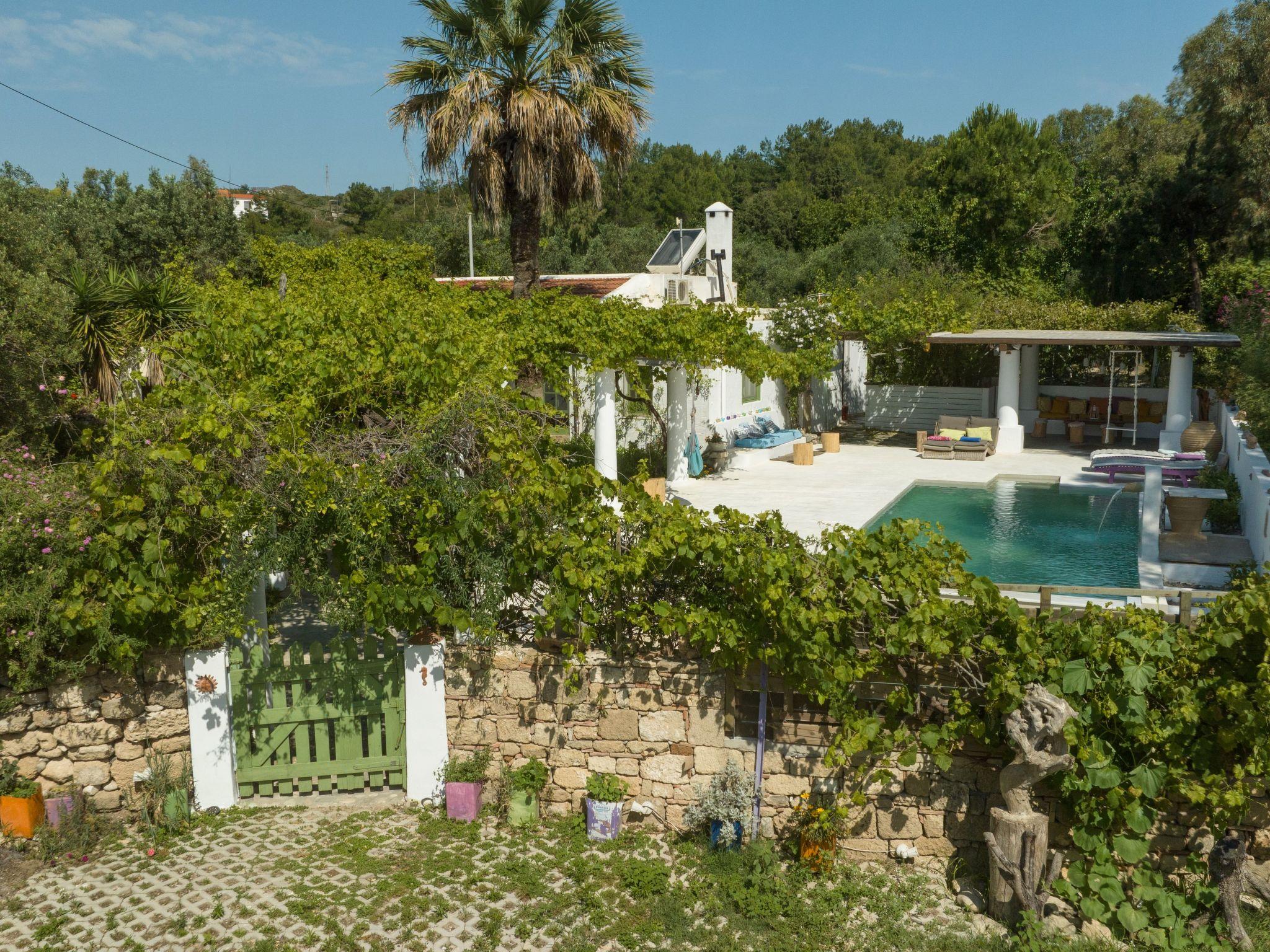 The fully detached holiday house is set on a 18000 square meter land that is full of olive trees and fruit trees. The location is not too far from Rhodes' beautifuly coast line and the high way for Diagoras airport.