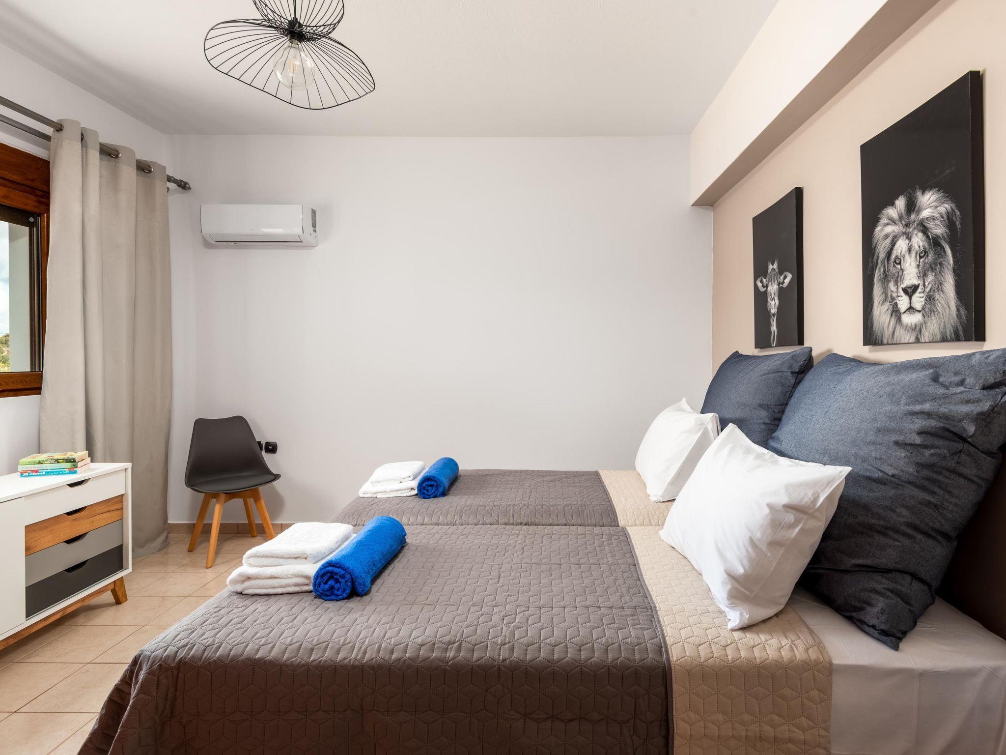 Aileen most likely originated in the Greek language and means “torch of light”. This amazing villa except for a great name also has an incredible decorating style and a wonderful private swimming pool. It’s located at Koskinou village and hosts up to 10 guests. The modern interior design and all the amenities of the house will provide you with a memorable stay.Aileen Villa is a 5-bedroom villa. On the ground floor, there are 2 bedrooms, 1 with a double bed and one with twin beds. Also, there is a bathroom with a shower and a WC. On the first floor, there are 2 bedrooms with double beds. Also, there is a bedroom with twin beds. One of the double-bedded rooms has an ensuite bathroom with a bathtub and a shower for your ultimate comfort. Also, there is another bathroom with a shower. All bedrooms are carefully decorated in a quite contemporary style with an artistic touch. Guests will find a fully equipped kitchen, suitable for any meal preparation along with comfortable seating areas. In addition, there’s a unique living area in warm colors that will immediately give you peace. There’s free Wi-Fi access throughout the property as well as a smart TV in the living room and two bedrooms. Outdoors, you will find the enchanting private swimming pool and its sunbeds. Also, there are 2 small swimming pools for kids. The surrounding is quite peaceful with their incredible view of the sea and the beautiful garden. Guests will find the BBQ facility and the seating area with a pergola to relax and enjoy a family or friends gathering.