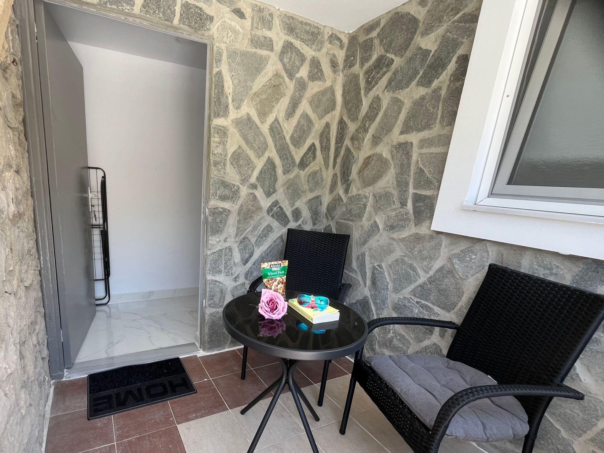 Inside, “Eanos” offers a seamless living experience with an open-plan design that houses a comfortable sleeping area, a fully equipped kitchenette for your culinary exploits, and a private bathroom with a shower - all adorned with sleek and stylish fittings. Air conditioning runs throughout the apartment, ensuring your comfort no matter the weather. The thoughtful interior is designed to cater to up to 2 adults, blending functionality with aesthetic appeal to create a restful haven.