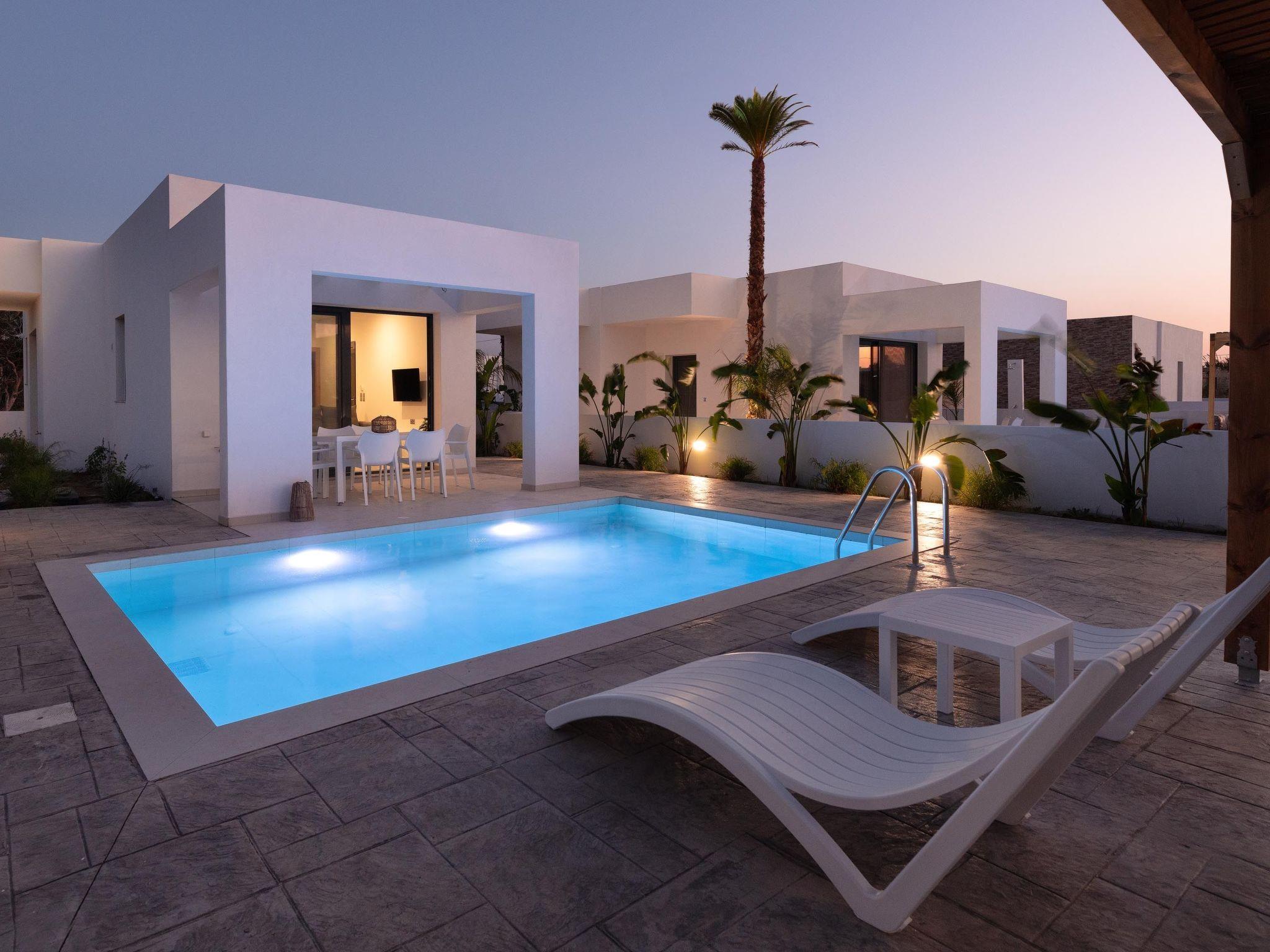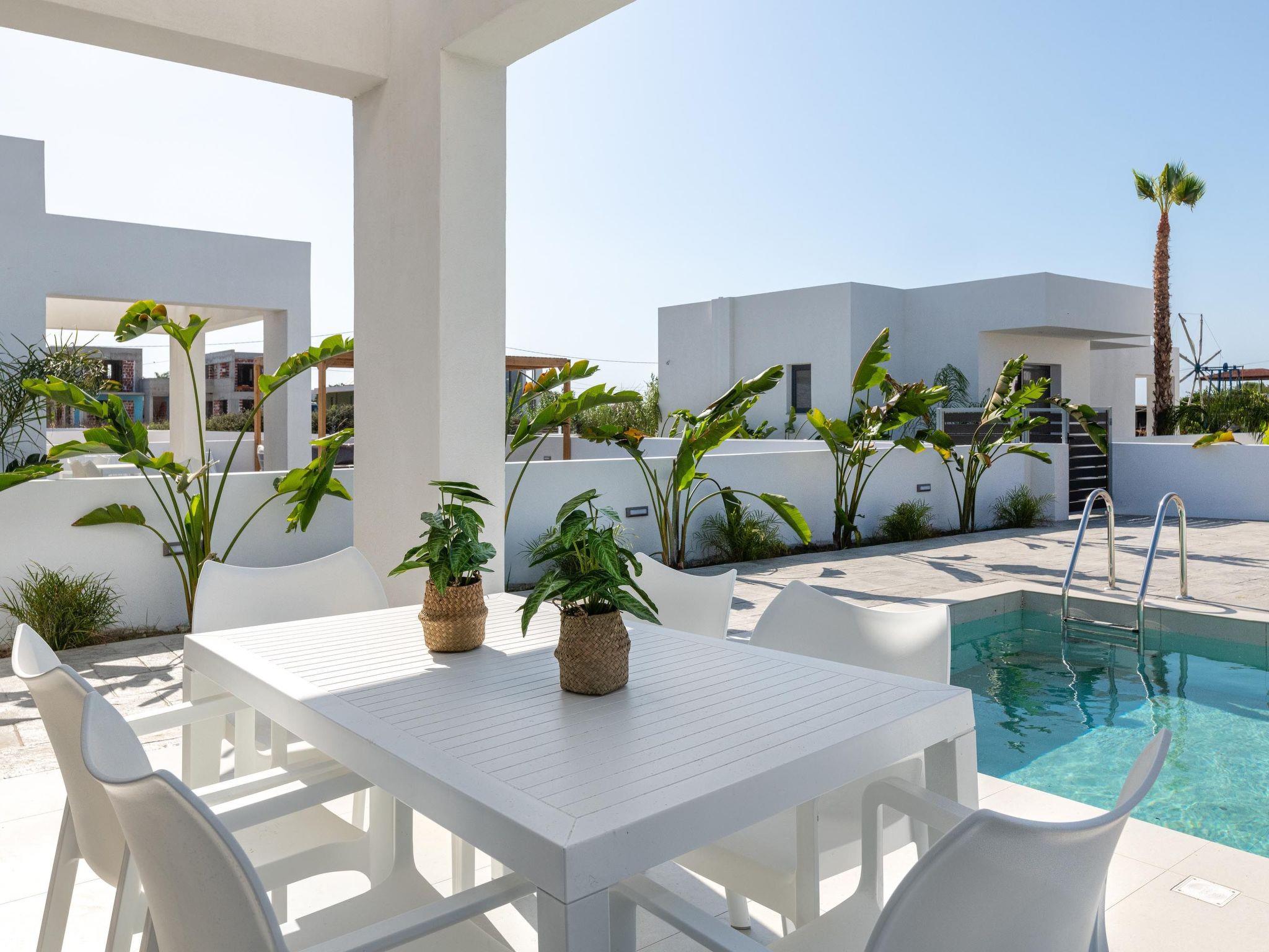 Salty Sun Luxury Villas offers 7 beautiful villas that can accommodate up to 5 guests. The villas features two air-conditioned bedrooms, each with a comfortable double bed and an ensuite bathroom with a shower. Inside, you will find a fully equipped kitchen, perfect for preparing meals, and a cozy living room with a sofa bed and a smart TV for entertainment. Outdoors, the villas provides a wonderful space to enjoy the warm weather. There is an outdoor kitchen with an electric BBQ, ideal for cooking and dining al fresco. The dining area offers a great spot to enjoy meals with family or friends. The highlight of the outdoor space is the private swimming pool, perfect for relaxing and cooling off. Salty Sun Luxury Villas ensures a luxurious and comfortable stay with all the amenities you need for a memorable vacation.