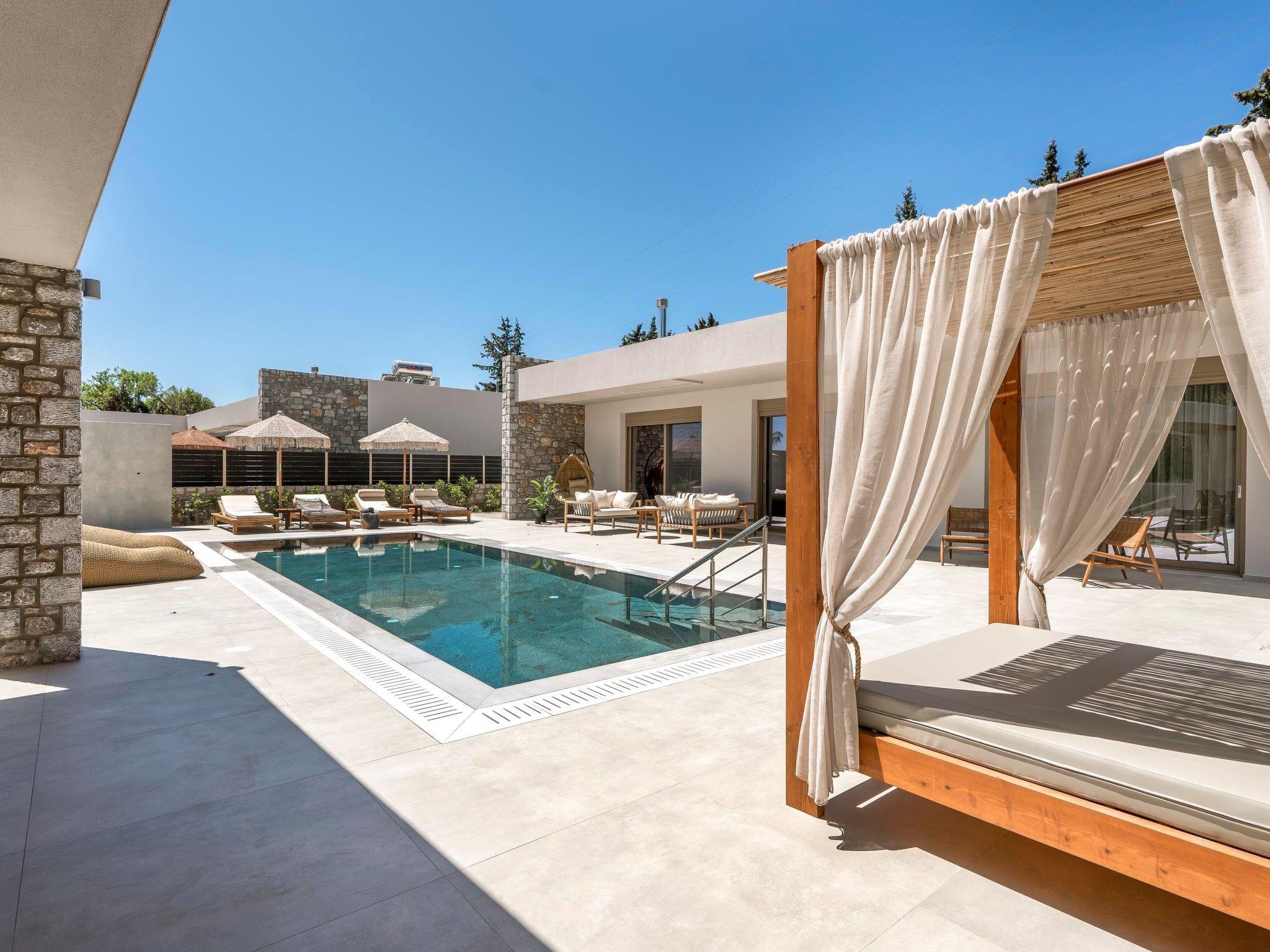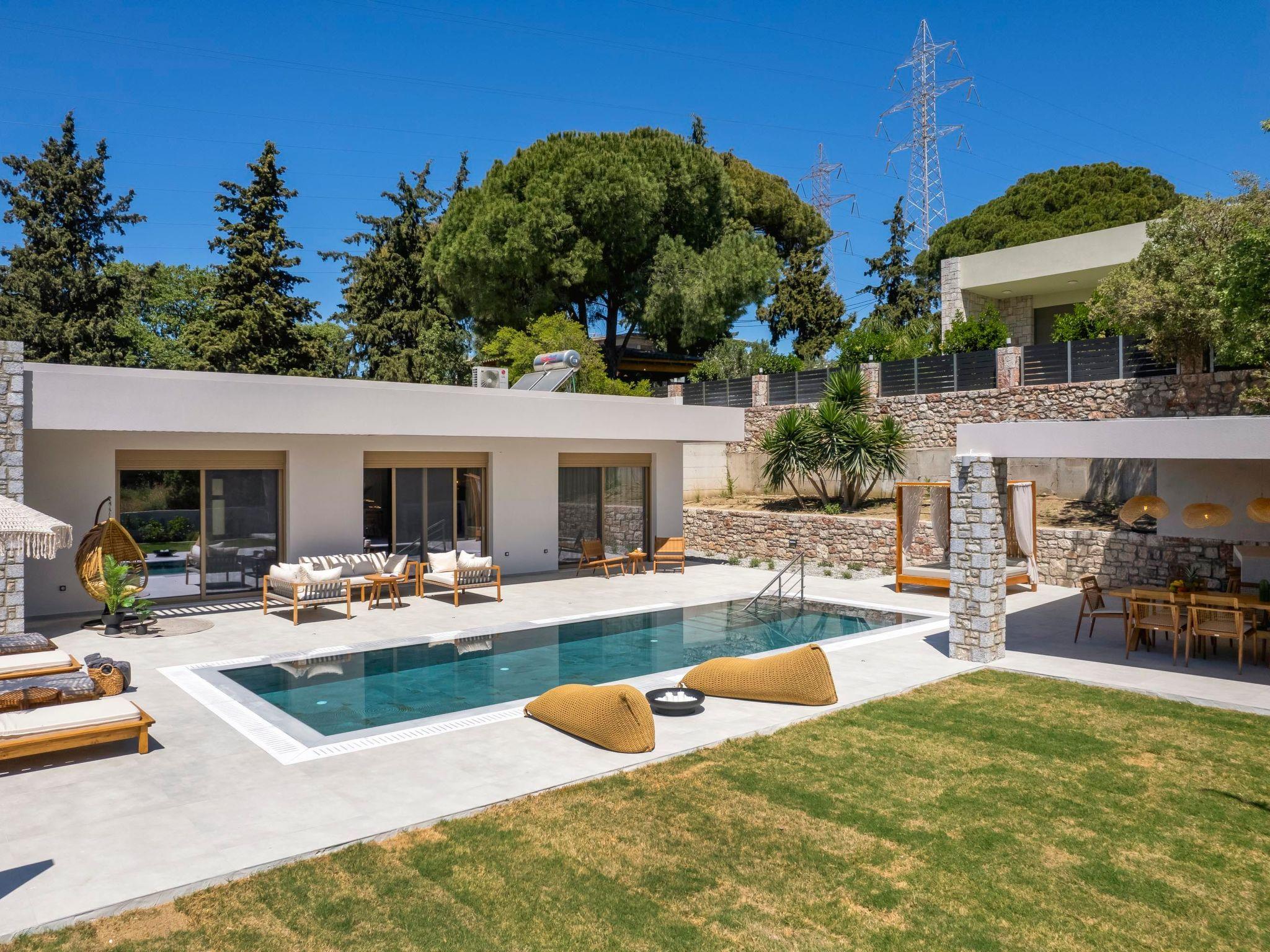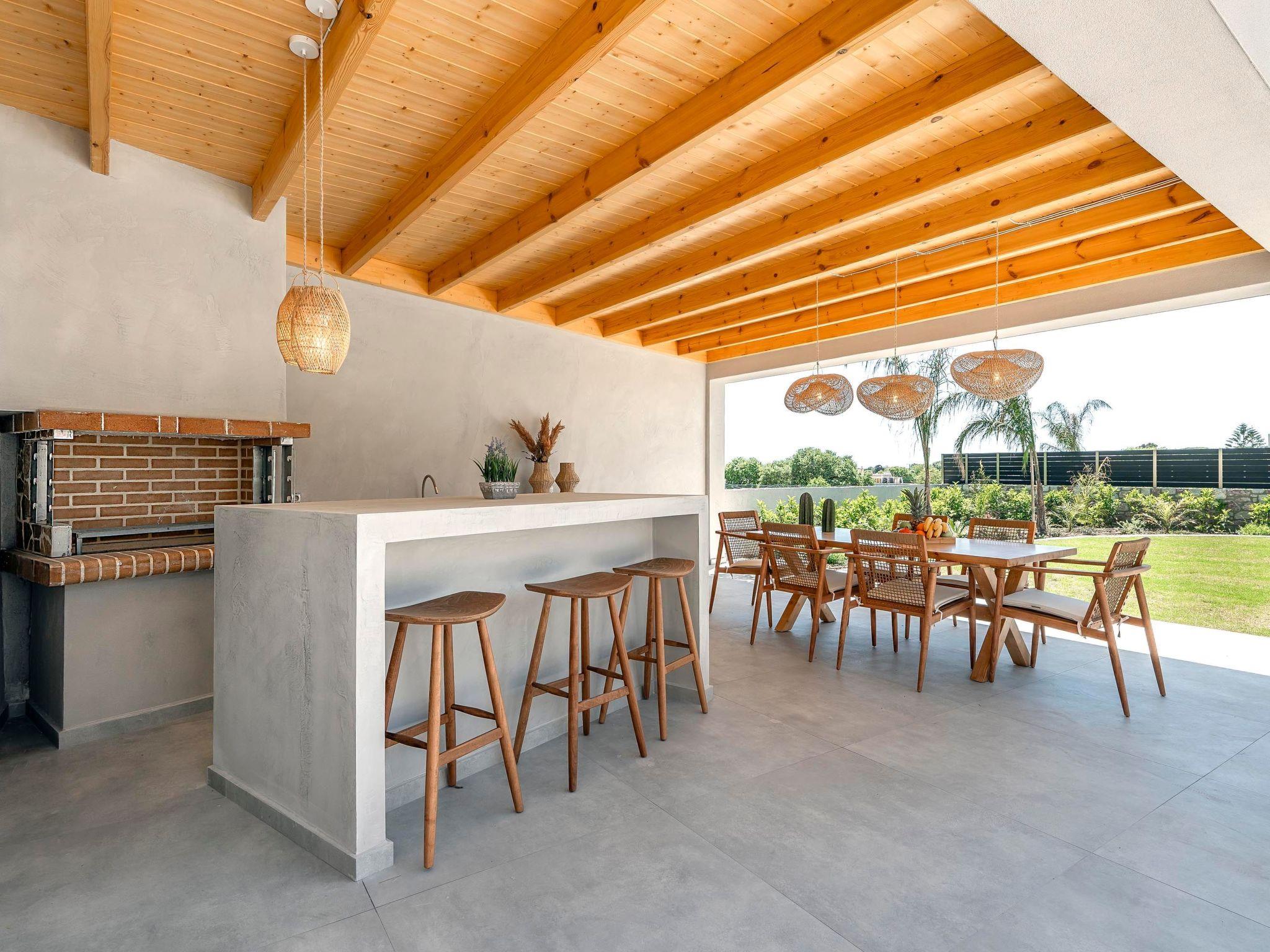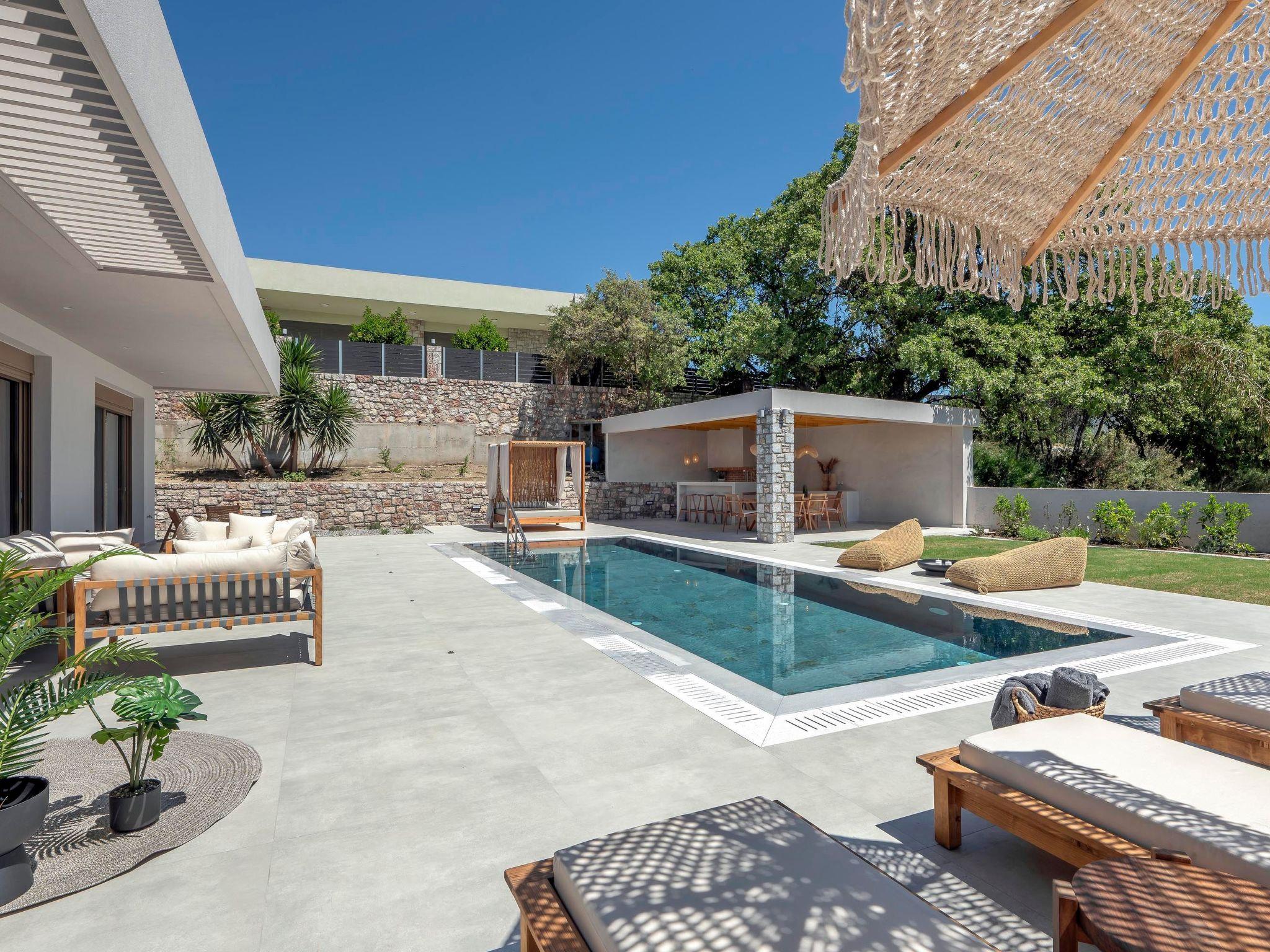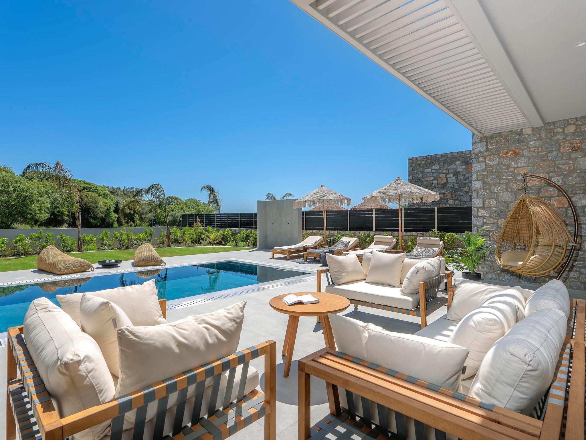 Welcome to Emerald Estate, your luxurious retreat accommodating up to six guests. This splendid villa boasts three air-conditioned bedrooms, two with cozy double beds and one with two single beds, ensuring a comfortable night's rest for everyone. With three bathrooms, including two ensuites, and showers, convenience is paramount. Relax in the spacious living room or whip up delicious meals in the fully equipped kitchen. Dine al fresco in the outdoor dining area, try up some treats on the BBQ, or enjoy culinary delights from the outdoor kitchen. Last but not least, a private swimming pool is included summoning for refreshing dips under the sun.