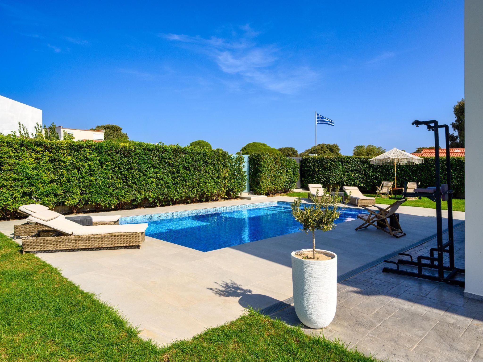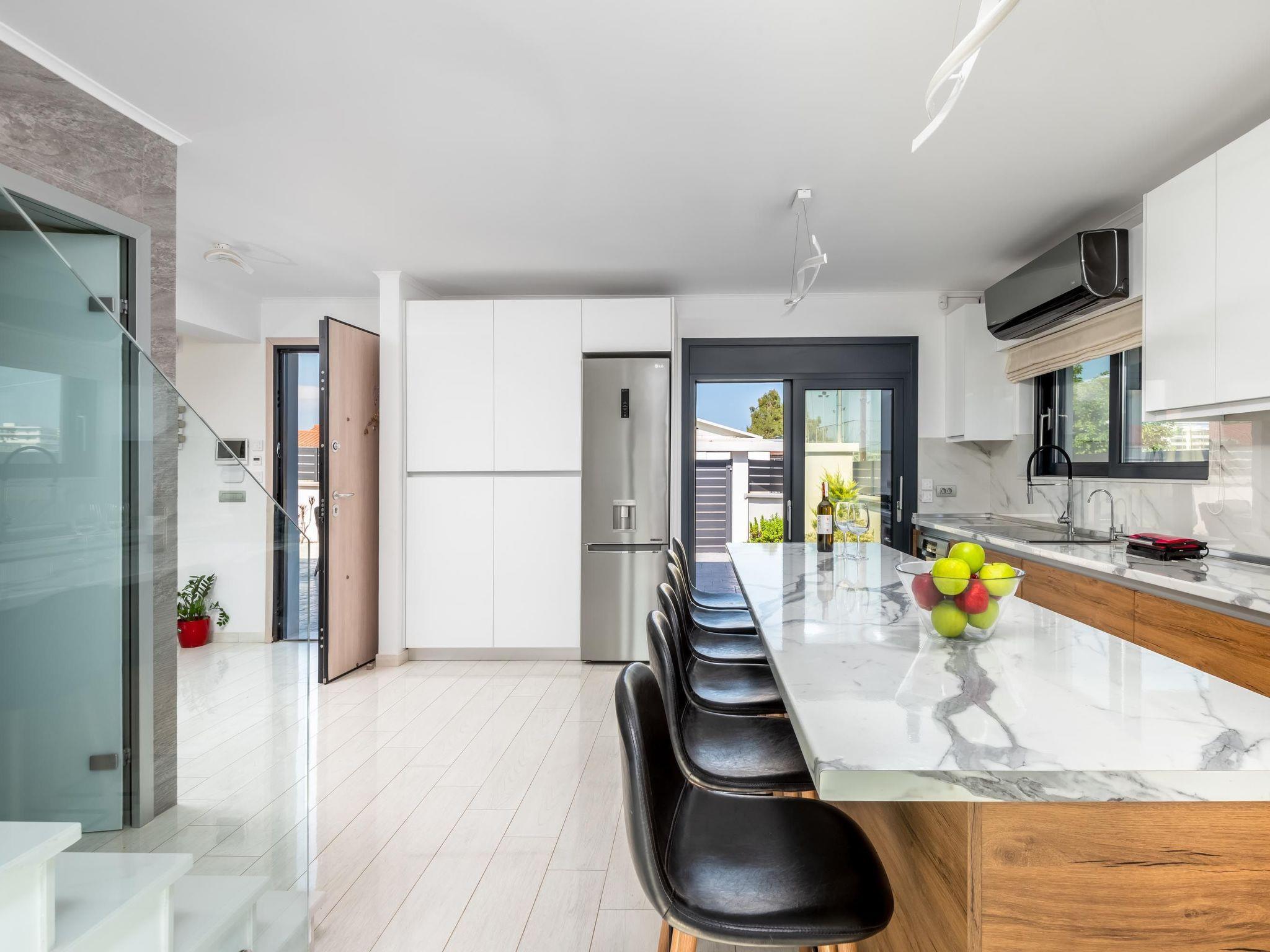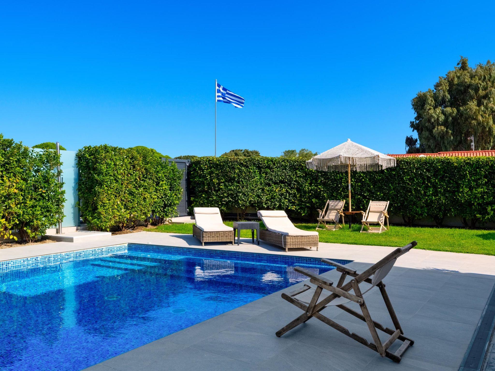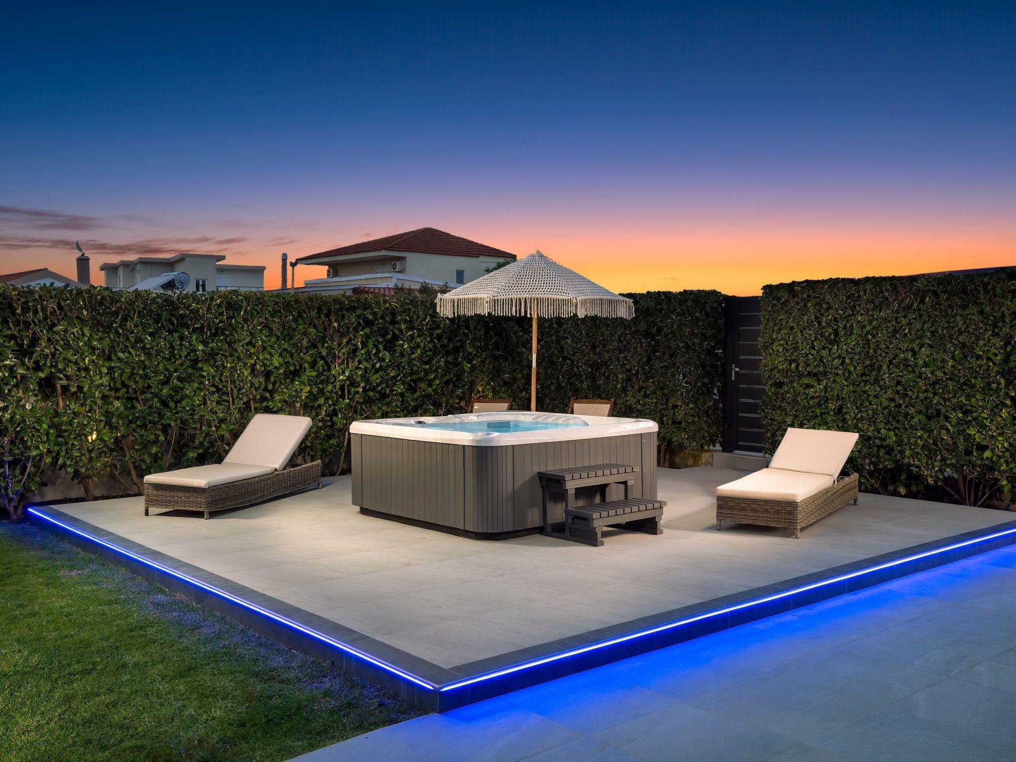 Villa Billys is a 3-bedroom villa.There are 2 fully airconditioned bedrooms with double beds. Also, there are 2 bedrooms with a single bed . All bedrooms are carefully decorated in a quite contemporary style with a modern touch. Also, there is a bathroom with a shower and a wc. Guests will find their kitchen, fully equipped for any meal preparation along with comfortable seating areas. In addition, there’s a unique living area in warm colors that will immediately give you peace. There’s free Wi-Fi access throughout the property as well as smart TVs. Outdoors, you will find the enchanting private swimming pool and its sunbeds. Also, there is an unheated jacuzzi for your ultimate relaxation and comfort. The surrounding is quite peaceful with beautiful gardening and white tones.