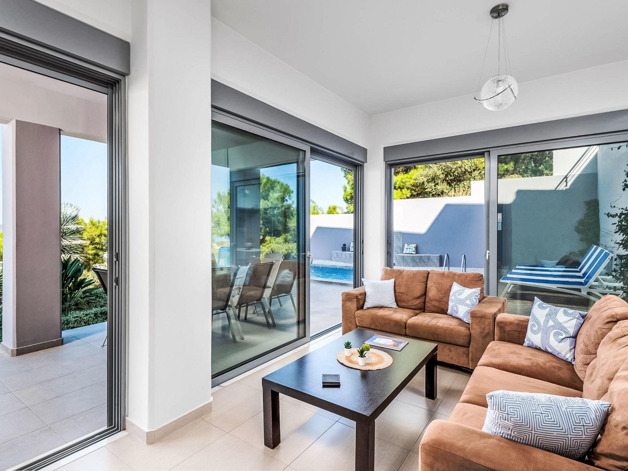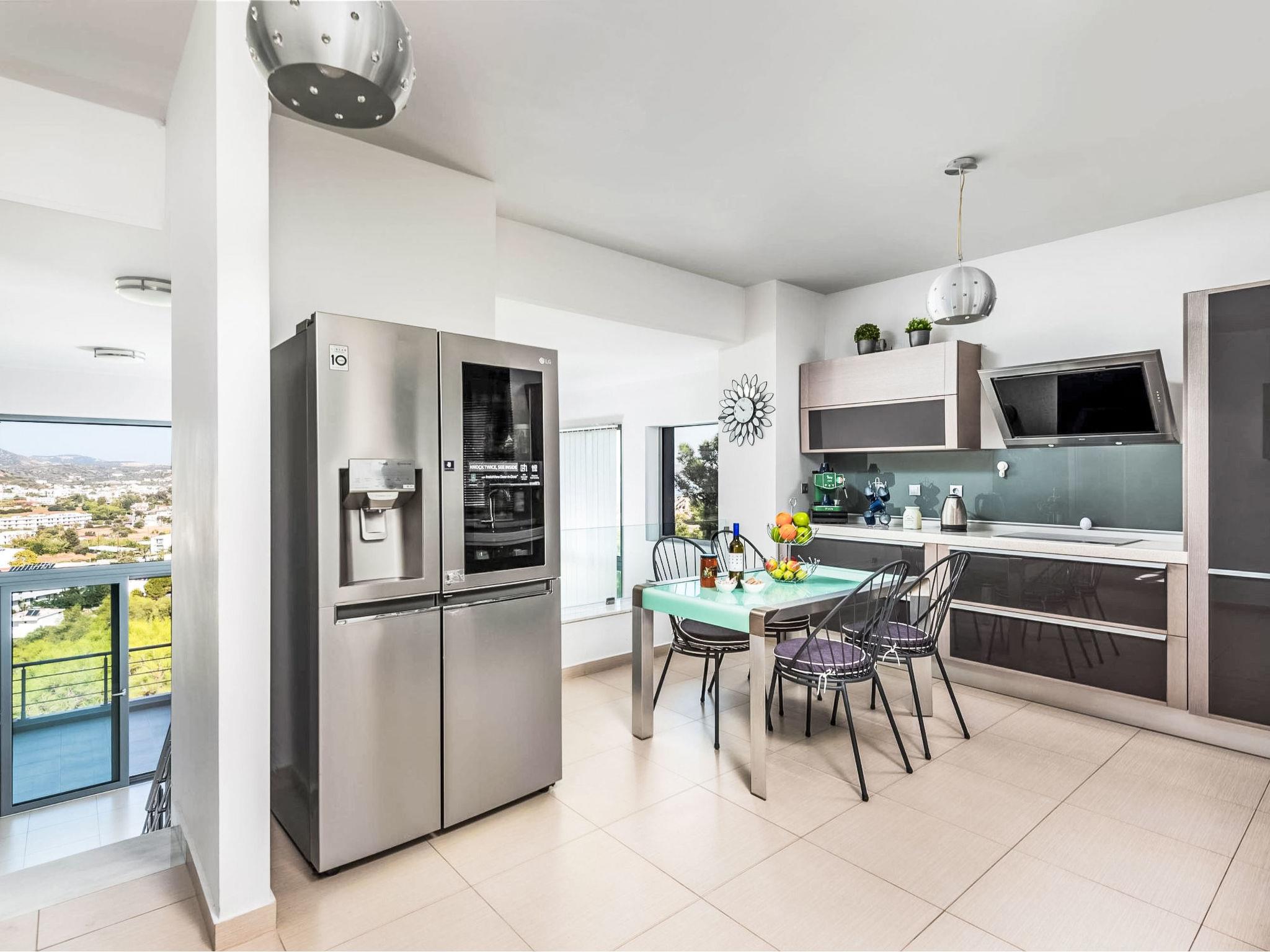 The 4-bedroom villa provides 3 double-bedded rooms and 1 room with 2 single beds, also, 2 bathrooms including a shower and a bathtub. On the ground floor there is a modern living room and a comfy dining area with an inspiring view outdoors. At the top level of the villa is found a fully equipped kitchen, along with a dining area and a cozy living room. The villa owns a flat screen with satellite channels and free Wi-Fi access. Outdoors, guests will find their private swimming pool where they can rest on their stylish sunbeds and benefit from the sun and the remarkable view. Faliraki is quite popular for its night life but if you prefer a tranquil evening with your company there’s a furnished balcony where you can enjoy a fine wine and the starry sky.