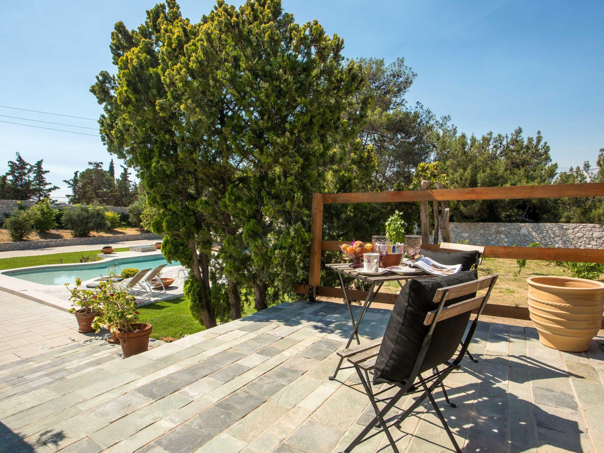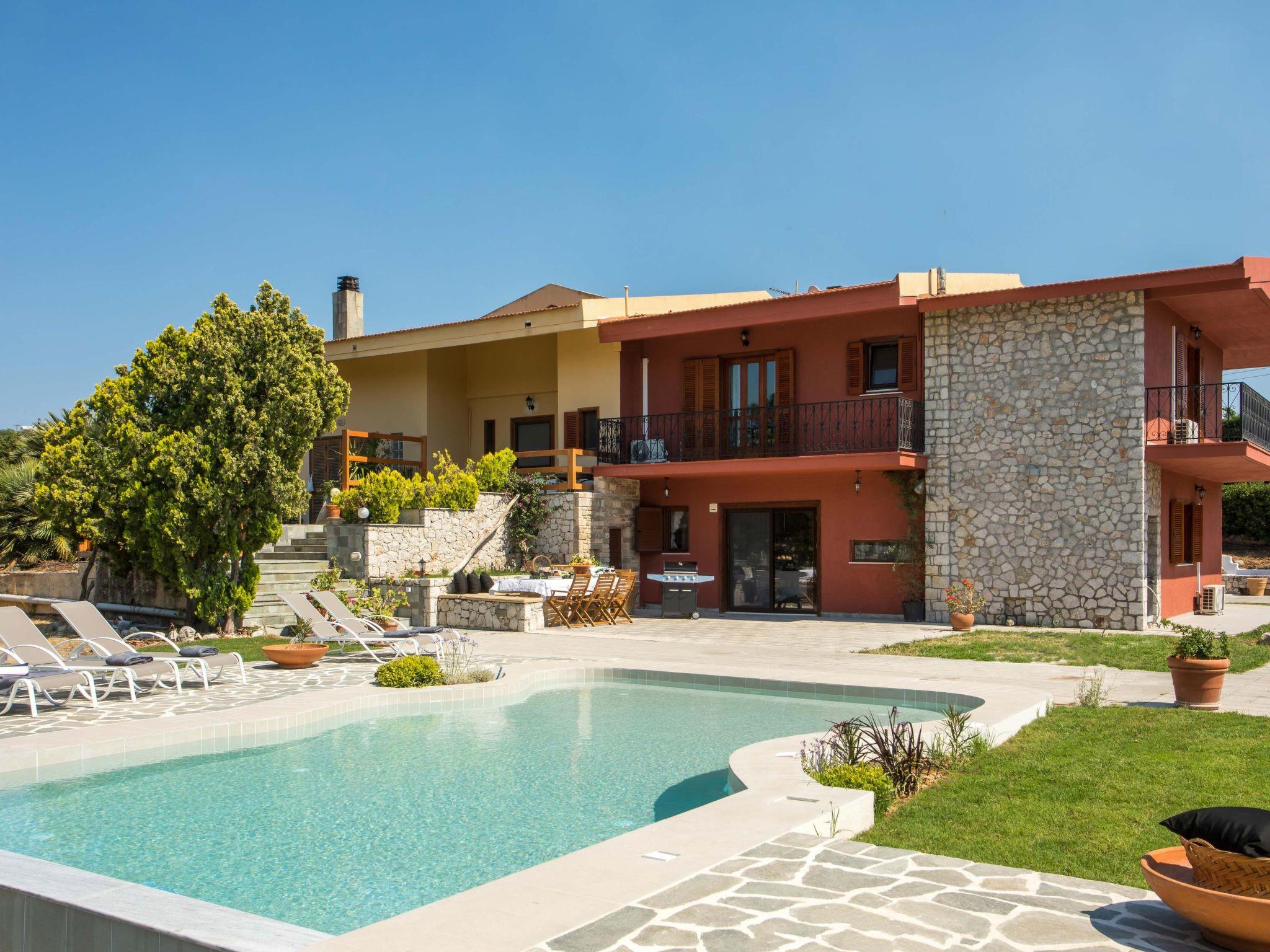 This stunning five-bedroom house in the suburbs of Koskinou town in Rhodes Island boasts an expansive vineyard that surrounds the property, offering a truly unique and picturesque setting for the ultimate Mediterranean lifestyle. As you enter the property, you'll be greeted by an impressive vineyard that stretches out over acres of land, producing some of the finest grapes in the region. The vines are carefully tended to throughout the year, offering a beautiful sight to behold as you walk around the property.The house itself is designed in a charming Tuscan style, with stone exteriors and elegant finishes that blend seamlessly with the surrounding landscape. The open-plan living area features large windows, and unique style furniture designed by the owners, offering a warm and inviting ambiance that is perfect for relaxing with friends and family.The dining area is elegantly furnished with a rustic wooden table that can seat up to six guests, while the fully-equipped kitchen boasts state-of-the-art appliances and plenty of counter space for preparing meals.The five bedrooms are spacious and comfortable, each featuring plush bedding, high-quality linens, and elegant furnishings. The master suite boasts a luxurious en-suite walk in wardrope and bathroom, complete with separate shower.Outside, the property features a private swimming pool that is surrounded by a beautiful garden, complete with lush green lawns and fragrant flowers. The outdoor area is perfect for entertaining guests, with plenty of seating areas and a barbecue for al fresco dining.This incredible property offers a unique blend of luxury and Mediterranean charm, with a stunning vineyard setting that is sure to impress. Whether you're looking for a private retreat or a place to entertain guests, this house offers the perfect combination of comfort, style, and natural beauty.