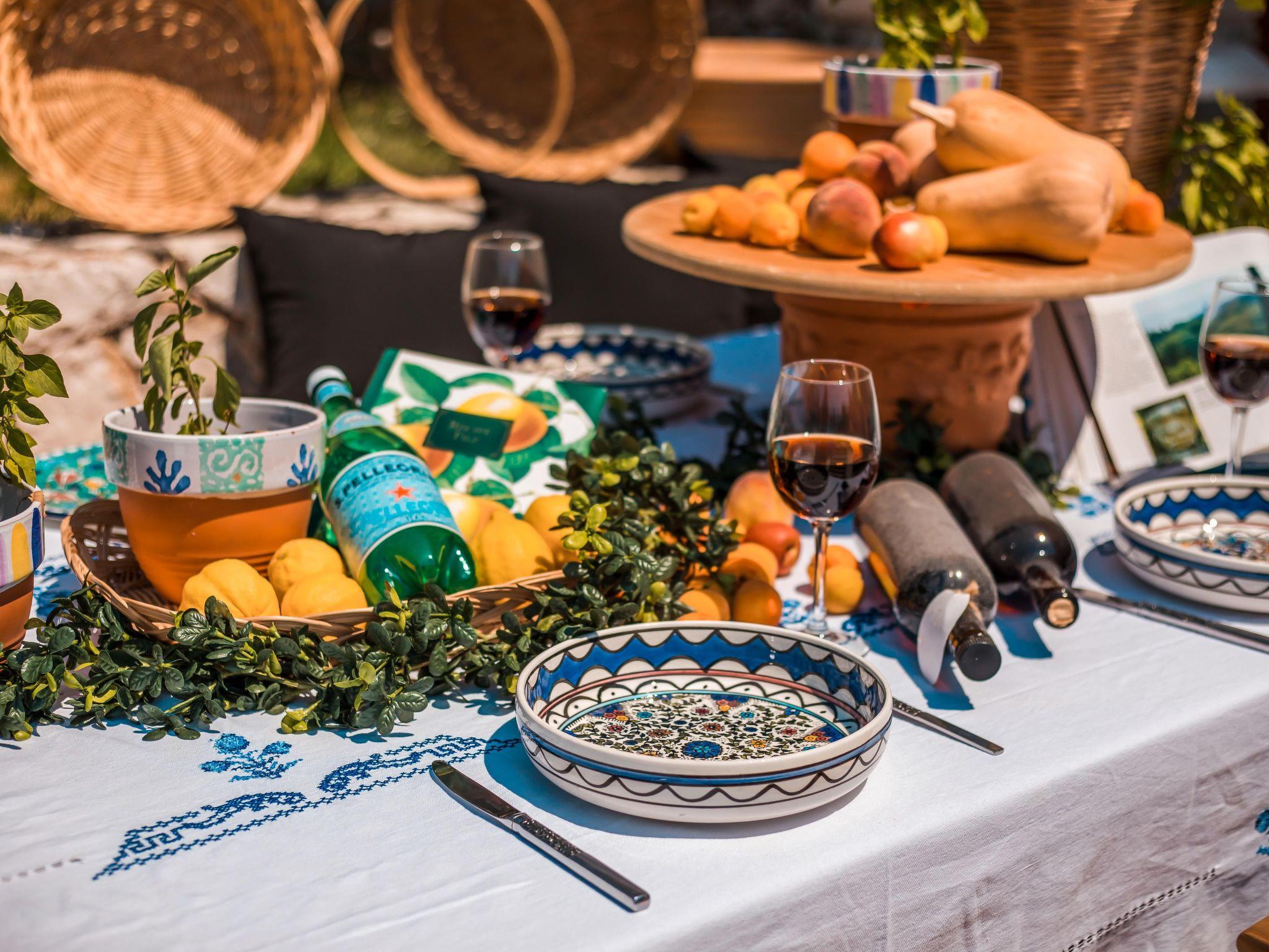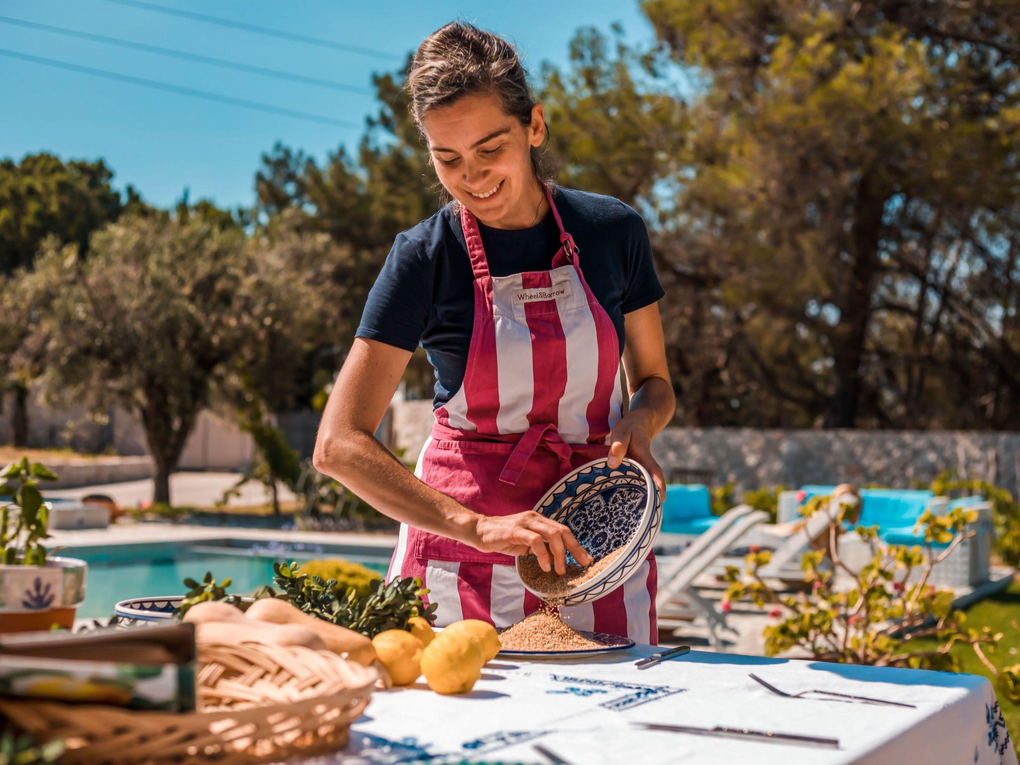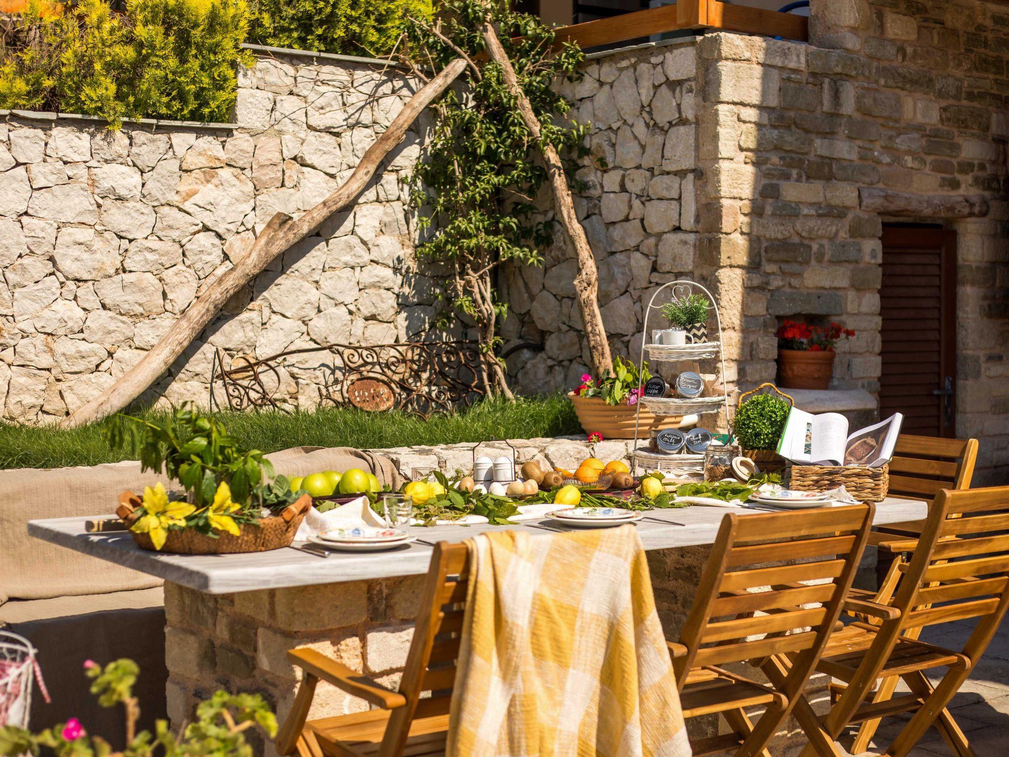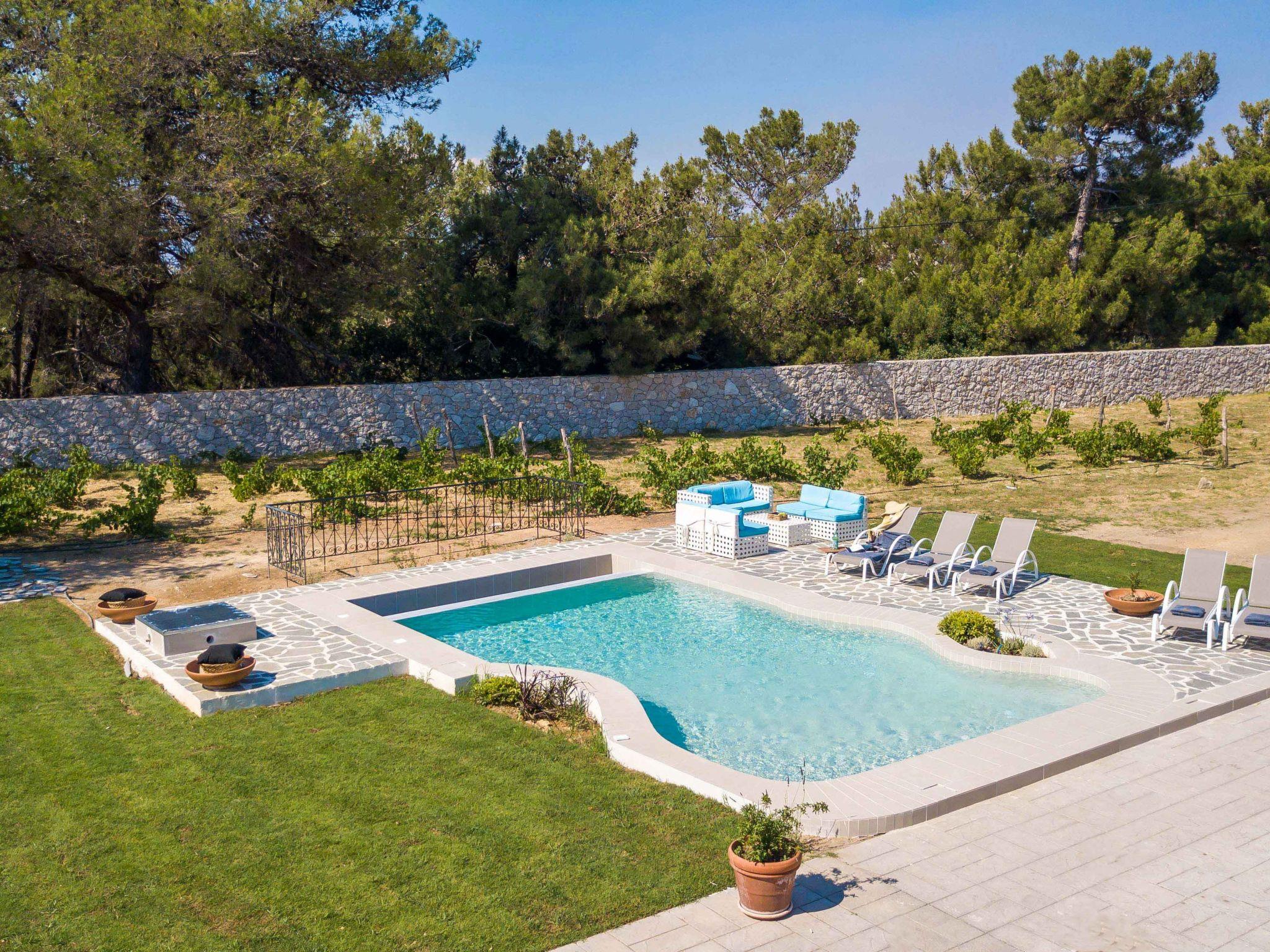 This house boasts a large outdoor space that is perfect for enjoying the beautiful Mediterranean weather. The highlight of the outdoor space is the stunning vineyard that adds natural beauty and a touch of rustic charm. The outdoor area also includes an impressive wood oven, perfect for cooking delicious meals and entertaining guests.In addition to the vineyard and wood oven, the house also has a spacious pool area that is ideal for cooling off on hot summer days. The pool area is well-appointed with comfortable loungers and sun umbrellas, providing ample space for relaxation and enjoyment.The outdoor dining area is another standout feature of the house, offering a perfect setting for al fresco dining and entertaining. Whether you're hosting a family barbecue or a romantic dinner under the stars, the outdoor dining area provides a cozy and inviting atmosphere.Overall, this house offers a perfect blend of indoor and outdoor living, making it an ideal choice for those who love spending time in nature and enjoy entertaining guests.This house is also an ideal venue for hosting small wedding events. With its large outdoor space and beautiful surroundings, it provides an intimate and romantic setting for exchanging vows and celebrating with loved ones.The spacious pool area and outdoor dining area offer plenty of room for guests to socialize and enjoy the festivities. The vineyard and natural surroundings also provide a picturesque backdrop for wedding photos and videos.In addition, the house offers comfortable accommodation for guests who may be traveling from out of town to attend the wedding. With its ample indoor and outdoor space, the house can easily accommodate small groups of guests, providing a convenient and memorable experience for everyone involved.This house is the perfect choice for those seeking a beautiful and intimate setting for a small wedding event, with all the amenities and accommodations needed to make the day truly special.