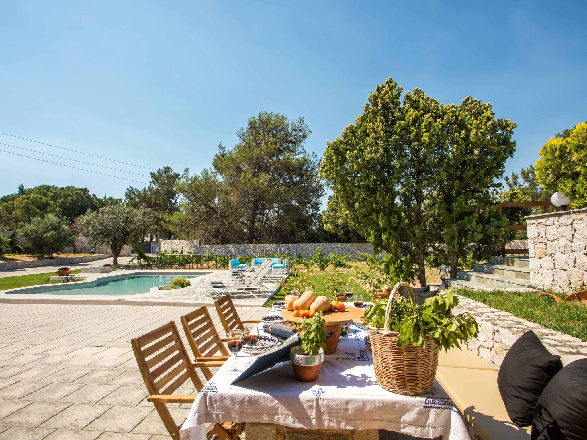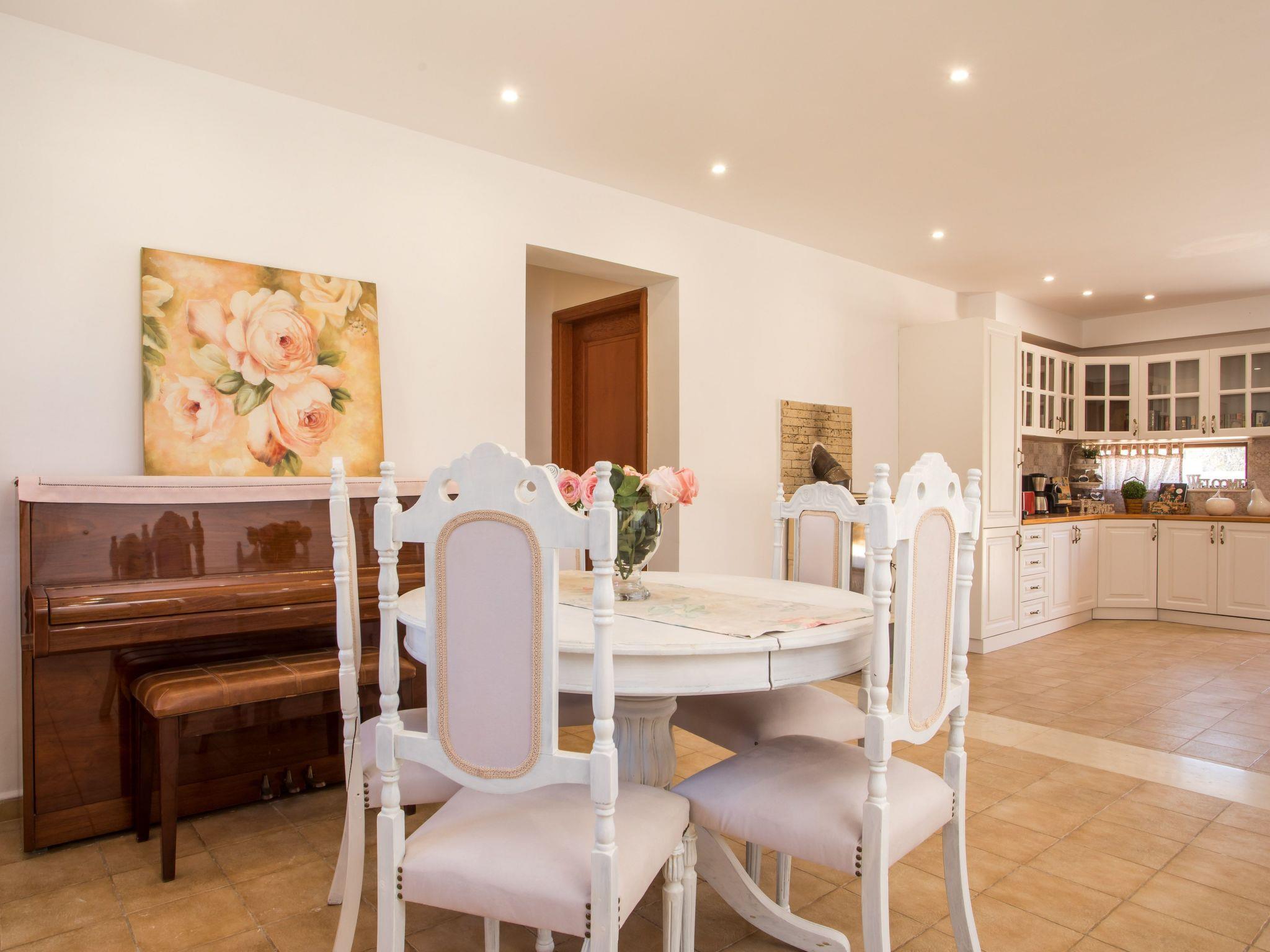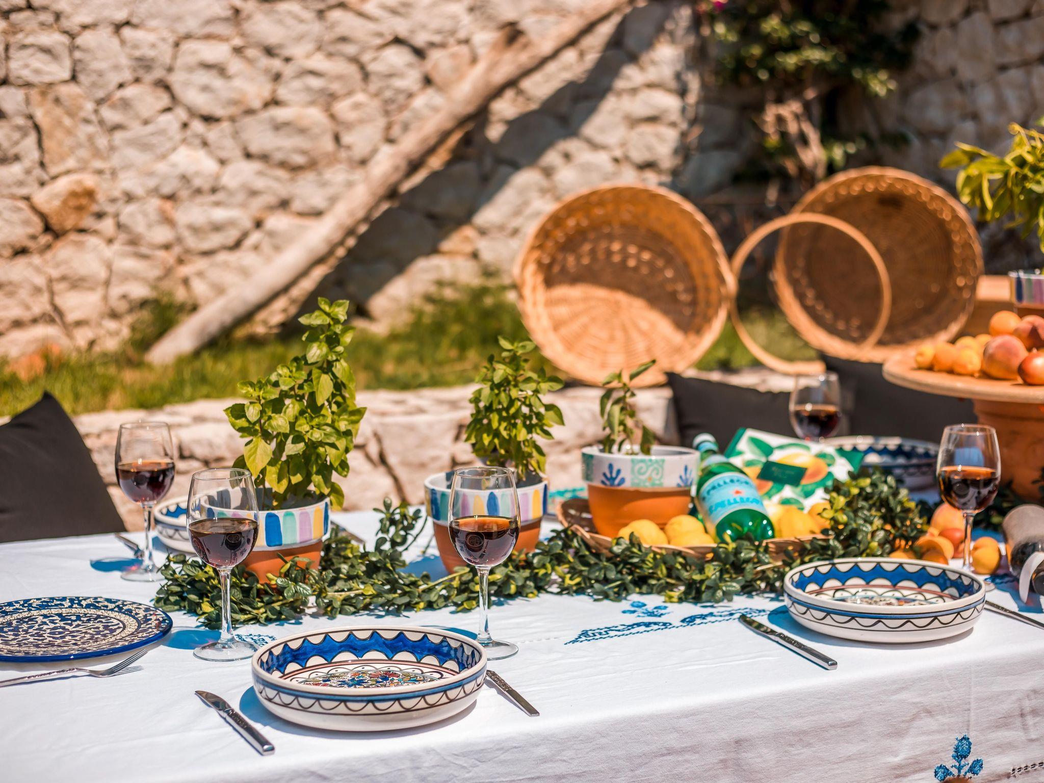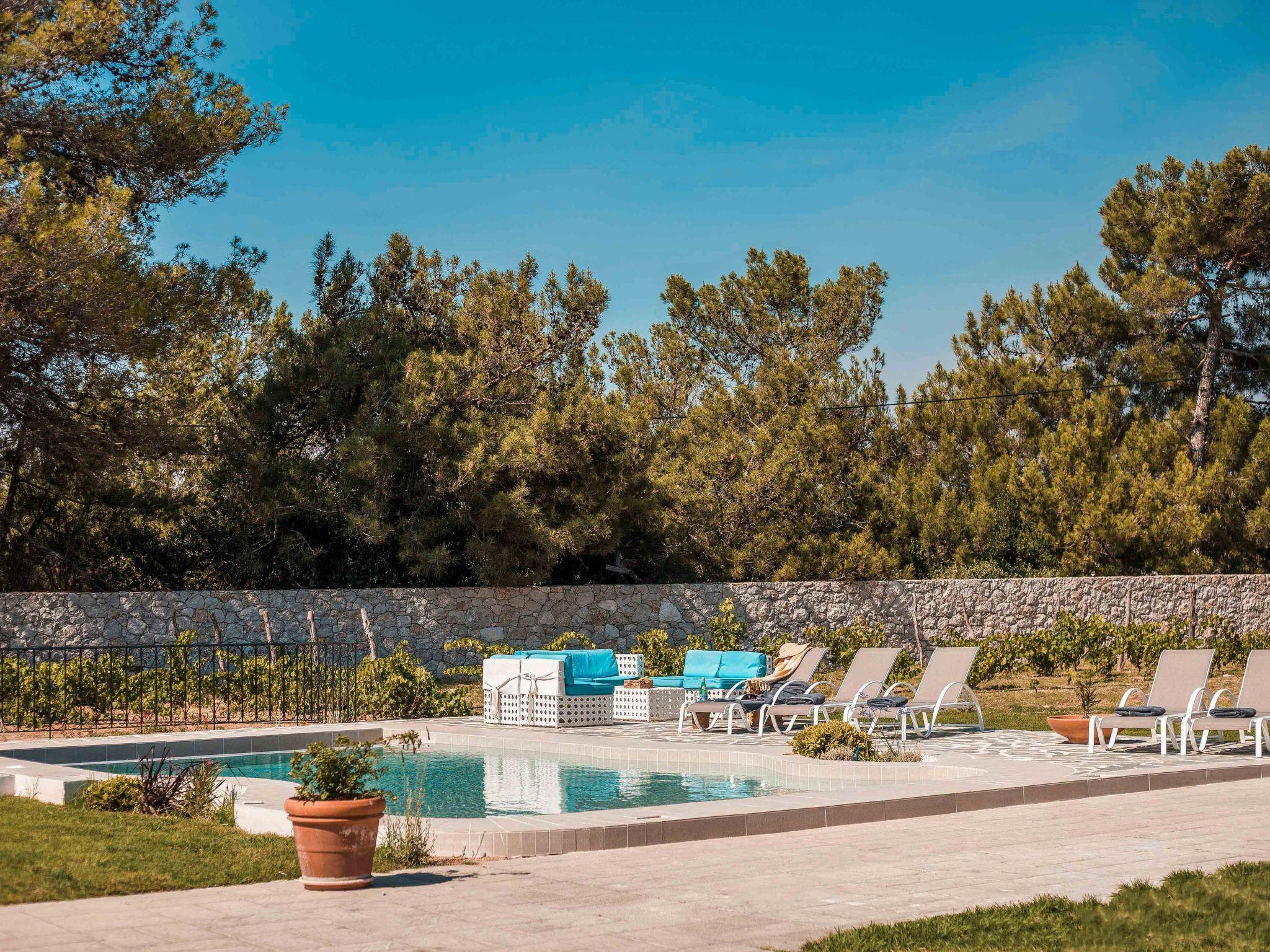 This house boasts a large outdoor space that is perfect for enjoying the beautiful Mediterranean weather. The highlight of the outdoor space is the stunning vineyard that adds natural beauty and a touch of rustic charm. The outdoor area also includes an impressive wood oven, perfect for cooking delicious meals and entertaining guests.In addition to the vineyard and wood oven, the house also has a spacious pool area that is ideal for cooling off on hot summer days. The pool area is well-appointed with comfortable loungers and sun umbrellas, providing ample space for relaxation and enjoyment.The outdoor dining area is another standout feature of the house, offering a perfect setting for al fresco dining and entertaining. Whether you're hosting a family barbecue or a romantic dinner under the stars, the outdoor dining area provides a cozy and inviting atmosphere.Overall, this house offers a perfect blend of indoor and outdoor living, making it an ideal choice for those who love spending time in nature and enjoy entertaining guests.This house is also an ideal venue for hosting small wedding events. With its large outdoor space and beautiful surroundings, it provides an intimate and romantic setting for exchanging vows and celebrating with loved ones.The spacious pool area and outdoor dining area offer plenty of room for guests to socialize and enjoy the festivities. The vineyard and natural surroundings also provide a picturesque backdrop for wedding photos and videos.In addition, the house offers comfortable accommodation for guests who may be traveling from out of town to attend the wedding. With its ample indoor and outdoor space, the house can easily accommodate small groups of guests, providing a convenient and memorable experience for everyone involved.This house is the perfect choice for those seeking a beautiful and intimate setting for a small wedding event, with all the amenities and accommodations needed to make the day truly special.