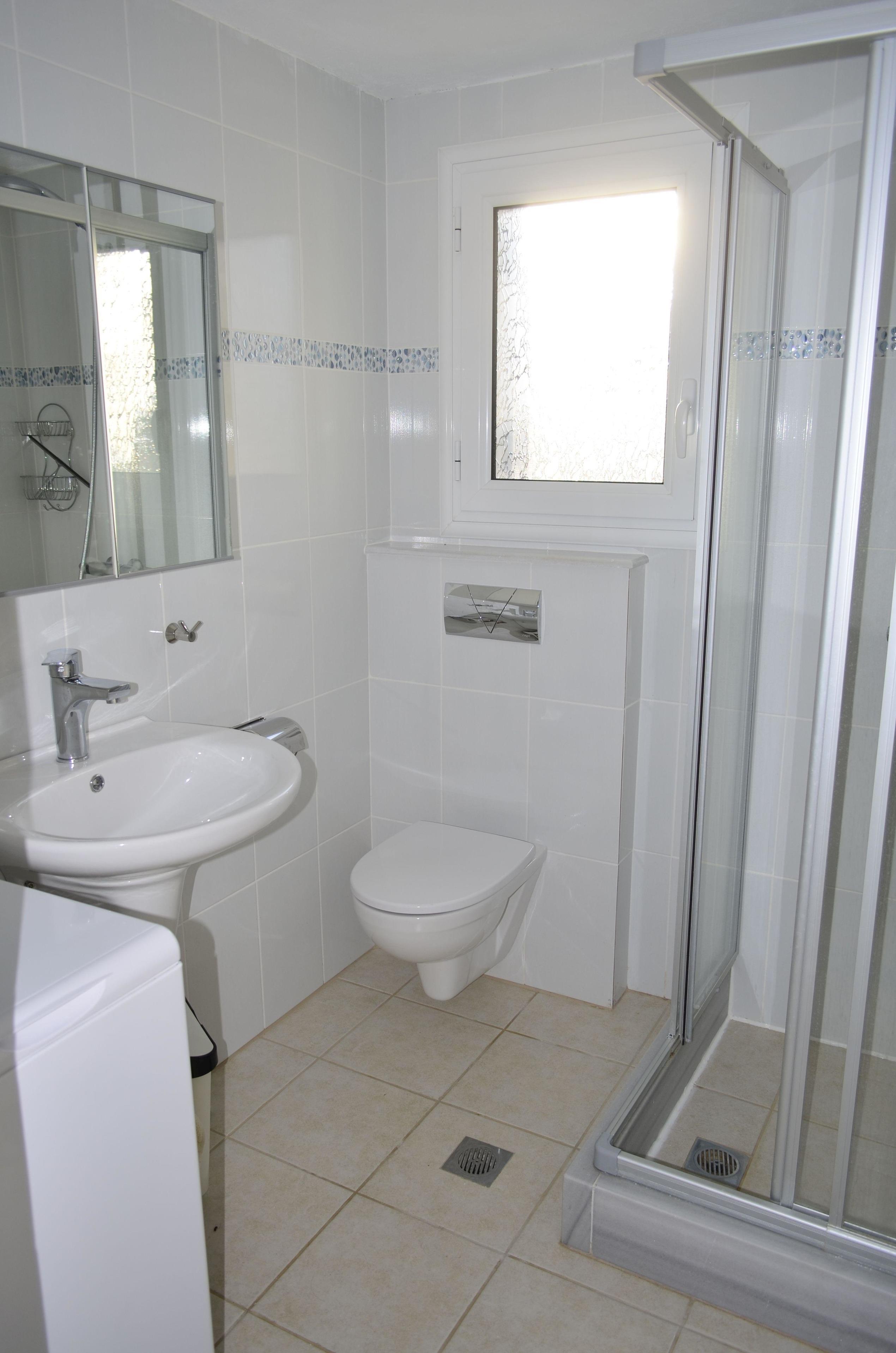 Helle hohe Räume mit Holzdecken gibt es in der Villa Pilias. 3 Schlafzimmer mit Doppelbetten, 2 komplette Bäder mit Duschen, im Hauptbad ist ein Doppelwaschbecken. In den drei Schlafzimmern bringt bei Hitze eine Aircondition Kälte. Zusätzlich kann die gesamte Villa über die Fußbodenheizung gekühlt werden. Im Winter sorgt eine Elektrotherme oder ein Holzofen im Wohnessraum, der mit Wassertaschen an die Fußbodenheizung angeschlossen ist, für Wärme im ganzen Haus. Mittelpunkt ist die große Wohnküche mit Essecke in einem Erker und einer Schlafcouch vor dem Full-HD-Fernseher, der alle frei zugänglichen Programme empfängt. Ein kleinerer Full-HD-Fernseher gibt es noch in einem Schlafzimmer. Die Küche ist voll ausgestattet mit Geschirr, Geräten wie Backofen, Cerankochfeld, Spülmaschine, Mikrowelle und zusätzlich Küchenmaschine und für außen ein 500 Grad HIghtech Elektrogrill. Es gibt auch eine Waschmaschine für ausreichend vorhandenen Hand-, Bade- und Strandtücher. Im großen Bücherschrank stehen auch griechische Kochbücher und auch ein Wanderbuch mit 17 gut beschriebenen Wegen für das südliche Messenien. Und bei den freewalkers erfährt man etwas über kostenlose geführte Wanderungstermine im Frühjahr, Herbst und Winter. Auf der Terrasse ist eine riesige Markise als Sonnenschutz installiert, die im Winter reingedreht werden kann. Die Villa Pilias ist so ausgerichtet, dass sie im Herbst, Winter oder Frühjahr den kalten Nordwind auf der Terrasse abhält.
