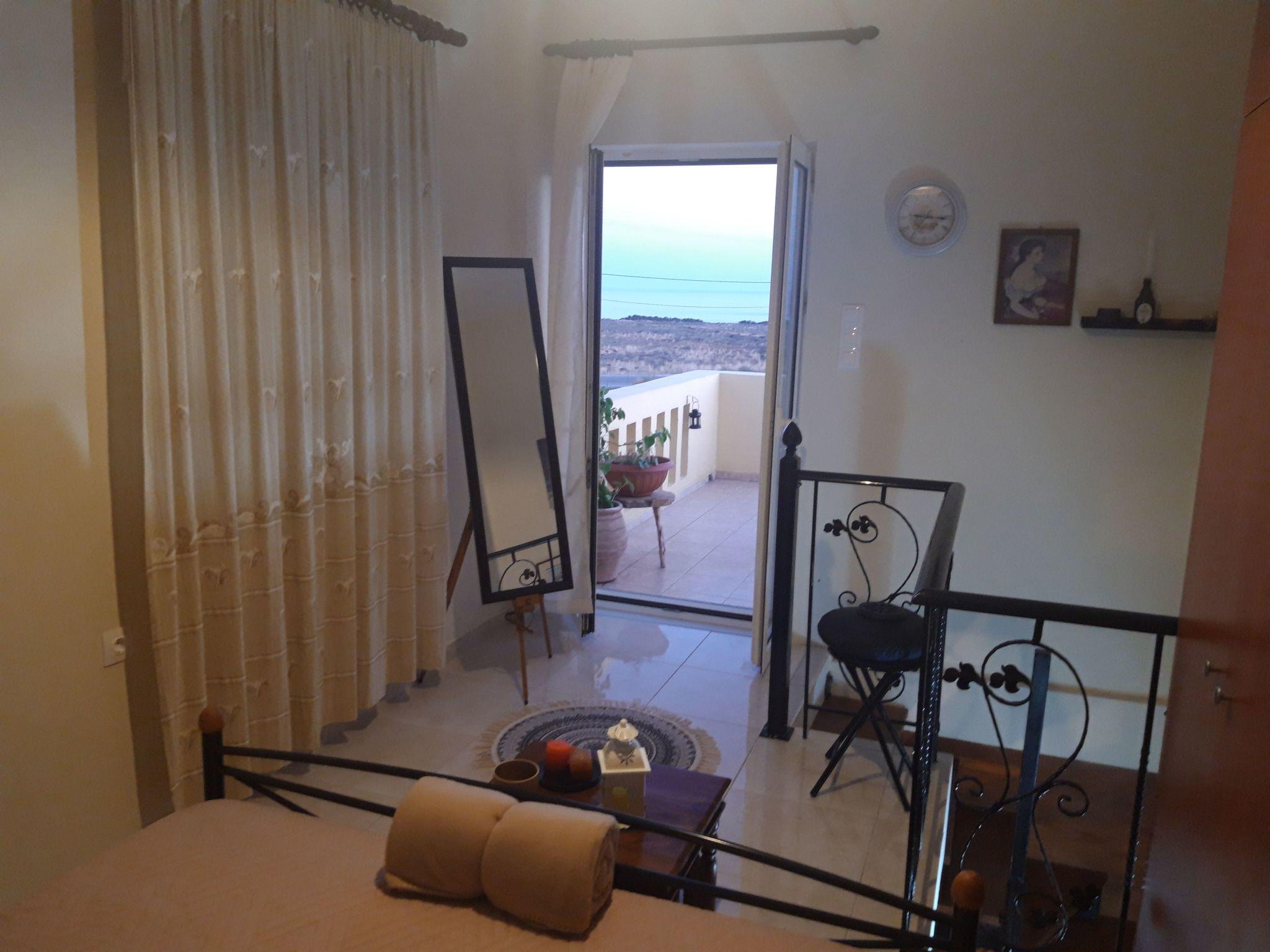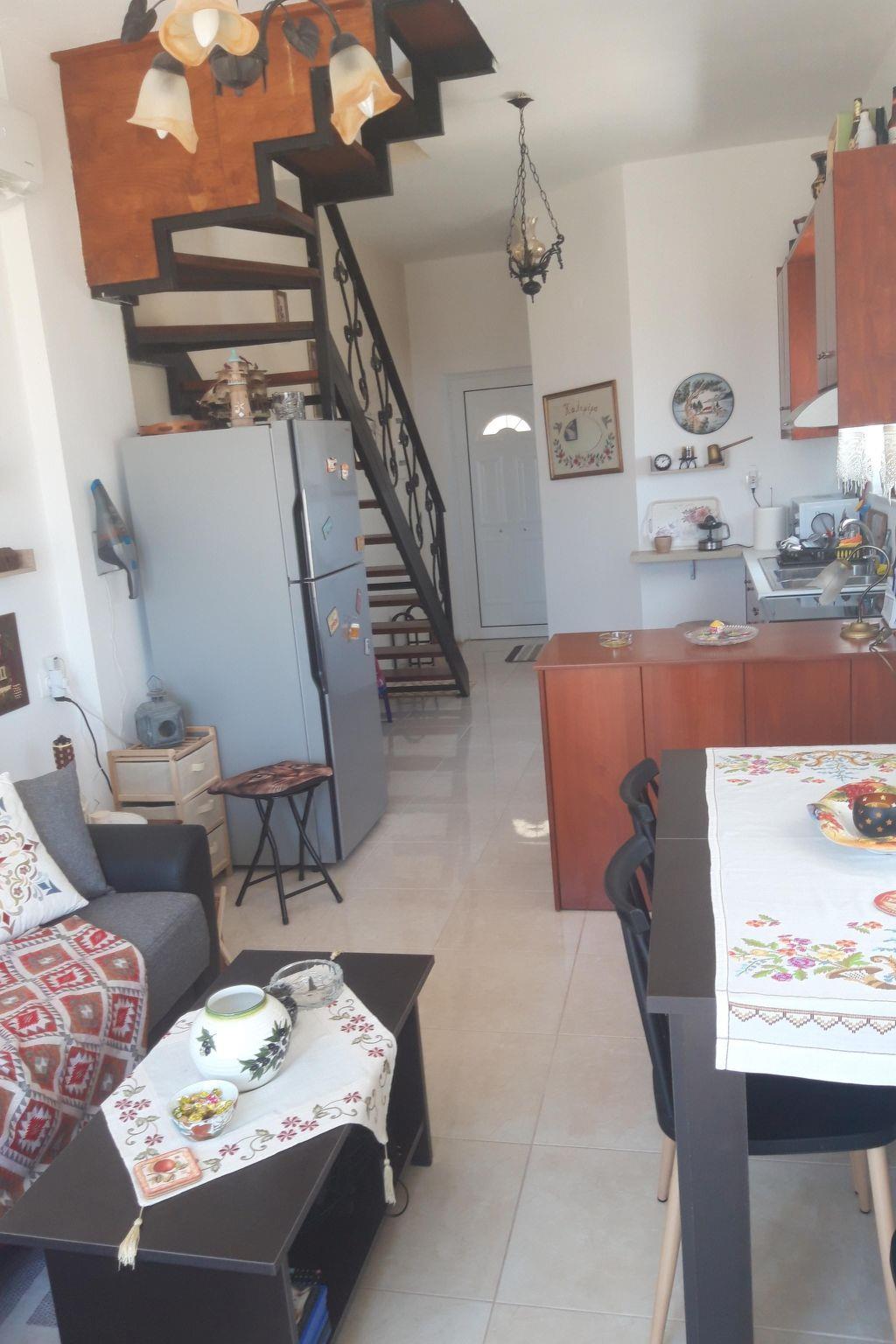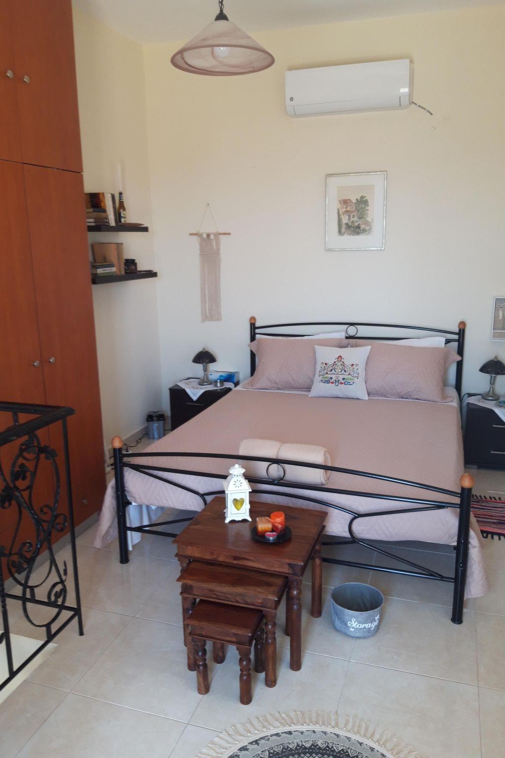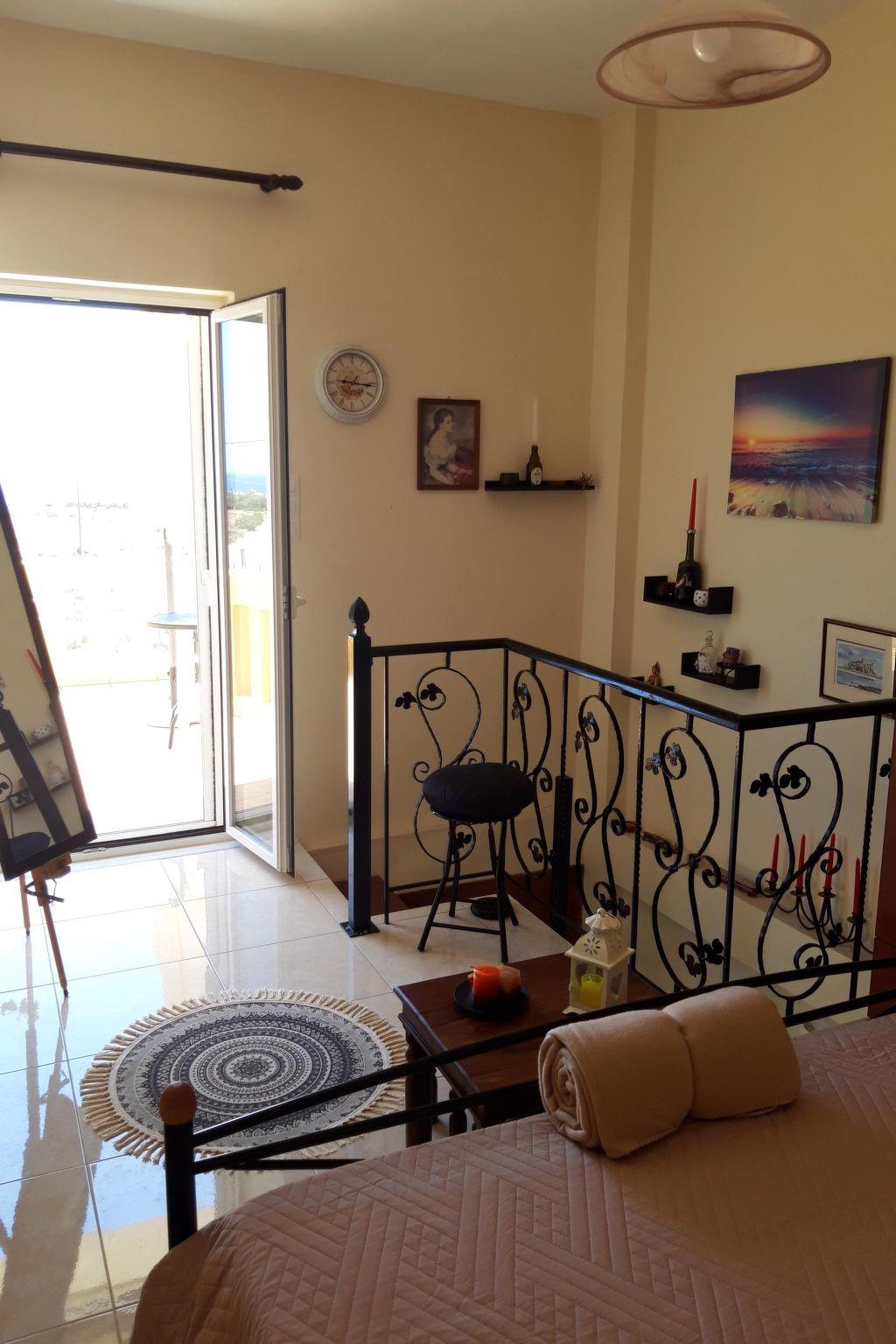 Two floors simply and stylishly furnished, downstairs /cca 30 m2/ with living room, fully equipped kitchen /electric cooker with oven, fridge with refrigerator and ice cubes maker, microwave, coffee machine for espresso, greek coffee, french press, frappe, tea kettle, kettle, electric fresh juice maker, sandwich maker/, bathroom with shower /incl. washing machine/ and great veranda. The sofa in living room can be made double bed. Upstairs bedroom /cca 20 m2/ with balcony and breathtaking sea and mountain view. Bedroom is equipped with comfortable double bed and wardrobe to store your clothes. Coffee, tea, sugar, spices, tsikoudia and biological olive oil from our own production included. Upon your arrival welcome breakfast is included /butter, marmalade, honey, toast bread, ham, cheese, eggs, milk and juice/. The whole place is air-conditioned, equipped with TV and WiFi. Mosquito net, tablets and spiral, for people suffering alergies a special anti-mosquito blue light device.