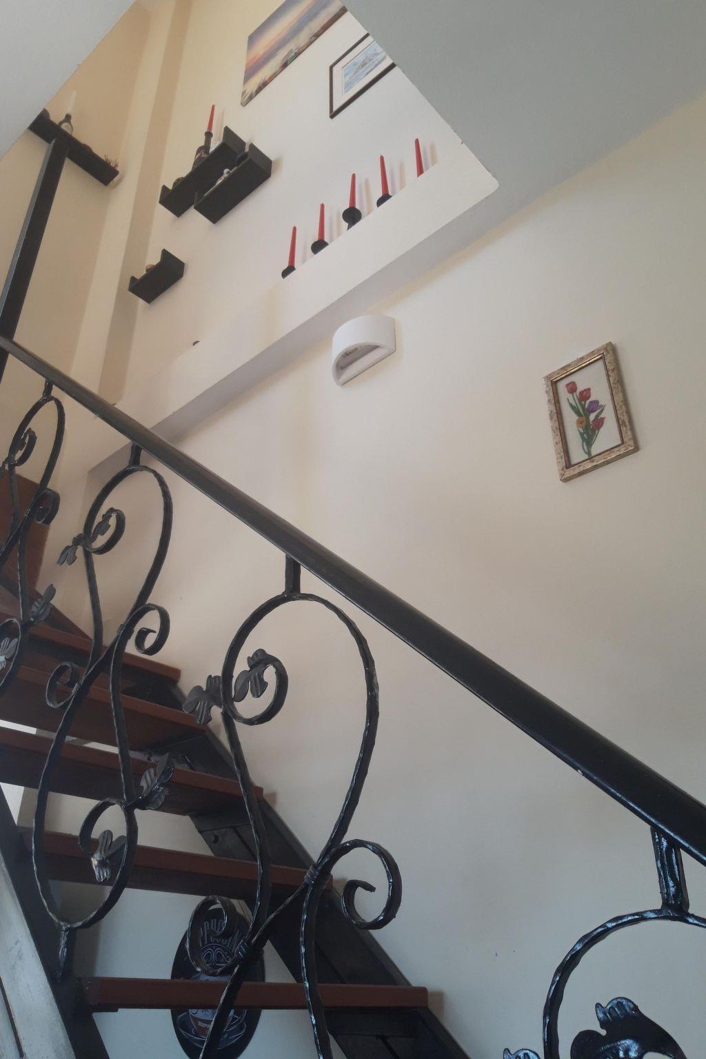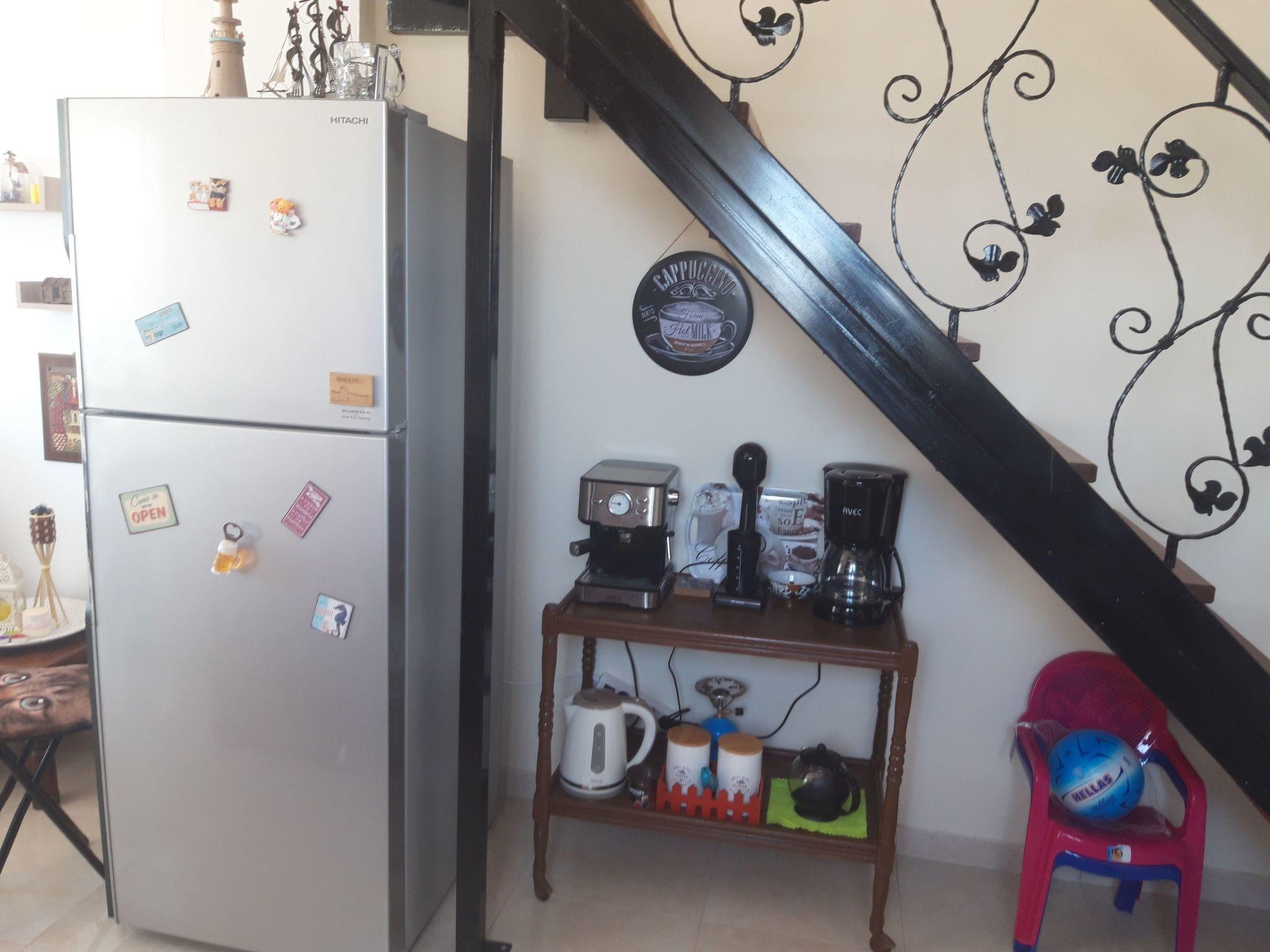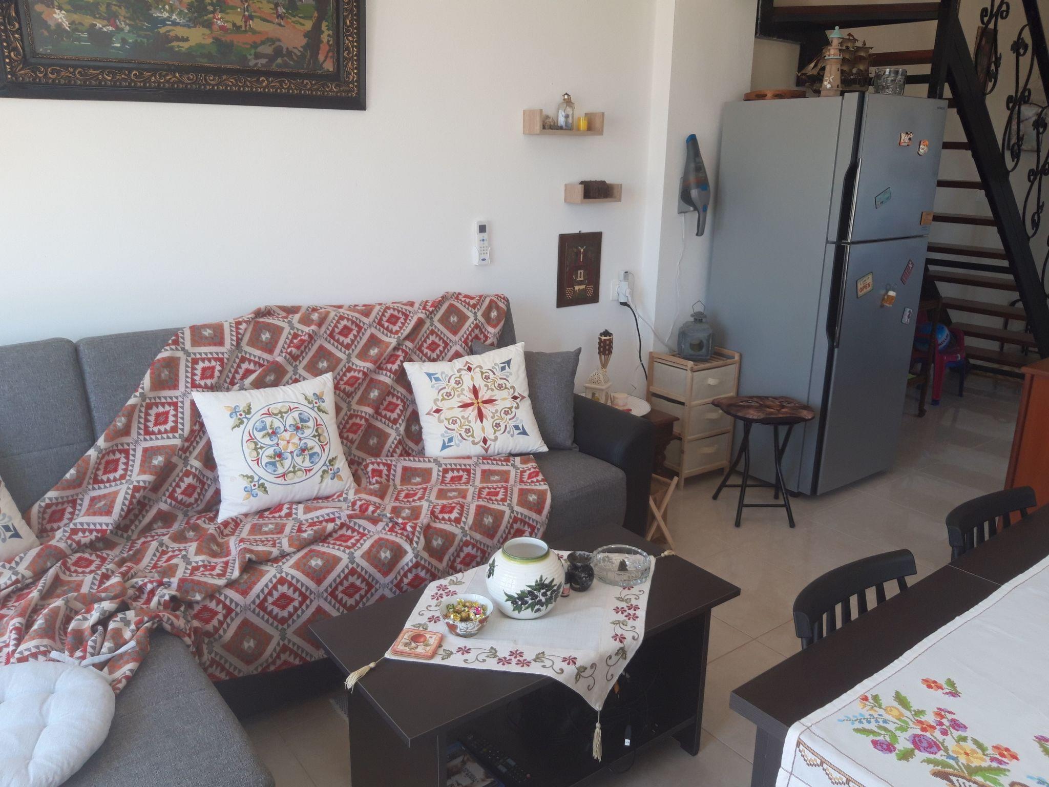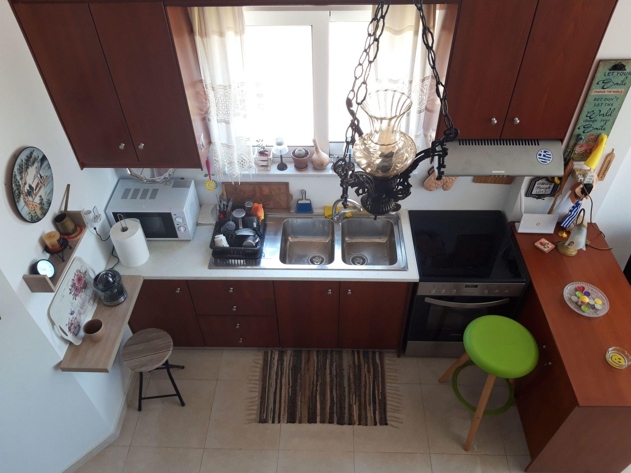 Two floors simply and stylishly furnished, downstairs /cca 30 m2/ with living room, fully equipped kitchen /electric cooker with oven, fridge with refrigerator and ice cubes maker, microwave, coffee machine for espresso, greek coffee, french press, frappe, tea kettle, kettle, electric fresh juice maker, sandwich maker/, bathroom with shower /incl. washing machine/ and great veranda. The sofa in living room can be made double bed. Upstairs bedroom /cca 20 m2/ with balcony and breathtaking sea and mountain view. Bedroom is equipped with comfortable double bed and wardrobe to store your clothes. Coffee, tea, sugar, spices, tsikoudia and biological olive oil from our own production included. Upon your arrival welcome breakfast is included /butter, marmalade, honey, toast bread, ham, cheese, eggs, milk and juice/. The whole place is air-conditioned, equipped with TV and WiFi. Mosquito net, tablets and spiral, for people suffering alergies a special anti-mosquito blue light device.