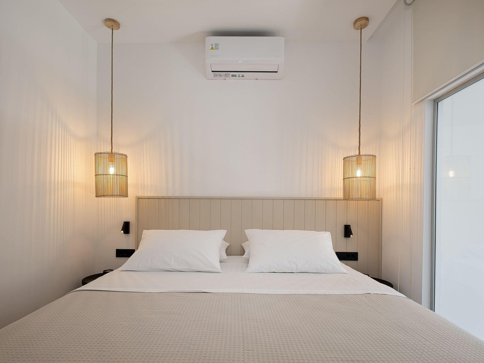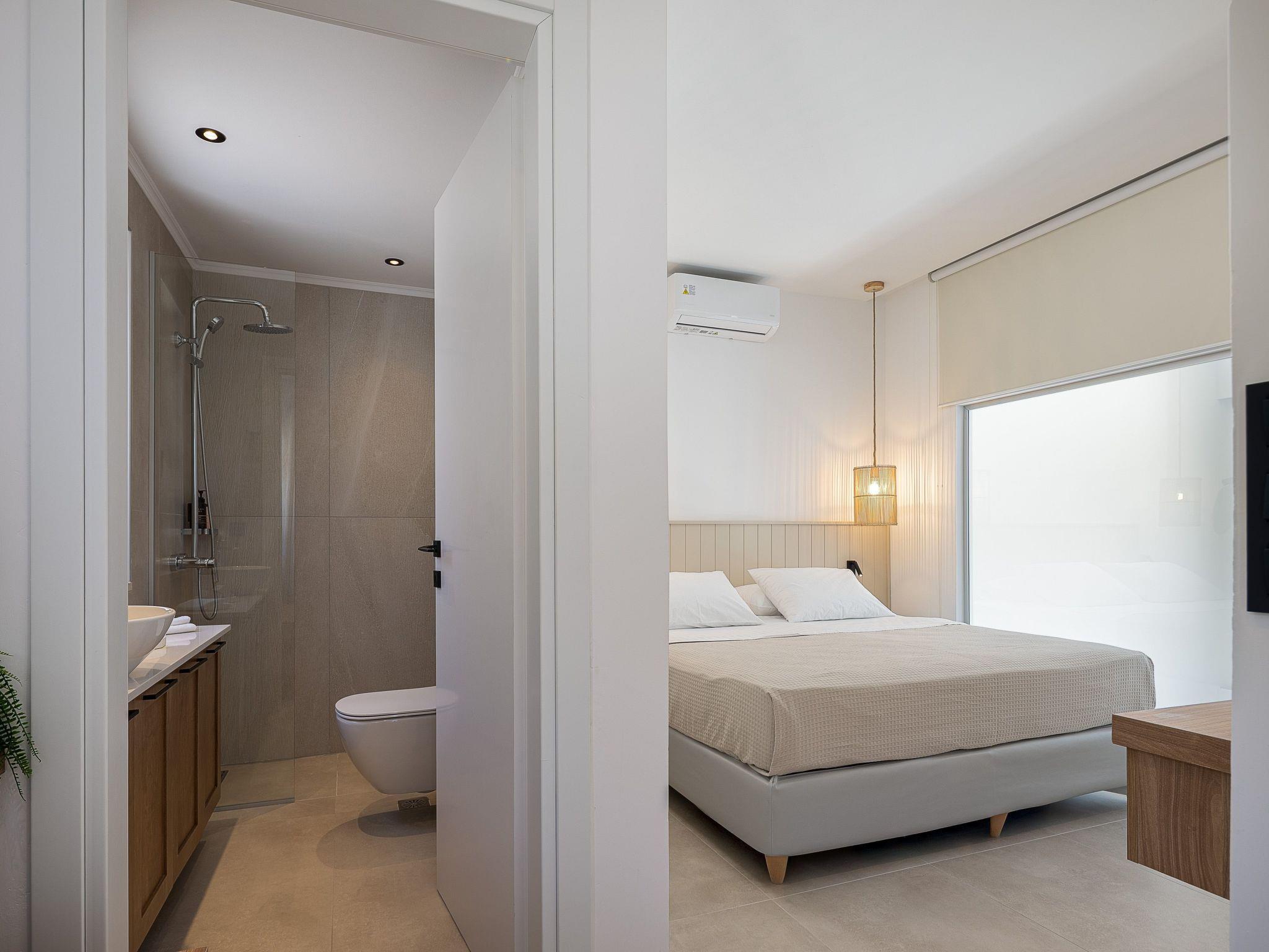 Bedroom 1: King-size bed (1.80x2.00), A/C, access to yard, ensuite bathroom with shower