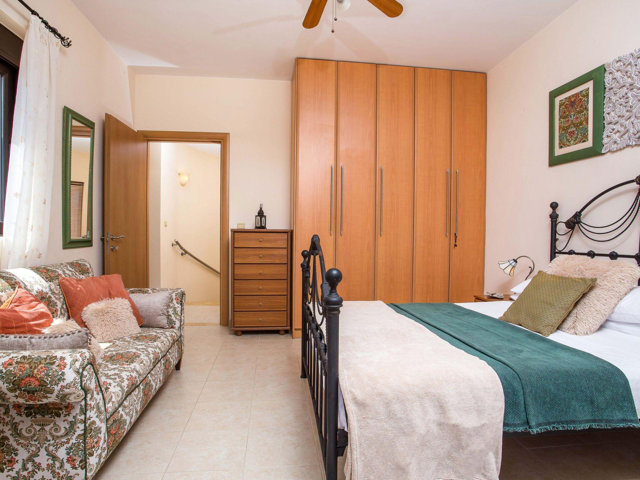 The villa features three bedrooms and can accommodate six persons. Two bedrooms have a 200 x 200 cm double bed, the third bedroom has two 90 x 200 cm single beds (can be pushed together to make a double). There is a comfortable living area with a fireplace, a fully equipped kitchen with a dining area and two bathrooms: one with a bath tub and one with a shower. Free wifi, fully air conditioned.