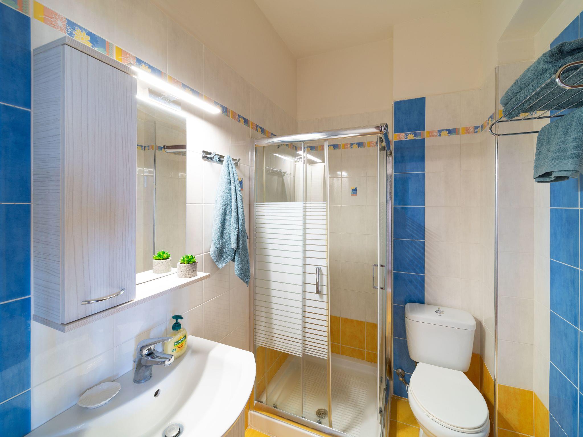 The interiors of Mare Blu 1 and Mare Blu 2 have been thoughtfully equipped to ensure a hassle-free vacation. Each maisonette features two cozy bedrooms, with air conditioning available throughout to keep you cool during those warm Mediterranean nights. For your convenience, there are also two modern bathrooms in each property, equipped with showers. The ground floor houses a compact kitchen, ideal for preparing light meals, and a quaint living room area, perfect for unwinding after a day of adventure. The addition of a washing machine exclusively for guest use, along with a capsule coffee machine (including capsules/pods) and an electric kettle, further adds to the comfort of your stay.