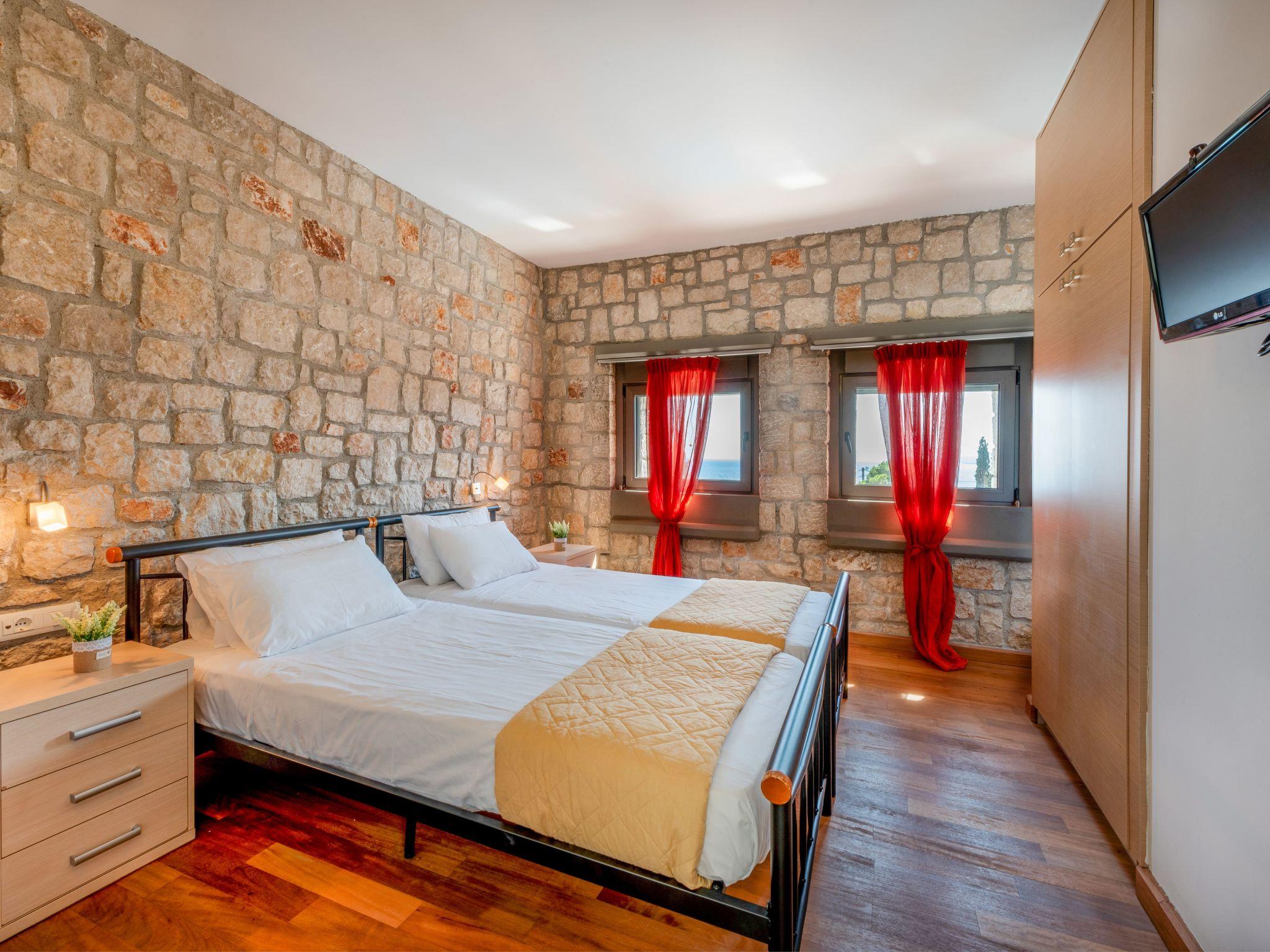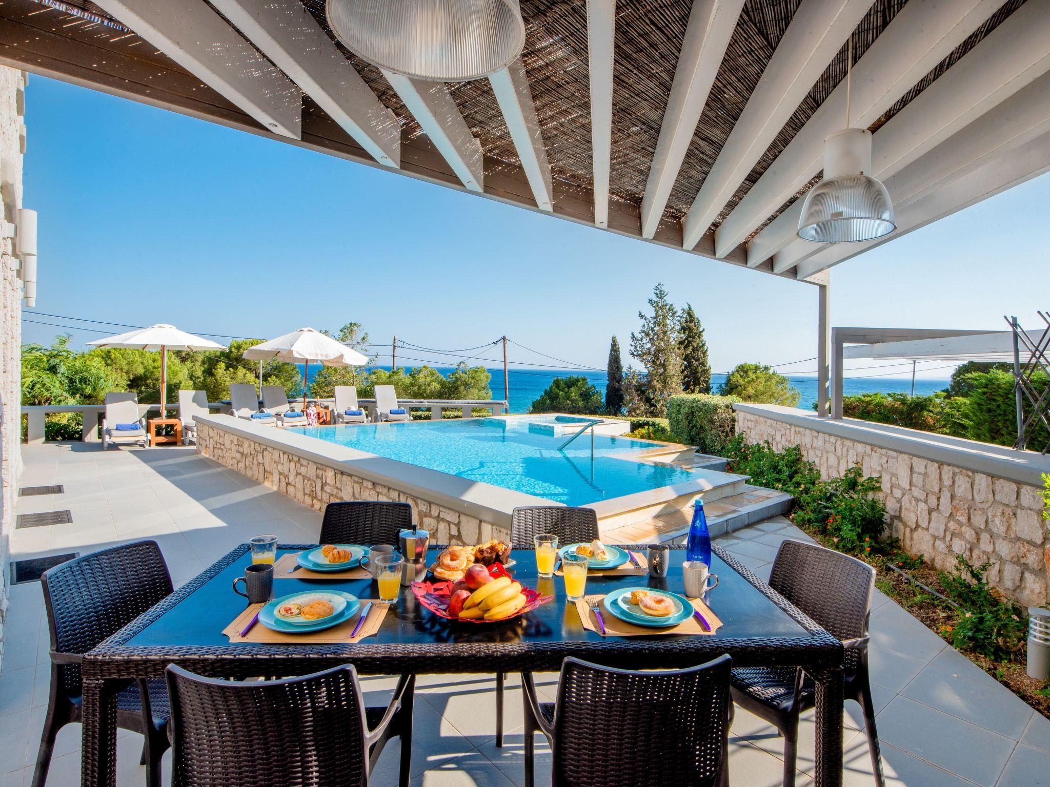 Enjoy lazy days by the pool-Jacuzzi ( 35sq2) with breathtaking views across the local bays and take in mesmerizing sunsets over the offshore islands. There are four bedrooms, one with en-suite WC-Shower, one bathroom and one WC. There are two double bedrooms and two twin bedrooms. The covered veranda offers shade during the hot summer months and the large patio area is ideal for outdoor cooking on the barbecue area. The pool-Jacuzzi overlooks the bay and on towards the mountains opposite.