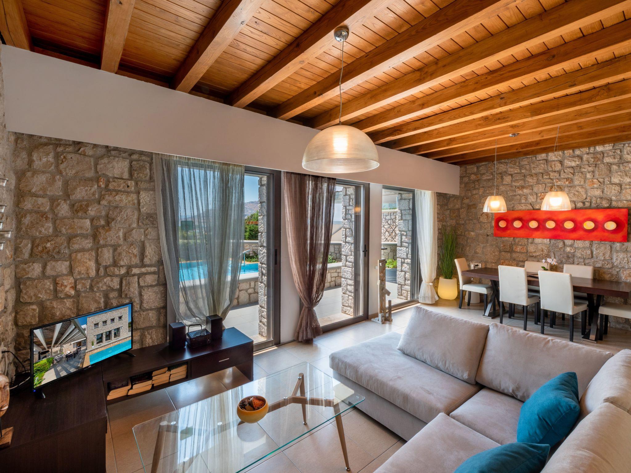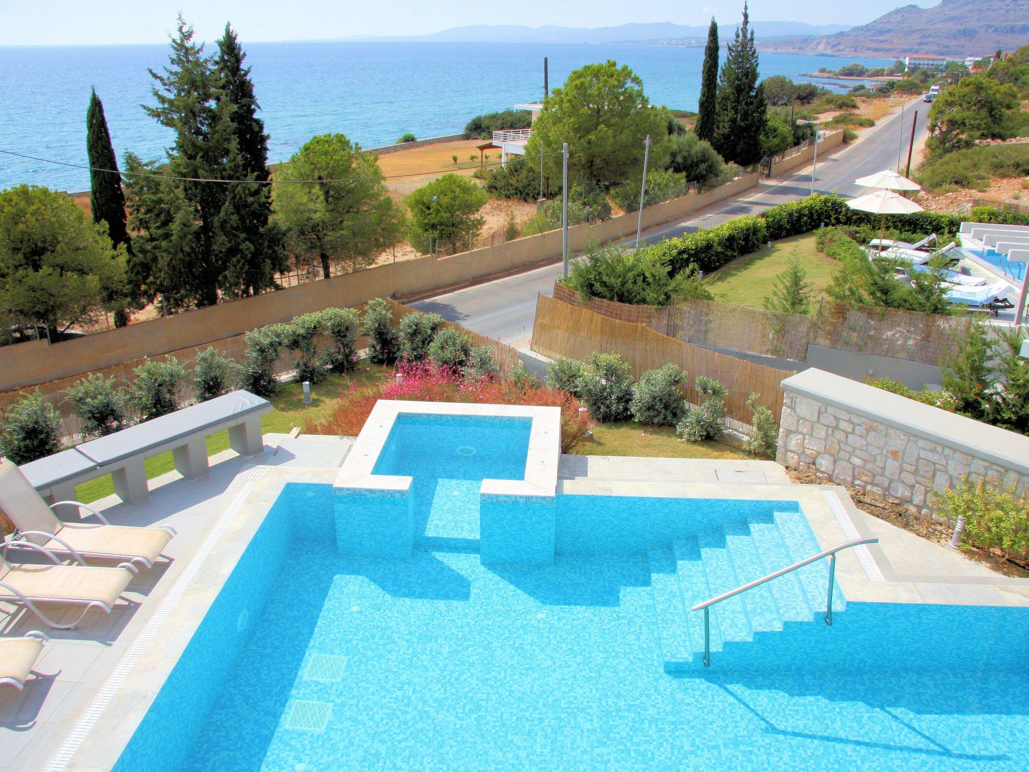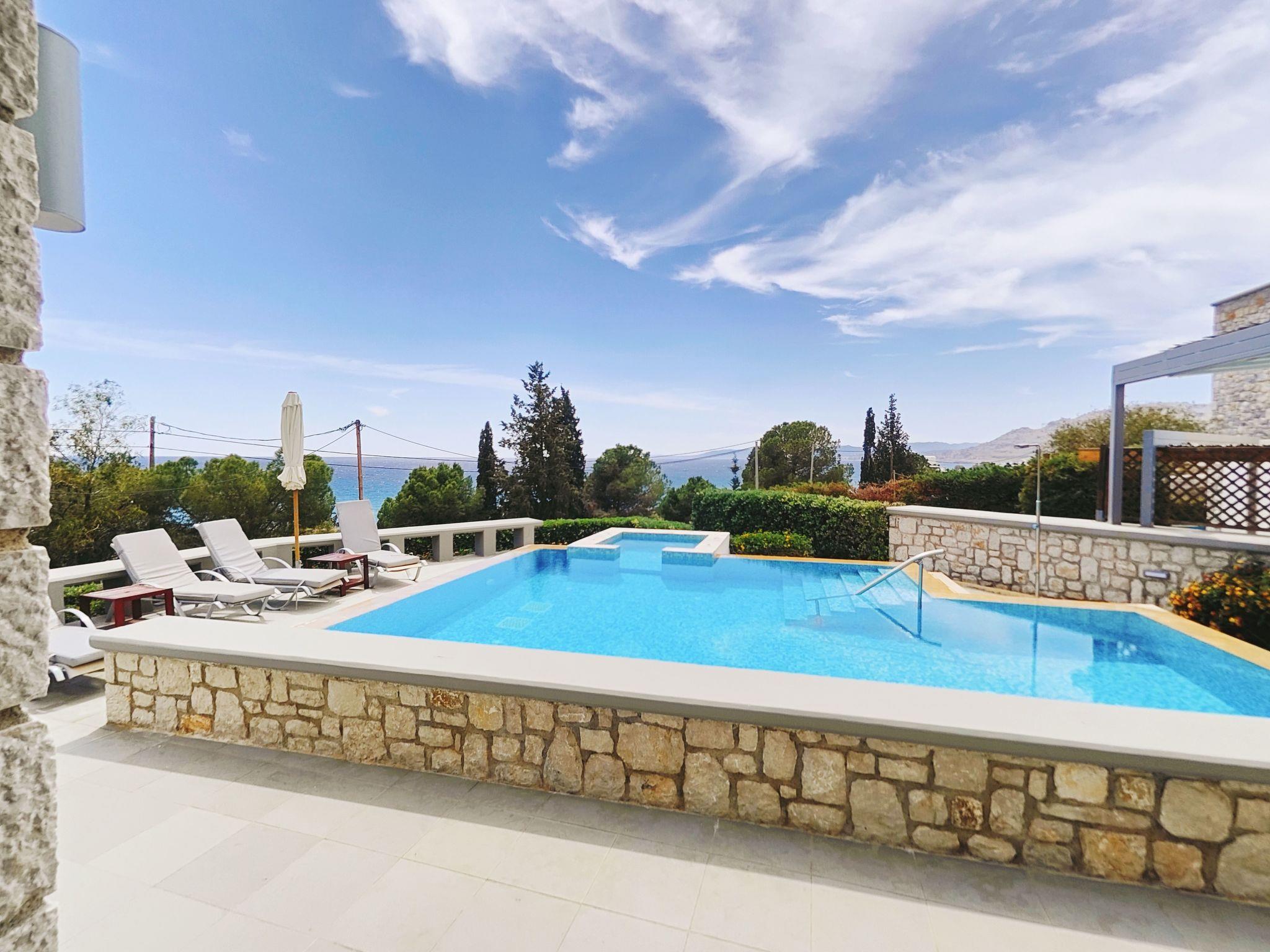 The large private pool /Jacuzzi pool is expertly maintained and there are enough sun loungers for all the guests. The pool can be accessed by steps. The pool is private and solely for the use of Villa Costa Mare guests. The barbecue area is big enough for lovely meals away from the sun. Its front side overlooks the sea while in the back side there is a beautiful mountain view. In the garden there are spots where you can hide from moments of relaxation.