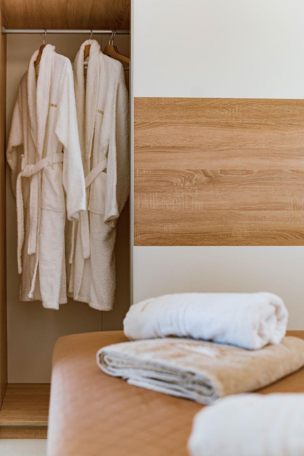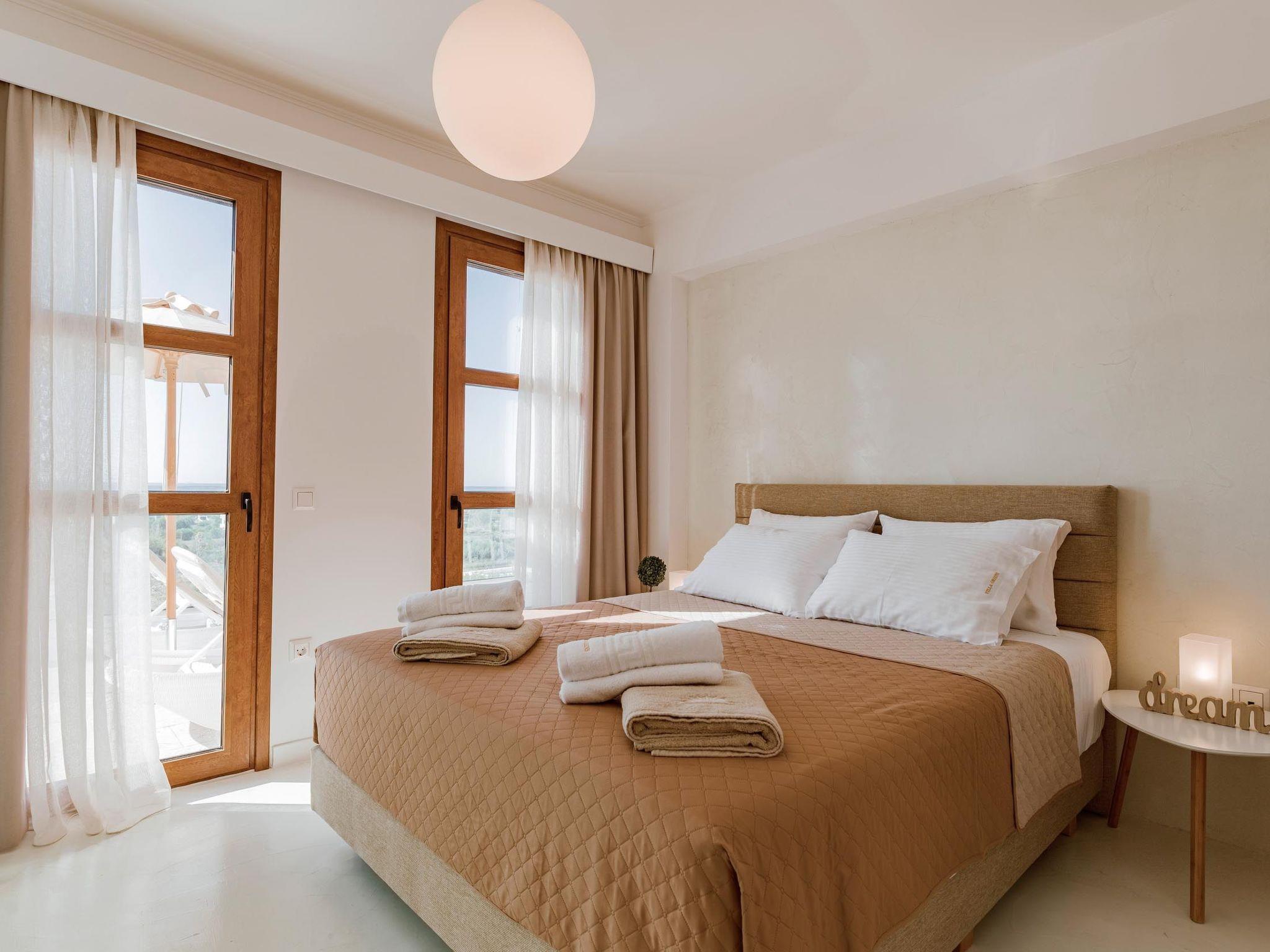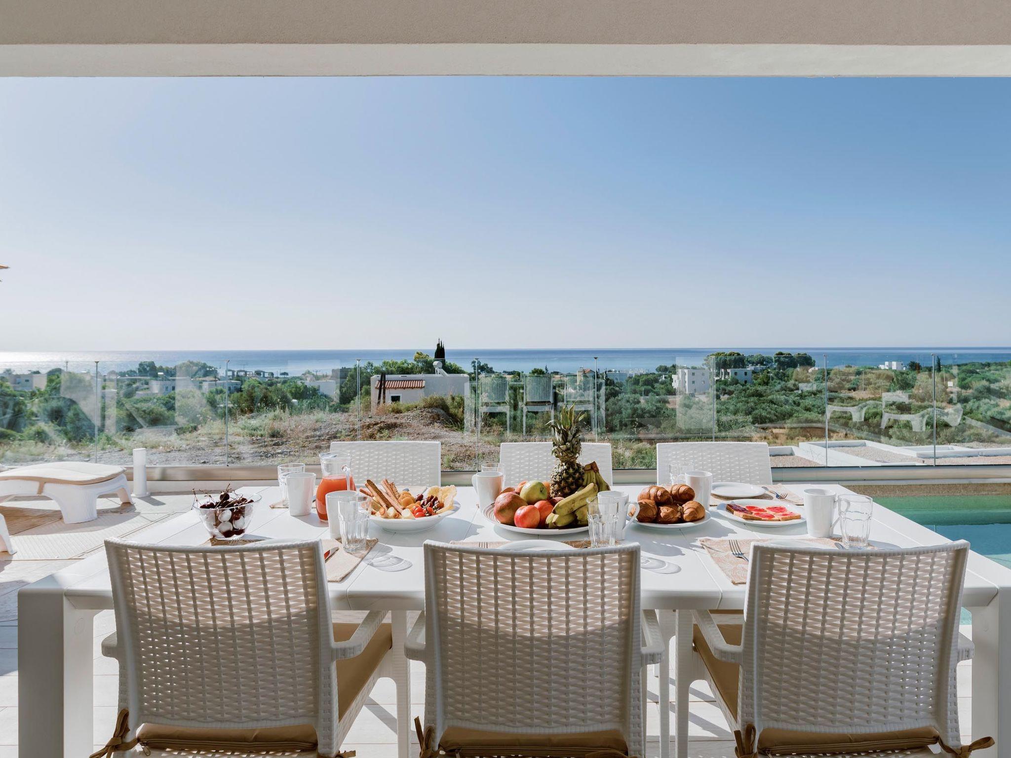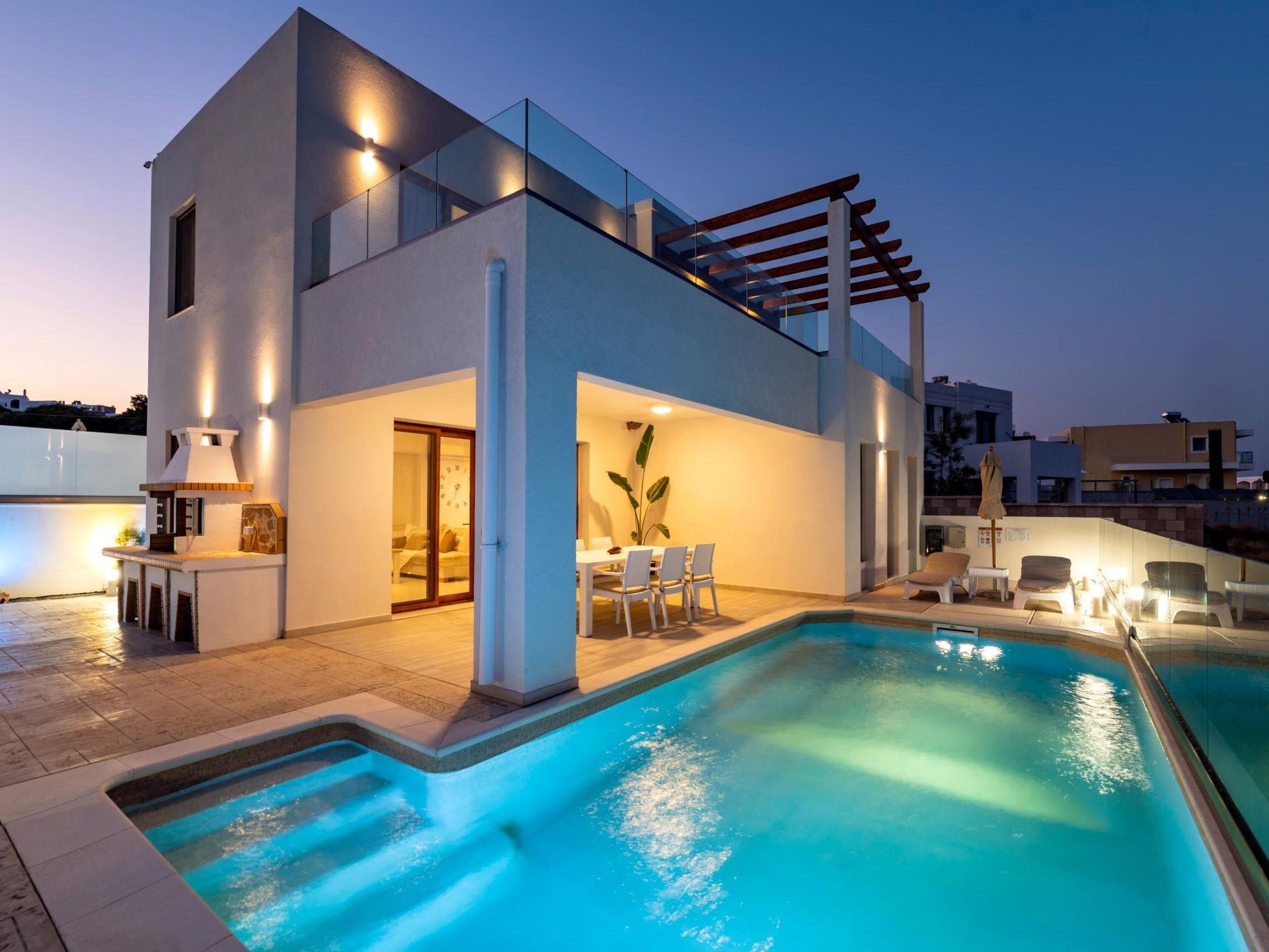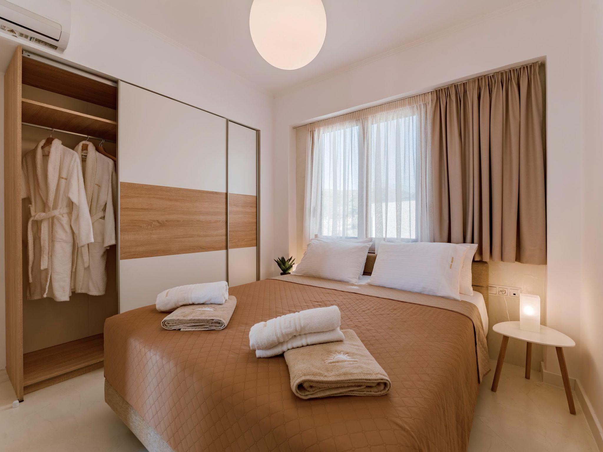 Oriens villa has 3 bedrooms, each of the modern bedrooms have a double bed. There are two bathrooms with shower; one of them is included to a bedroom. There’s an open plan kitchen, fully equipped with everything is needed for a meal preparation along with a sitting area. The living area is quite inviting with its warm colors and convenient furniture, along with its screen TV. Guests can enjoy free Wi-Fi access throughout the property. Outdoors, there’s the wonderful private swimming pool with its stylish sunbeds. Be ready to feel the ultimate relaxation while gazing the exquisite panoramic view to the beach. There are BBQ facilities with a sitting area allowing you to enjoy a gathering with your loved ones.