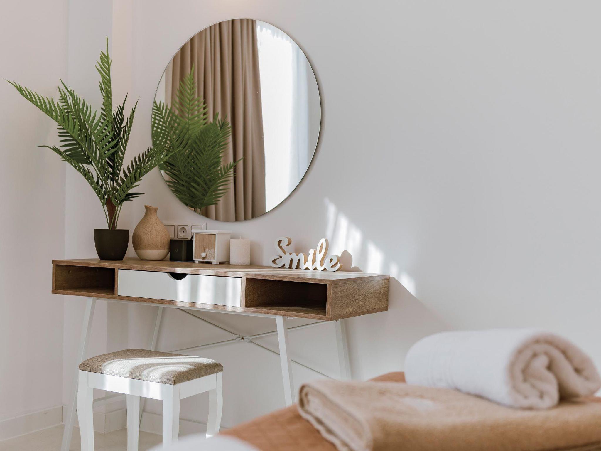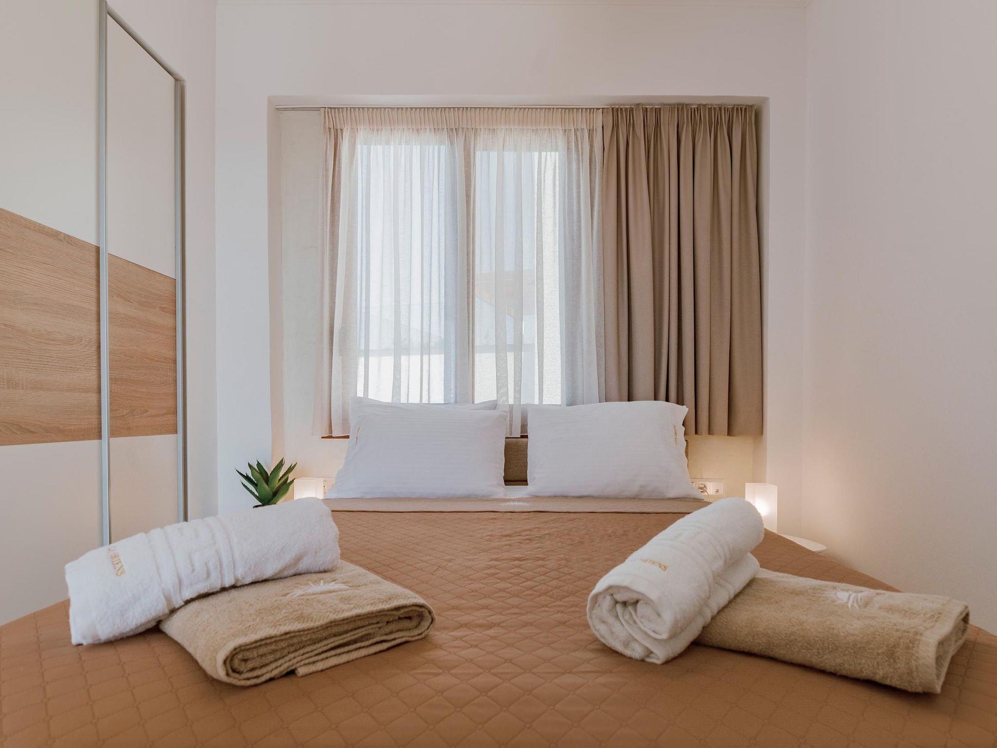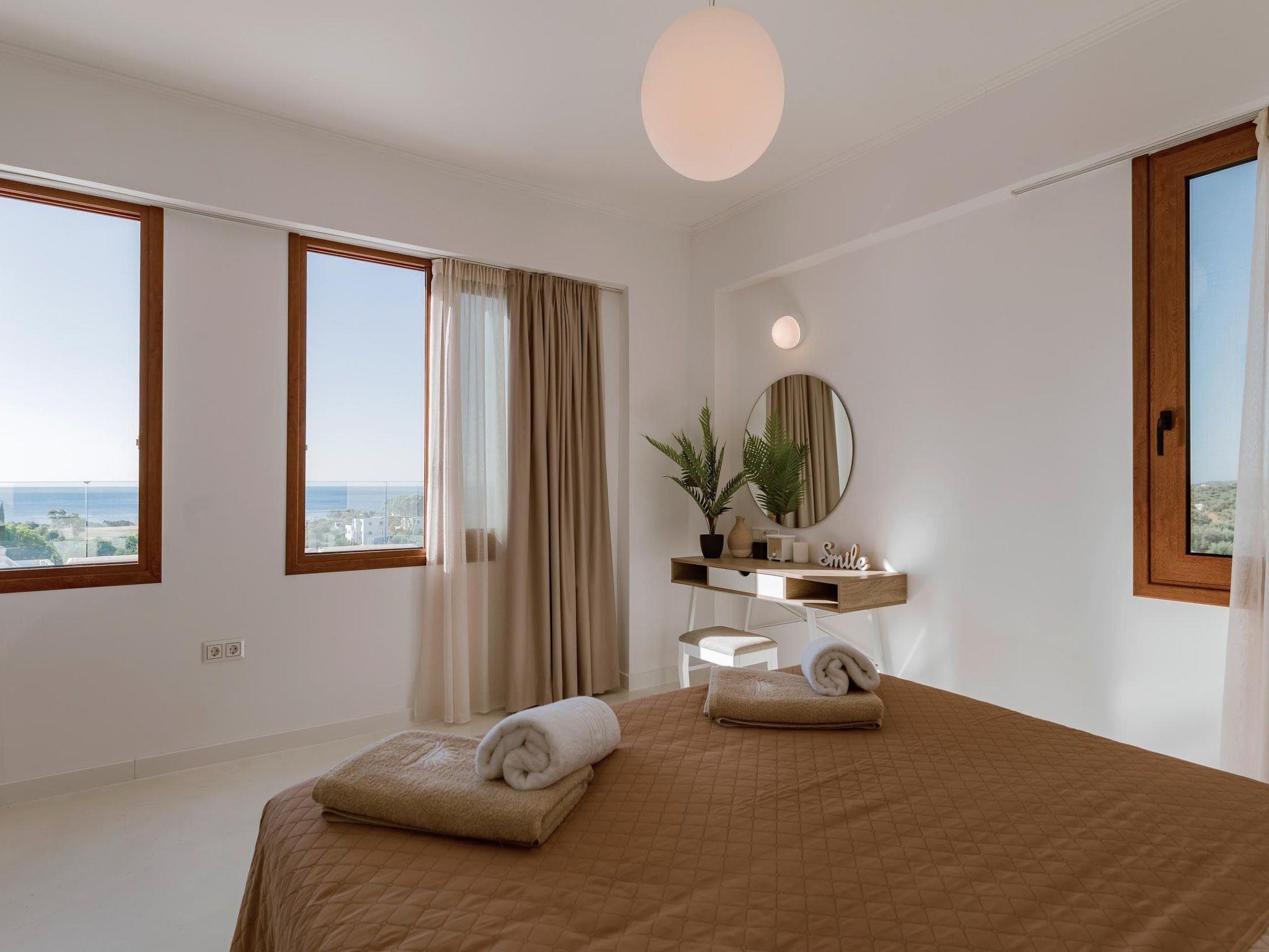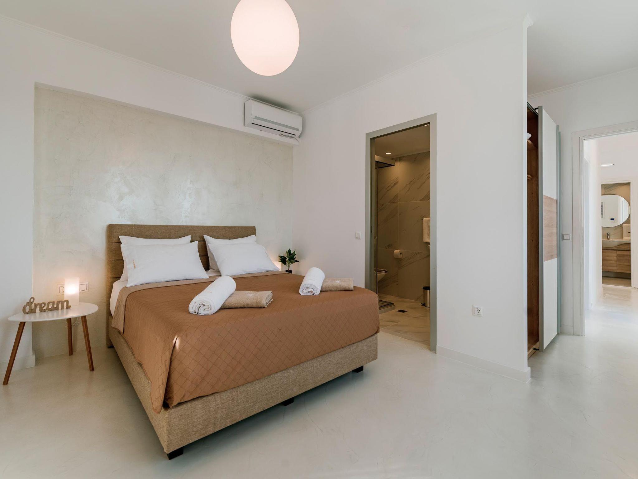 Oriens villa has 3 bedrooms, each of the modern bedrooms have a double bed. There are two bathrooms with shower; one of them is included to a bedroom. There’s an open plan kitchen, fully equipped with everything is needed for a meal preparation along with a sitting area. The living area is quite inviting with its warm colors and convenient furniture, along with its screen TV. Guests can enjoy free Wi-Fi access throughout the property. Outdoors, there’s the wonderful private swimming pool with its stylish sunbeds. Be ready to feel the ultimate relaxation while gazing the exquisite panoramic view to the beach. There are BBQ facilities with a sitting area allowing you to enjoy a gathering with your loved ones.