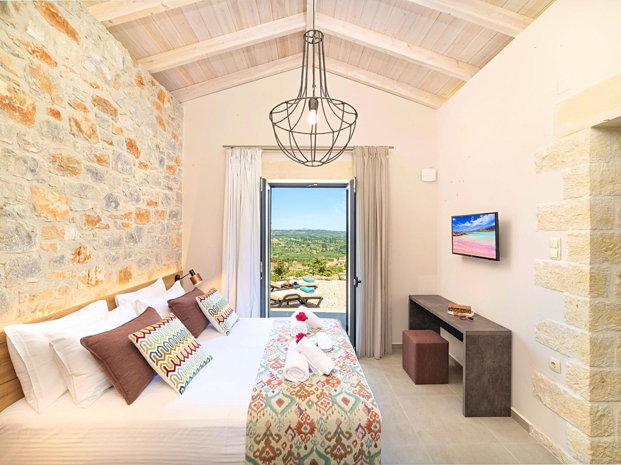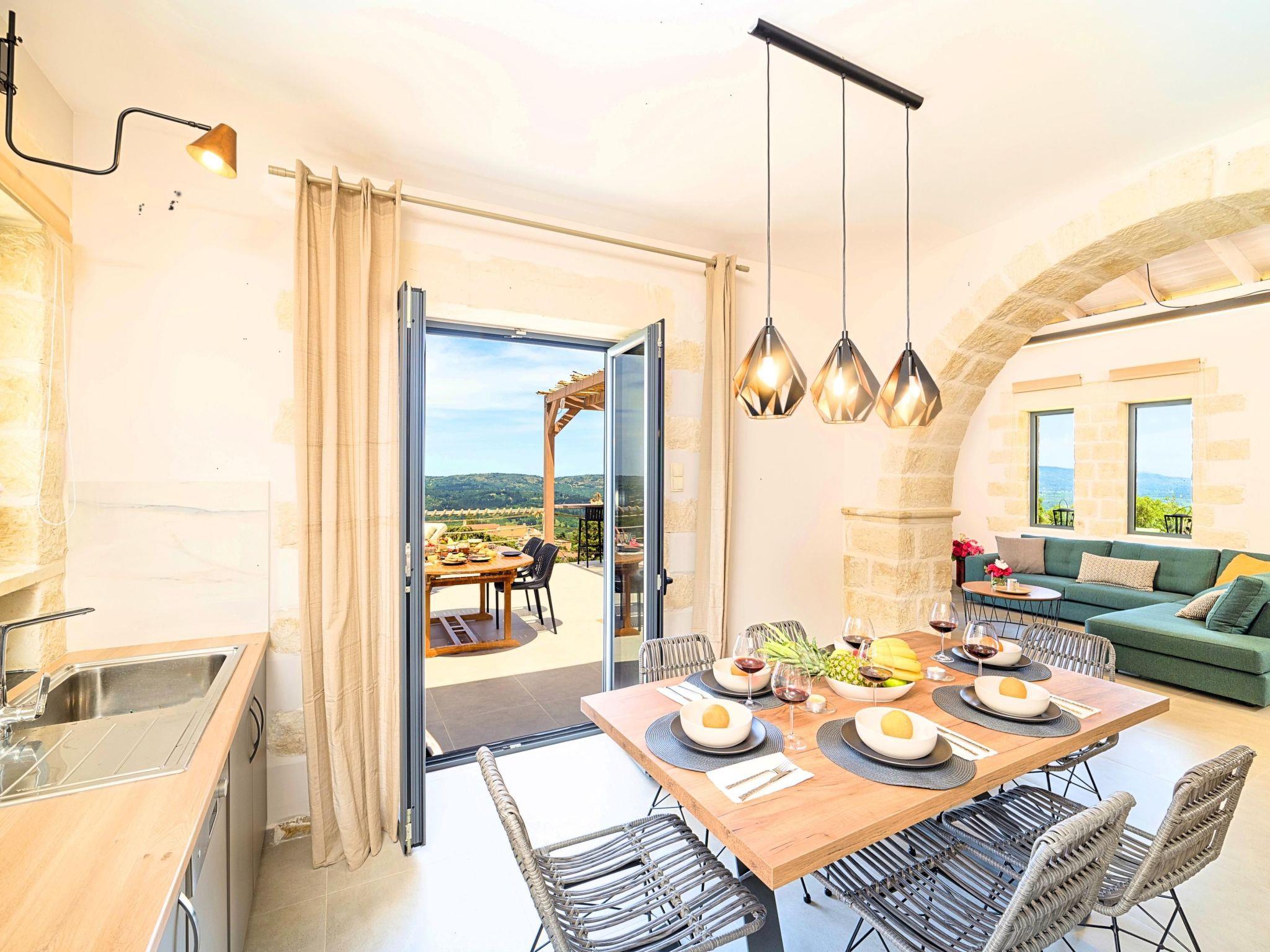 Welcome to Vardis Villa, a Cretan hidden gem! Vardis Villa surrounded by a beautiful landscape and breathtaking views. Unwind and rejuvenate in the midst of nature with a glass of wine, in one of the most exciting locations of Crete. Built at the slopes of White Mountains overlooking the old Venetian village of Vafes, with the aura of a residence that exhales fine taste, style, luxury with traditional elements and a professional standard hospitality. Our Villa is located just a 15-minute drive from the beach, restaurants bars café and shops. The enchanting city of Chania is a 30-minute drive away, while the splendid coastal town of Rethymnon is also within easy reach. Its superb location helps you to explore the beauties of Crete island. Vardis Villa offer a large living room with kitchen area, 3 bedrooms, 2 bathrooms, an outdoor swimming pool ideal for 6 + 2 guests. Our village Vafes is a semi-mountainous village of Chania at an altitude of 210 meters, 37 kilometers from Chania. The majority of the buildings dating back to the Venetian era, with vivid architectural elements. Is the only village in the prefecture of Chania that was declared by the Ministry of Culture as a historical monument due to its important history, tradition and wonderful architecture. The old buildings are made of local materials such as wood, stones and soil. In the village there are two traditional cafe and a Cretan tavern where you can taste the real Cretan cuisine with local products, as well as the hospitality of the local people.