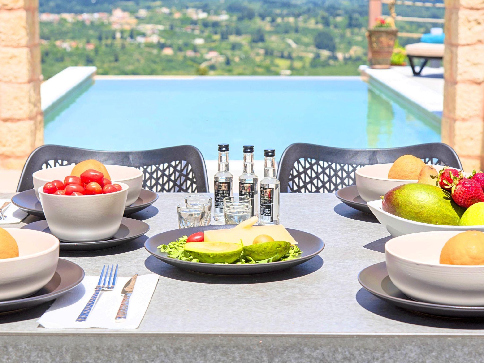 Vardis Villa has the following facilities: * A living- dining room with fireplace and direct access to the terrace and the pool area. * Kitchen with an oven, a dishwasher, a fridge, a coffee maker, tea facilities, a juicer, a toaster and a dish set * One bathroom with shower * Two bedrooms, with two twin push together single beds. * A third autonomous bedroom with two twin push together single beds, private bathroom with shower and a TV set * TV at the Living Room * Air-condition in all areas * Free WiFi internet access * Outdoor Dinning Set (table with chairs) * Washing machine * An iron and an ironing board * Safe deposit box * Hair dryer * Fine linens and towels * Toiletries * Pool towels * Baby cot * High chair * Towels / bed linen, Cleaning- Every 3 or 4 days * Private swimming pool * Sun lounge area with sun beds * Parking area * BBQ area Guests of Vardis Villa can also be provided with the following services, upon request and at extra cost: * Car rental service * Transfer service * Travel services * Diving lessons * Water sports * Yacht cruises