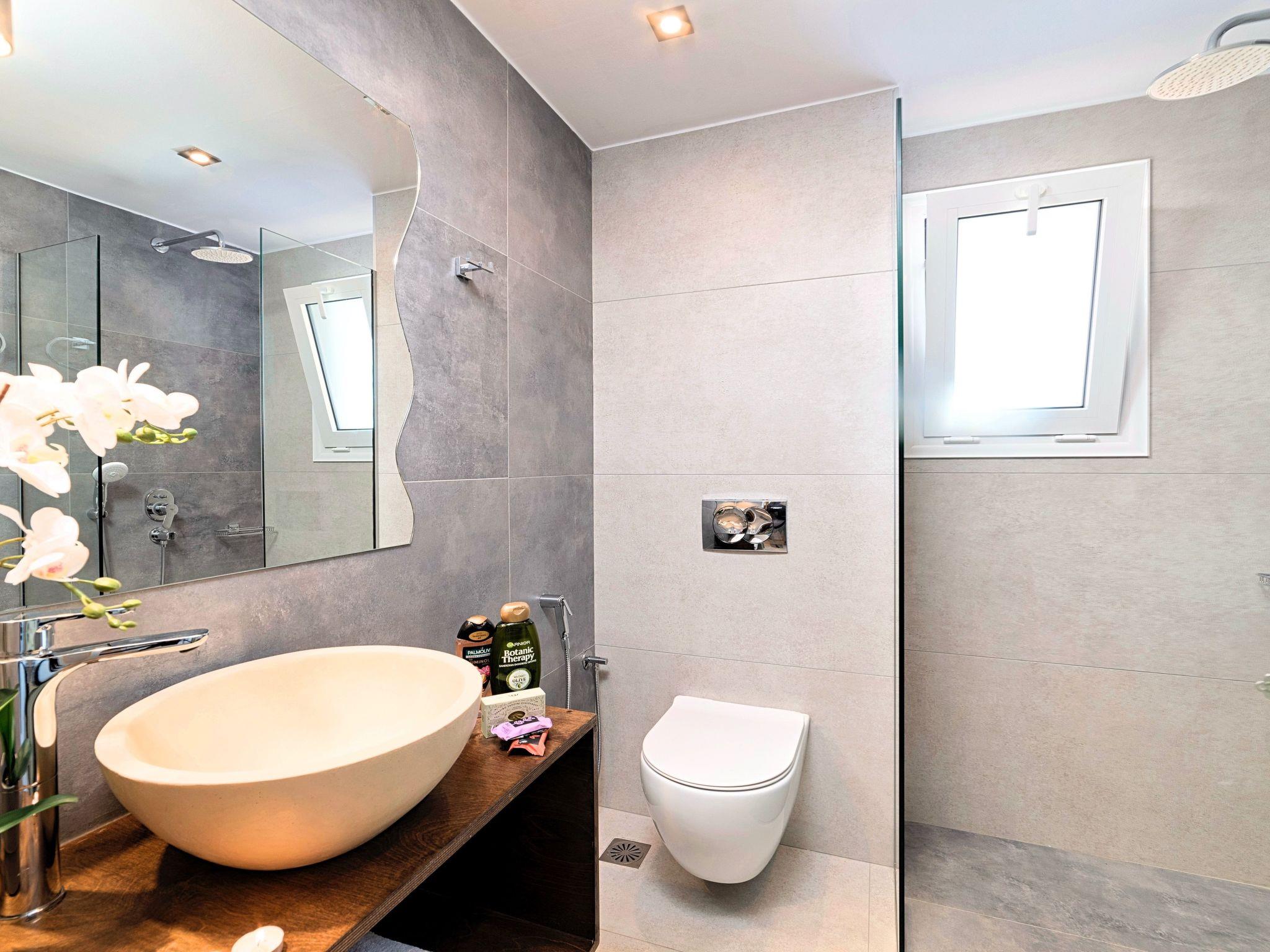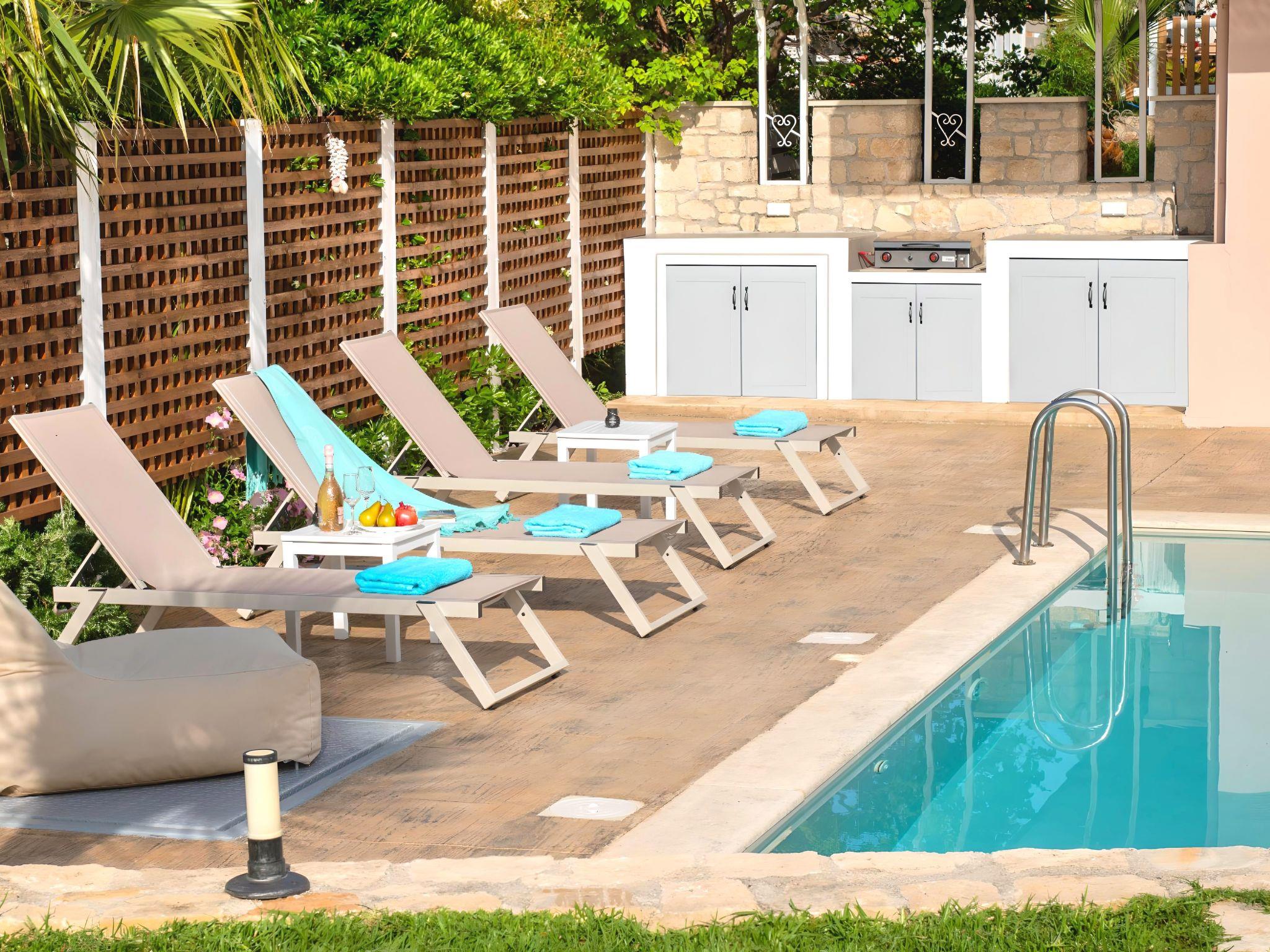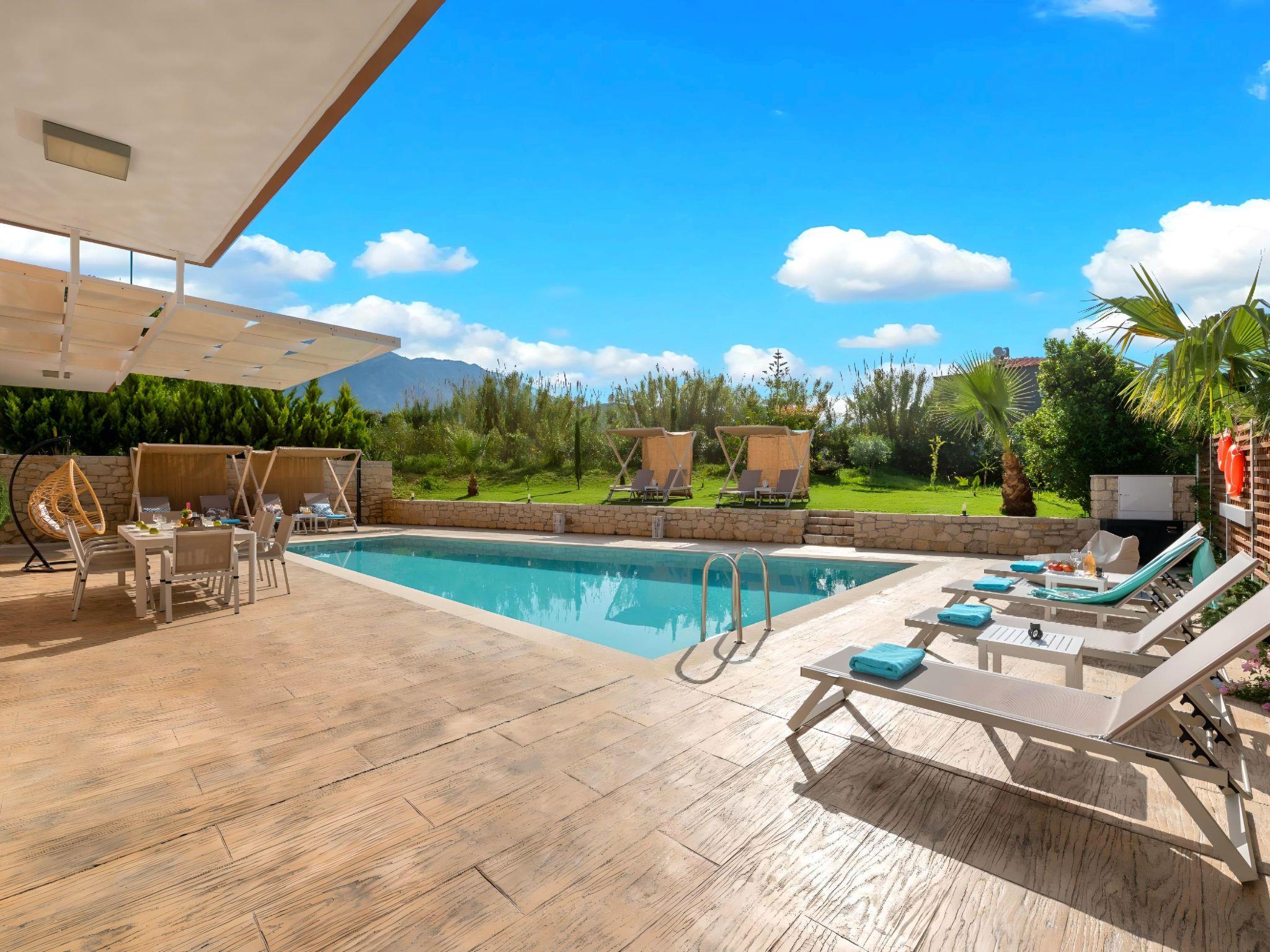 The outdoor pool is heated and can reach 6 to 8 degrees more that the 24 h average air temperature with maximum value of 29°C.?You can easily walk to tavernas, cafes, shops, supermarkets and of course the long sandy Kavros Beach. Eveything you might need during your stay is within 400 meters walking distance from the villa.