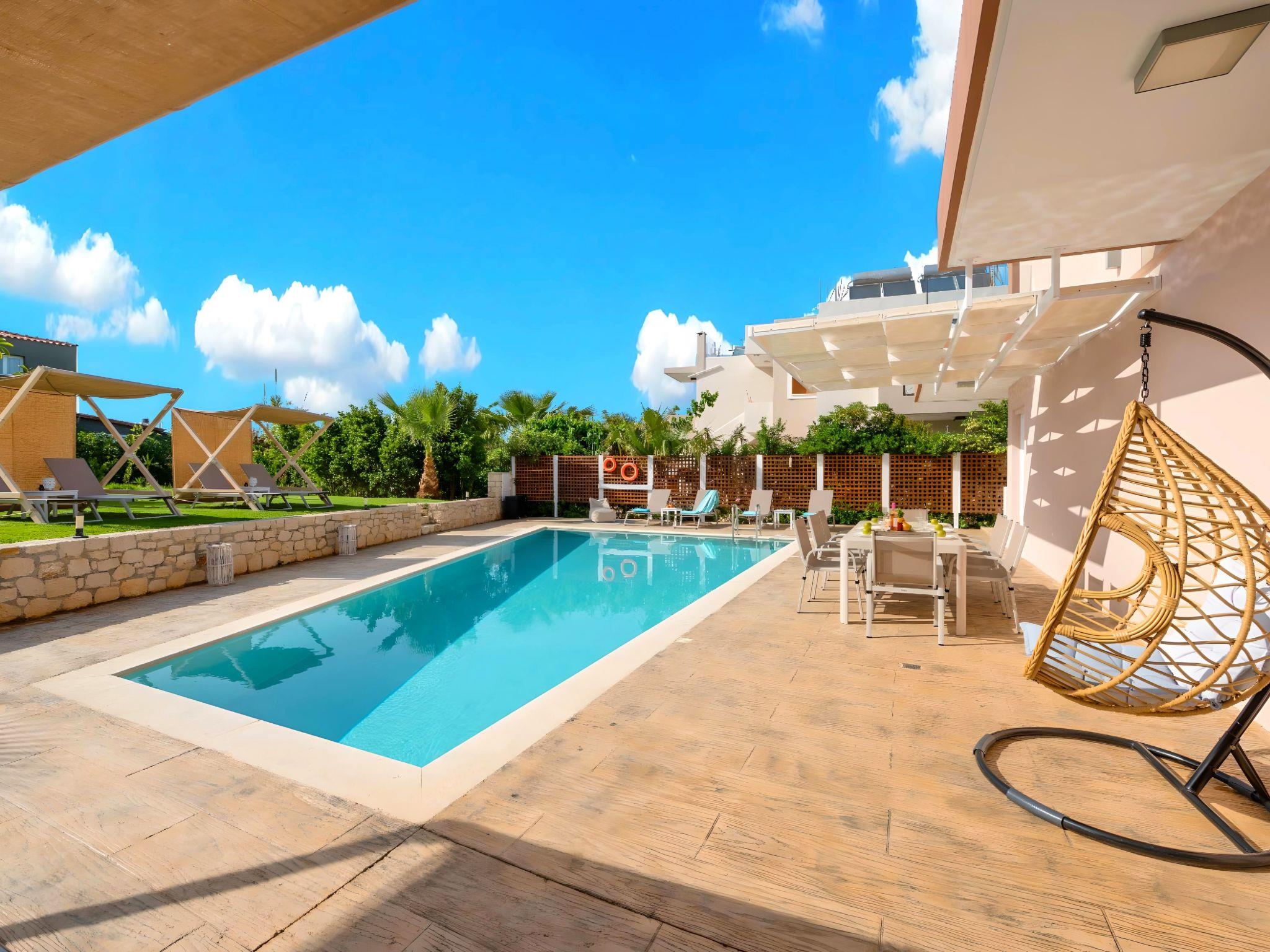 Just few meters away from the famous sandy beach of Kavros, Allas Villa creates the perfect holiday retreat for families or friends. Flooded with light, the 180-sq.m of living space has a bright contemporary feel. Outdoors, guests can dine on a charming garden, unwind in the private heated pool, having BBQ at Villas charming BBQ corner.Indoors, guests can lounge in the spacious living rooms or cook in the fully equipped kitchens. Enjoy the timeless Cretan setting and refined accommodation with each room mirroring your relaxing nest.In an ideal location, just two minutes from Kavros sandy beach and few minutes’ drive Kournas Lake. Both Chania city and Rethymnon Town are in very close proximity.In Allas Villa our aim is to offer you memorable vacations and the best possible accommodation.Allas Villa can accommodate up to 14 guests in two separate fully equipped apartments, easily accessible by disabled people .