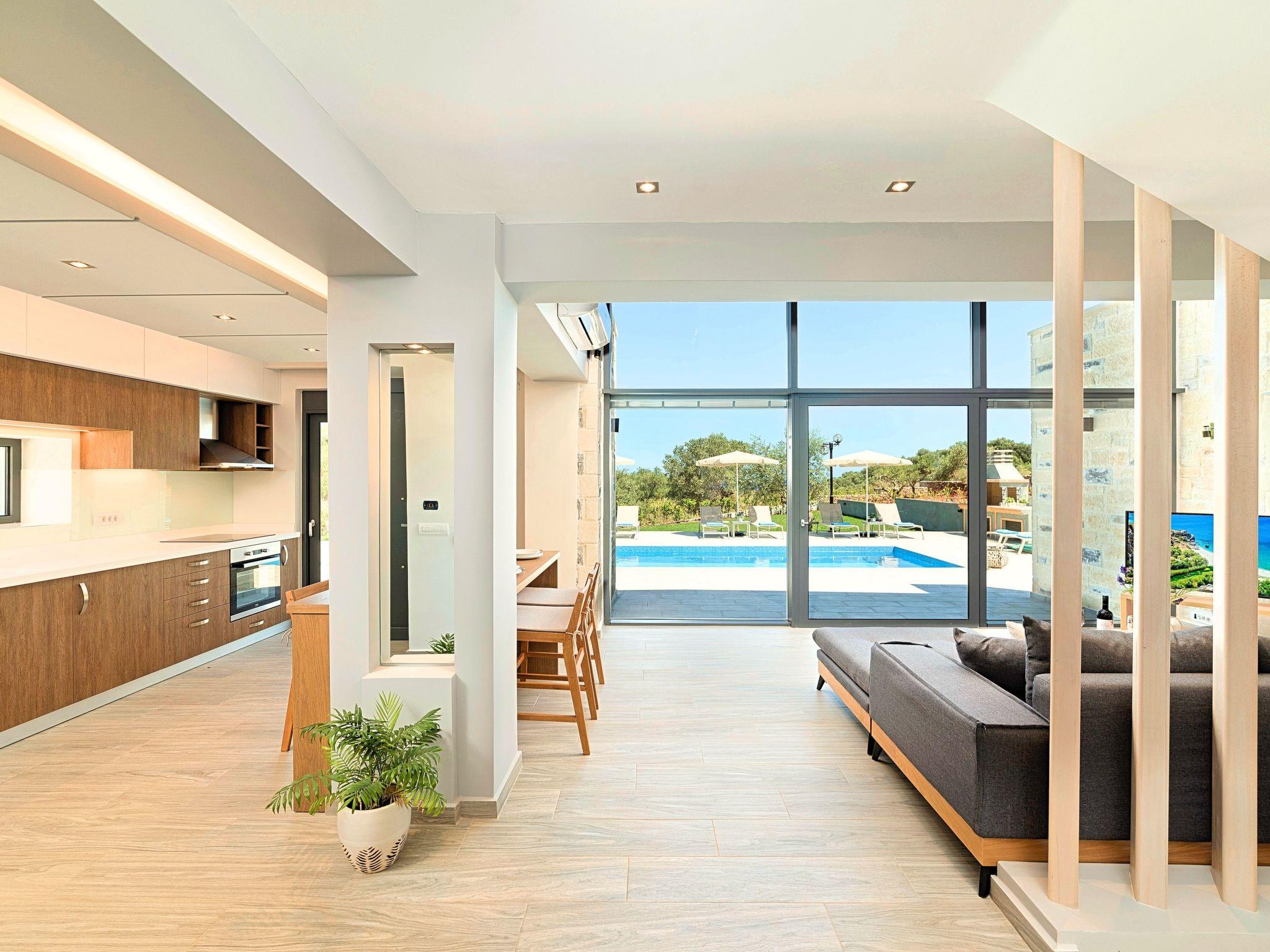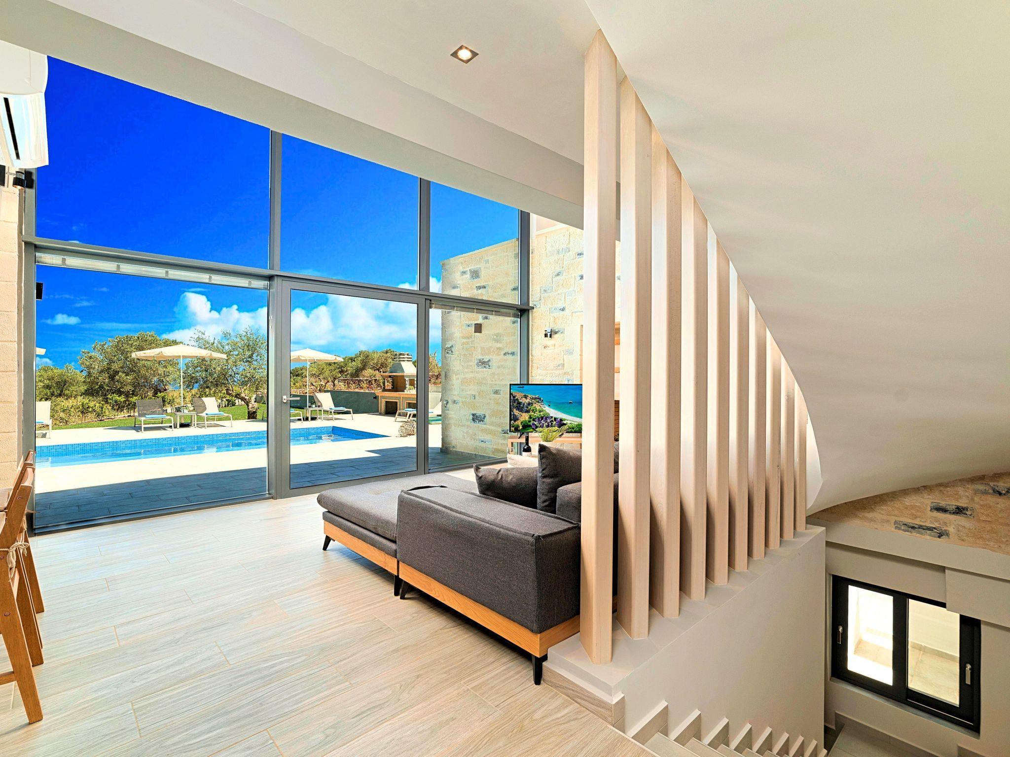 Nuzzled in an olive grove, above the sandy beach of Georgioupolis in Crete, Moon Light Villas captures the essence of relaxing and comfort living. Villa’s complex is built amphitheatrically with amazing sea views. These elegant Villas evokes the island’s Mediterranean spirit and cosmopolitan charm in its elegant environs while ensuring a holiday beyond comparison. Surrender to the temptations of refinement at one of the most enchanting Cretan Villas and take in the splendid panoramic views to the emerald Cretan Sea. Find your peace and quiet and unwind in a haven of bliss and tranquility.Hide away in the calm of summer and elevate your senses at one of the most remarkable Villas with private pool. Moonlight Grand Villa is a complex of 3 private units with 3 private pools. Each One of Three Villas can accommodate up to 15 guests ( 10 in the bedrooms) and 5 more at the sofas in bedrooms or at the lower level living room. The max occupancy of this listing is 45 people.