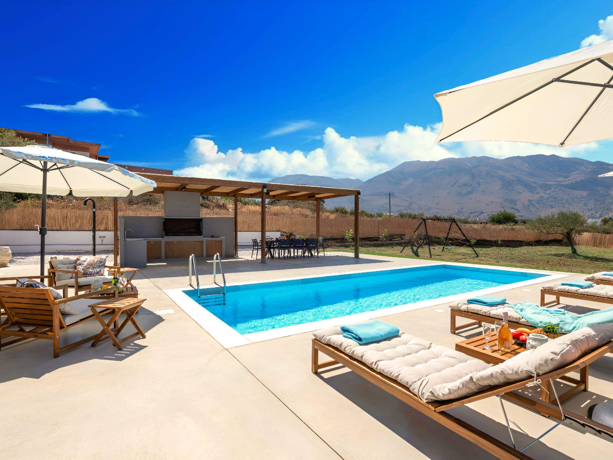 Welcome to this serene holiday house nestled in the picturesque Paralia Kourna, Crete, designed for comfort and relaxation for up to 8 guests. This detached house stands as a perfect retreat for families or a group of friends seeking a peaceful getaway, surrounded by the natural beauty of Crete’s mountains and mere steps from the alluring waters.