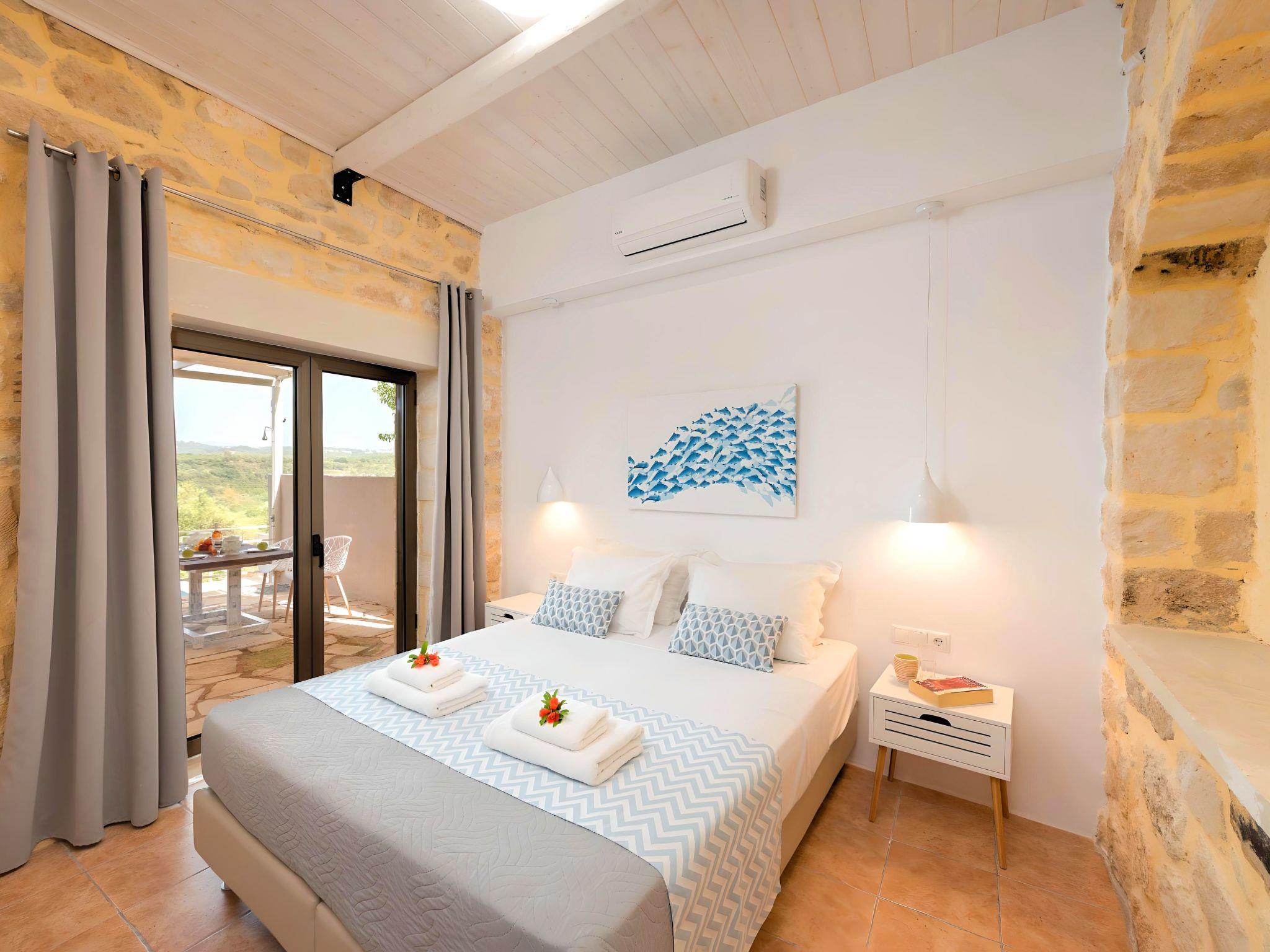 Welcome If the beauty was a location, it would be the island of Crete. If the relaxation and rejuvenation were accommodation, it would be the Cretan Sunrise Lodge. Built on one of the most green and quiet spots of Crete island, about 40km from Chania and 18km from Rethymnon. Cretan Breeze Villa is the ideal base for discovering all the elements that make Crete a top destination. With scenic views, it is just a few minutes' walk from the most famous long sandy beach of Georgioupolis-Episkopi with the crystal-clear waters and Kournas lake. The experience of staying at Cretan Breeze Villa consists of a special game that captures the senses. Here you are not to enjoy TV or browsing your laptop but the view over the olive groves. The luxury here is not in technology and the fancy materials, but the reactivation of the senses that have been diminished by the modern rhythms of life. Here, the meaning lies in the singing of the birds and the heady aromas of the herbs that grow in every corner of the island. Facilities & Services Cretan Breeze Villa is the ideal choice for those who seek moments of absolute relaxation and tranquility. Start your day enjoying a rich breakfast made with the finest Cretan ingredients before heading out to some of the beaches of the island. In the afternoons, relax on the terraces while enjoying your drink or a snack and gazing at the endless green of the olive groves at the background of Dramia Village. We firmly believe that the greatest satisfaction lies in the simplest things. We invite you to live the experience of staying at Cretan Breeze Villa and we are sure that when it is completed, you will agree with us. Cretan Breeze Villa offer the following facilities: * HEATED Private Swimming Pool * A living room with two large sofa beds and TV. * Kitchen with an oven, a fridge, a coffee maker, tea facilities, a juicer, a toaster and a dining area * A bathroom *Two bedrooms with a queen size double bed each. * Two spacious terraces both with tables and chairs * Air-condition in all areas * Free WiFi internet access * An iron and an ironing board * Hair dryer * Fine linens and towels * Toiletries * Sun beds * Baby cot * High chair * Towels / bed linen, Cleaning- Every 3 or 4 days * Free Parking area * Portable BBQ Guests of Cretan Sunrise Lodge can also be provided with the following services, upon request and at extra cost: * Car rental service * Transfer service * Travel services * Massage sessions * Diving lessons * Climbing lessons * Water sports * Yacht cruises