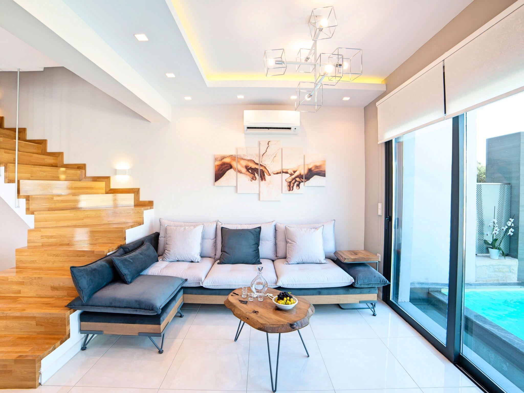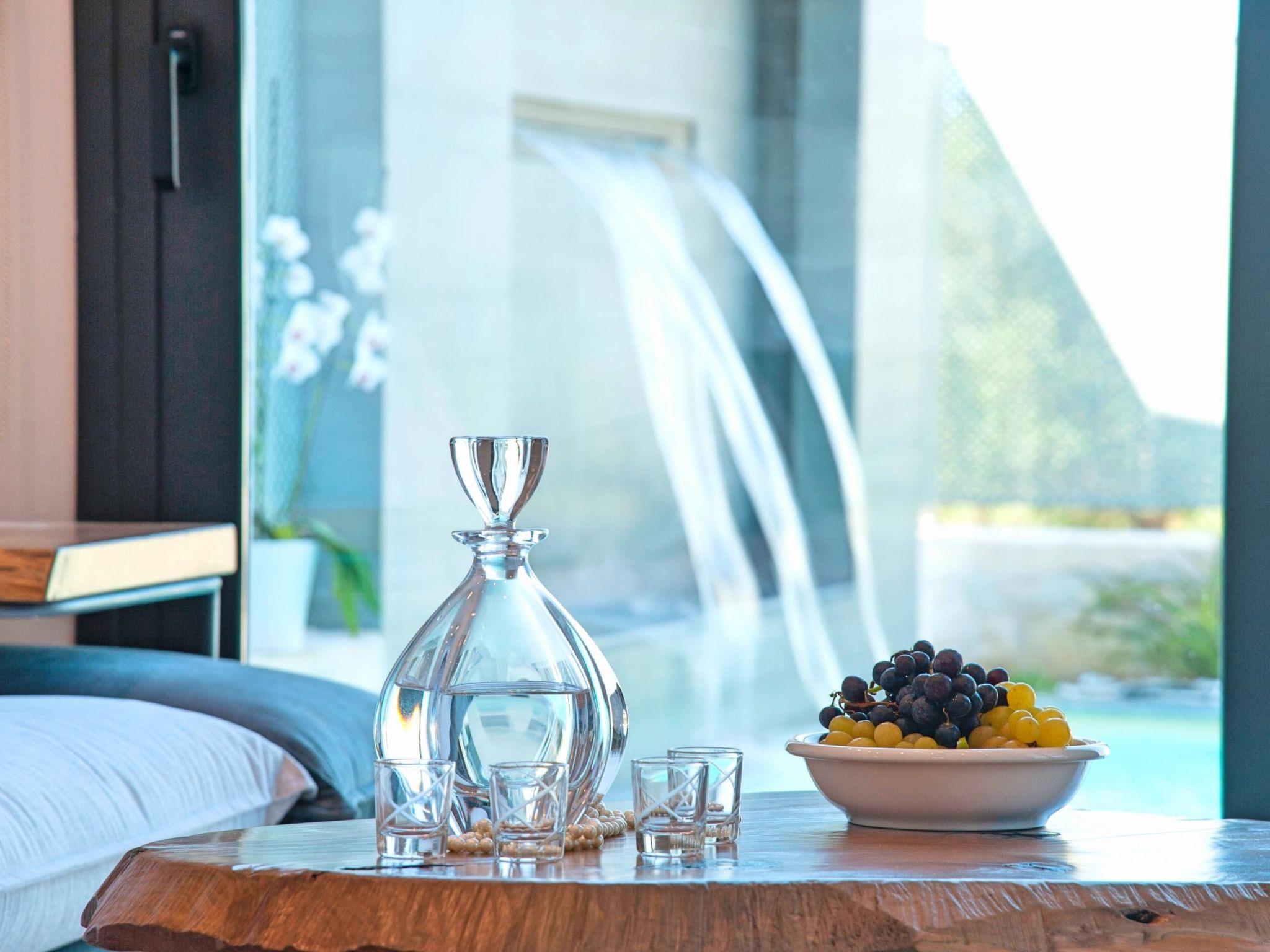 The Perla Villa is the ultimate experience, bringing together authentic design and contemporary touches. Utmost privacy, enriched facilities and a waterfall private pool complete the most unforgettable getaway and offer an open plan living area with floating sun beds, BBQ and dining area. Indoors, the upper floor features two spacious bedrooms one with queen size -size beds plus a second bedroom with twin beds push together and a stylish bathroom with shower. A modern, fully equipped kitchen with dining area lies at the lower level, combined with a luxurious bathroom and an adjoining living room area with corner sofa and all that with direct access to the pool. Perla Villas are ideal for families, a group of families or a group of friends. Enjoy your vacations with your parents or with the rest of your family members while at the same time preserving your privacy just like at your own home. Perla Nera Villa Facilities Ground floor 50sqm * A living room with a large Corner Sofa (can accommodate up to two quests) and direct access to the terrace and the pool area. * A fully equipped Kitchen with an oven, microwave dishwasher, a fridge, a coffee maker, tea facilities, a toaster and a kettle. * A large bathroom with shower. Upper Floor 50sqm * A bedroom with a queen-size double bed. * A second bedroom with two twin push together beds. * A bathroom with shower. * TV at the living room. * Air-conditioning in all areas. * Free WiFi internet access. * Outdoor dining set (table with chairs). * Washing machine. * Iron and ironing board. * Safe deposit box. * Hair dryer. * Linen and towels. * Toiletries. * Swimming pool towels. * Baby cot. * High chair for children. * Towels and bed linen changed and cleaned every 3 or 4 days. * Private parking area. * Direct access to the swimming pool area. * Private Swimming pool 20sqm * Jacuzzi in the pool for 2 quests * Waterfall for neck hydromassage * Sun lounge area with sun beds under a pergola. * BBQ with dining/siting area. * Plot 300sqm Perla Nera Villa can accommodate up to 6 guests. Guests of Perla Nera Villa can also be provided with the following services, upon request and at extra cost: * Daily cleaning. * Daily linen and towel change. * Daily swimming pool cleaning. * Car rental service. * Transfer service. * Travel services. * Massage sessions. * Daily delivery of groceries. * Diving lessons. * Climbing lessons. * Water sports. * Yacht cruises. * Babysitting.