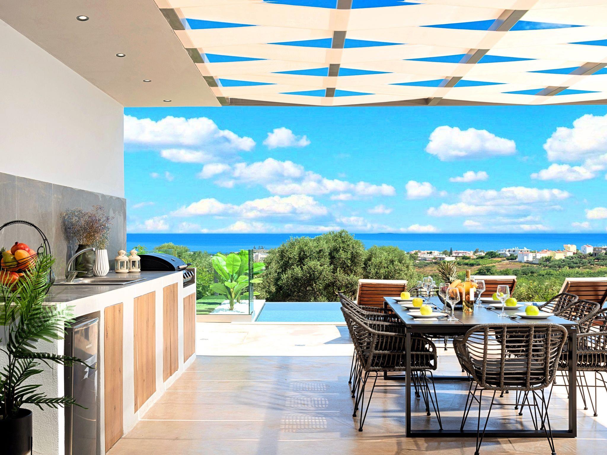 Welcome to a modern Villa with hotel facilities next to the Longest sandy beach of Georgioupolis. Inspired by the amber light of the sun rising above the Villa. We created a holiday treat for all your senses. The comfort, the unique allure of the landscape, the privacy, the tastes, wonderful sunsets are just some of the elements that will make your holidays in Crete utterly beautiful and unforgettable.