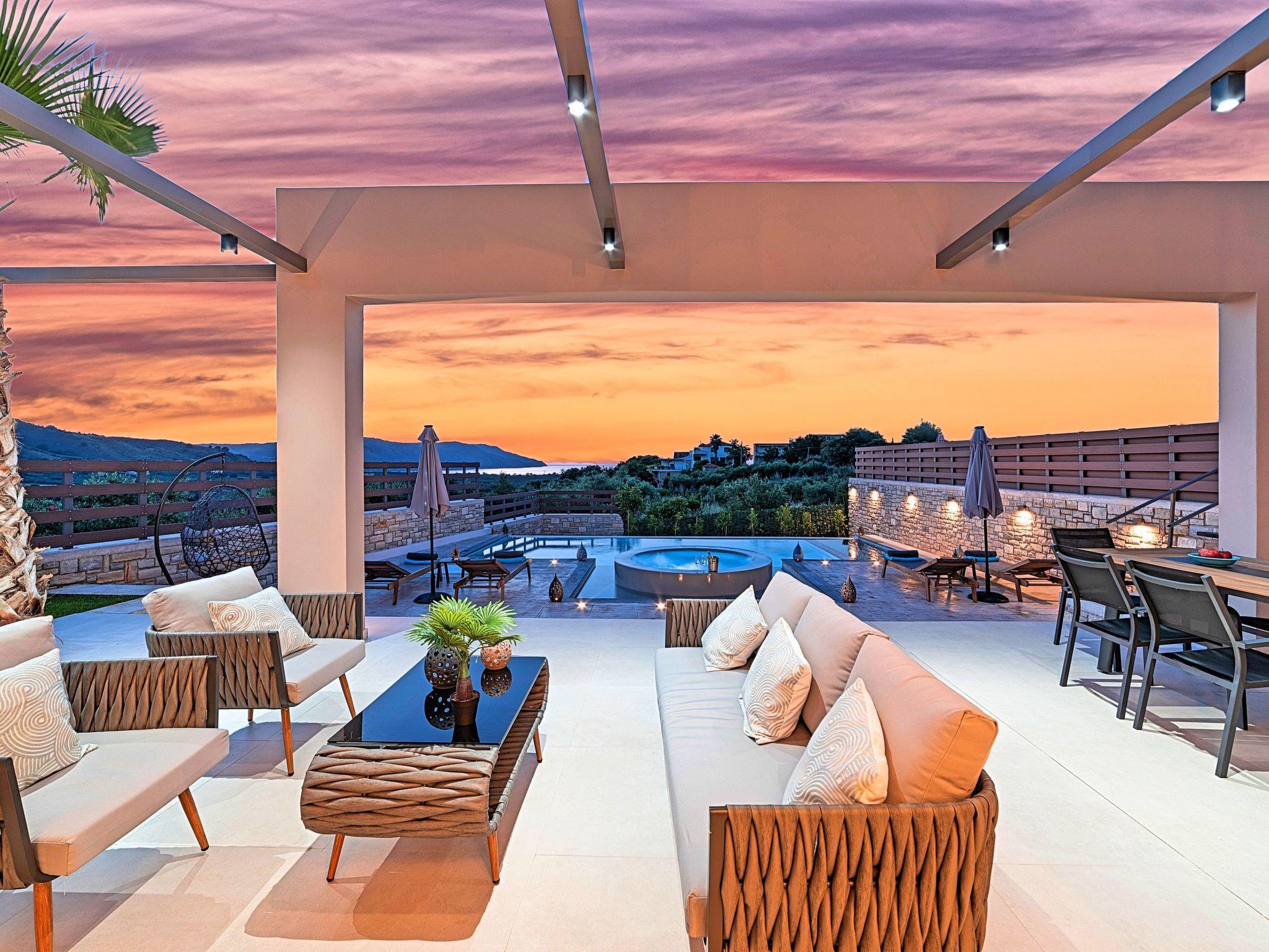 * Private parking area. * Direct access to the swimming pool area. * Private Heated Swimming pool with children/jacuzzi section. The outdoor pool is heated and can reach 6 to 8 degrees more that the 24 h average air temperature with maximum value of 29°C * Swimming Pool cleaning twice per week * Sun lounge area with sun beds and umbrellas. * BBQ next to the swimming pool. The villa can accommodate up to ten guests.