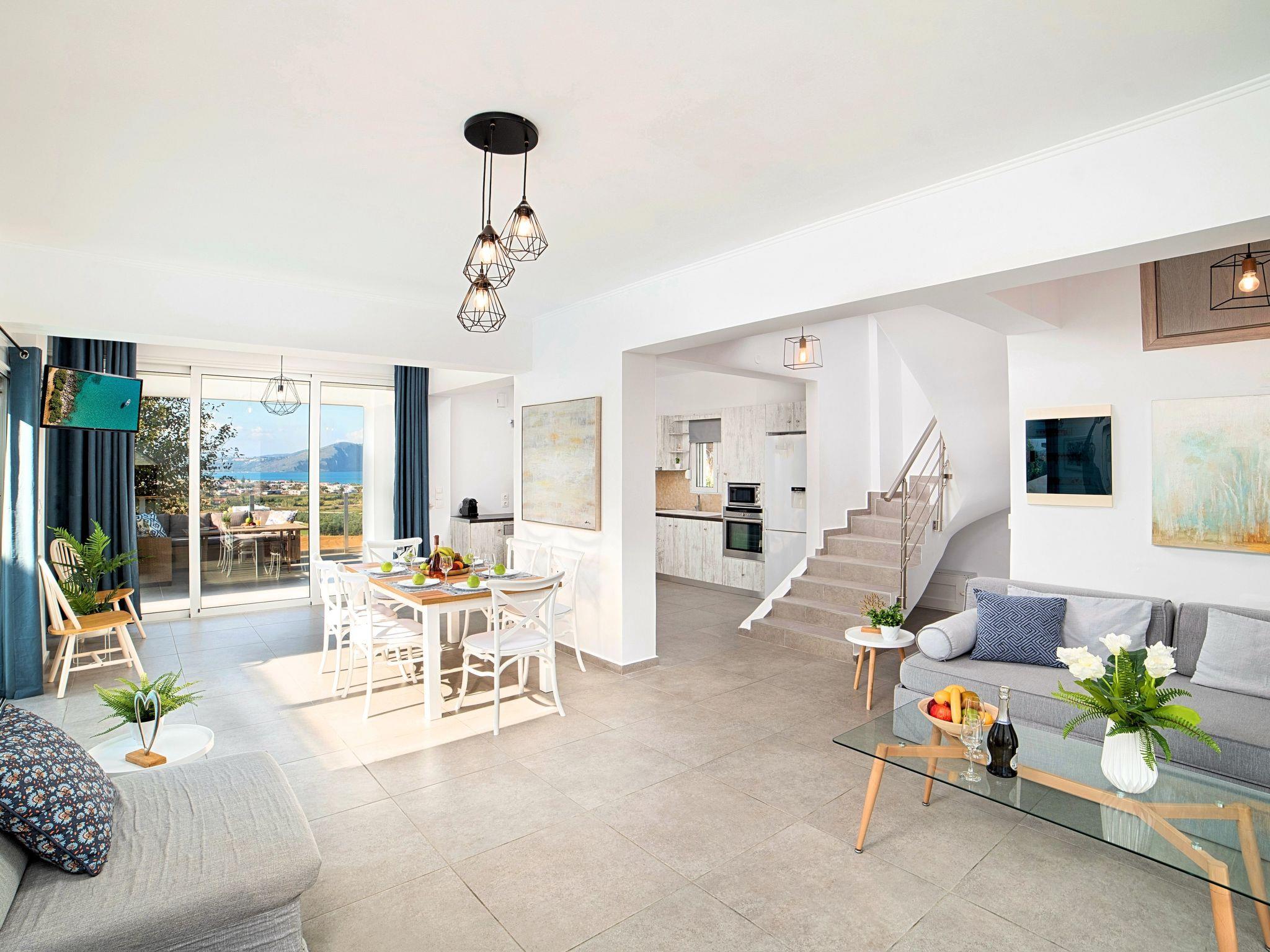 Cretan Sunset Villa offer the following facilities:Ground Floor* A living room with a large sofa bed and two armchairs/beds.Our living room can accommodate up to 4 guests.* A fully equipped Kitchen with an oven, a fridge, a microwave, dish washer, washing machine, tumble dryer, a coffee maker, tea facilities and a juicer.* A dining area with a TV set* A large bathroom with shower.* Two spacious terraces both with dining areas, sunbeds and umbrellas and outdoor shower.* A big BBQ* A heated swimming pool.Upper floor* A bathroom*Three bedrooms, each one with a balcony. Two out of three bedrooms offer two twin beds pushed together.The third bedroom offer two single beds.* Air-condition in all areas* Free WiFi internet access* An iron and an ironing board* Hair dryer* Fine linens and towels* Toiletries* Safe box* Sun beds* Baby cot* High chair* Towels / bed linen, Cleaning- Every 3 or 4 days * Free Parking area * BBQCretan Sunset Villa offer the following facilities:Ground Floor* A living room with a large sofa bed and two armchairs/beds.Our living room can accommodate up to 4 guests.* A fully equipped Kitchen with an oven, a fridge, a microwave, dish washer, washing machine, tumble dryer, a coffee maker, tea facilities and a juicer.* A dining area with a TV set* A large bathroom with shower.* Two spacious terraces both with dining areas, sunbeds and umbrellas and outdoor shower.* A big BBQ* A heated swimming pool.Upper floor* A bathroom*Three bedrooms, each one with a balcony. Two out of three bedrooms offer two twin beds pushed together.The third bedroom offer two single beds.* Air-condition in all areas* Free WiFi internet access* An iron and an ironing board* Hair dryer* Fine linens and towels* Toiletries* Safe box* Sun beds* Baby cot* High chair* Towels / bed linen, Cleaning- Every 3 or 4 days * Free Parking area * BBQ