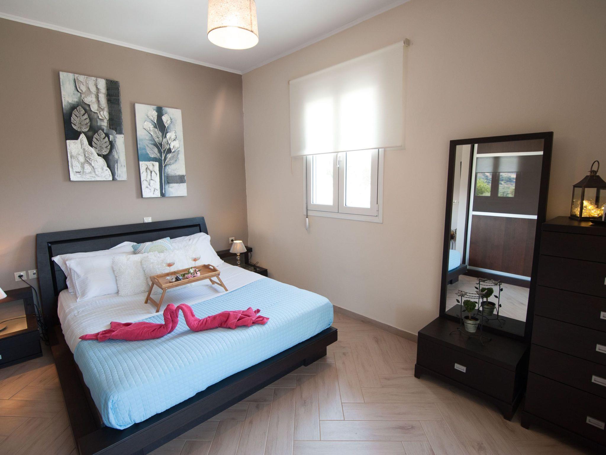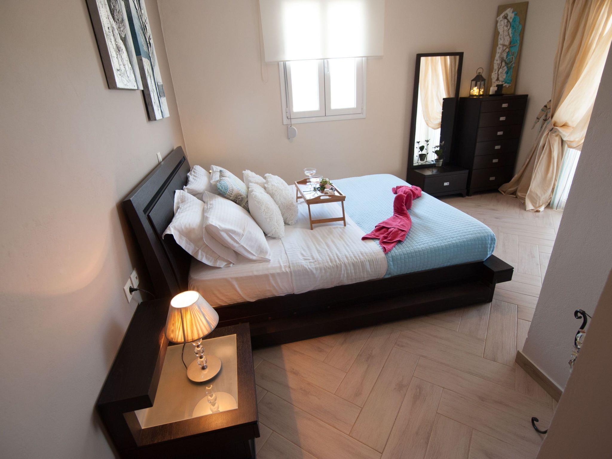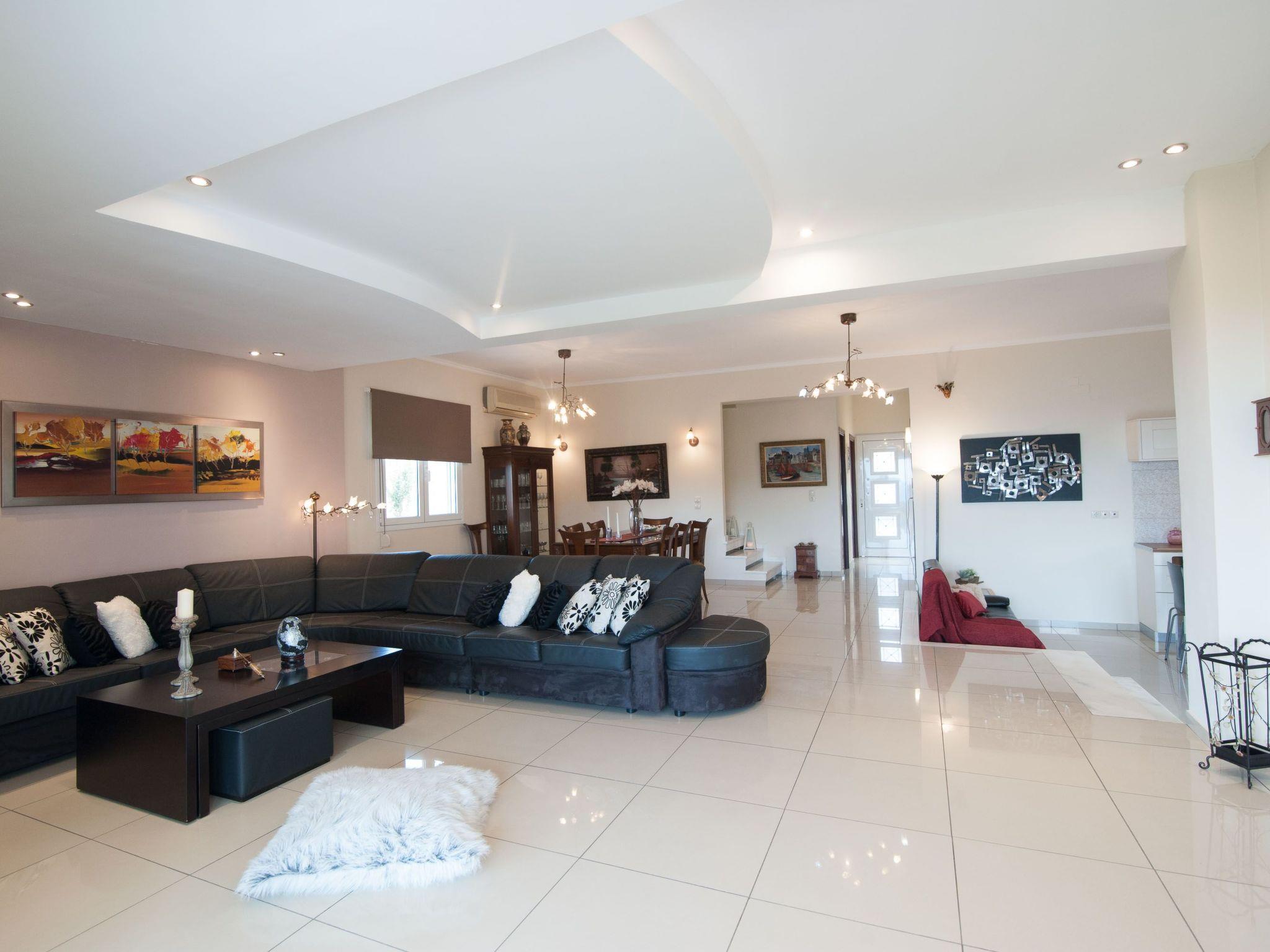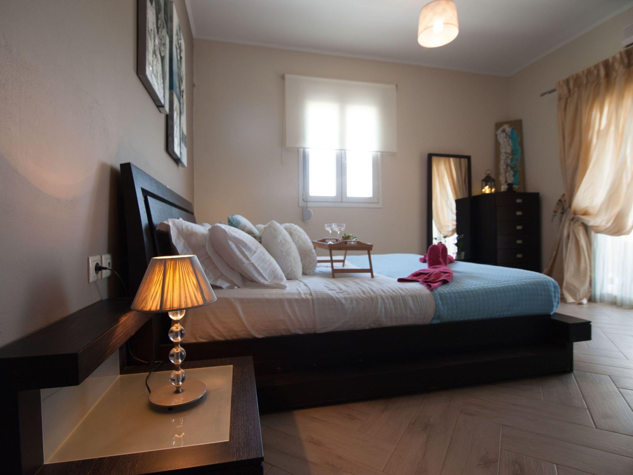 The villa offers 4 bedrooms in an elegant style, fully equipped and can accommodate 8-10 people. Each room has its own balcony overlooking the Cretan Sea and the mountains. It also offers 3 bathrooms (1 with bathtub and 2 with hydromassage cabins). They are equipped with a washing machine, hairdryer and towels.