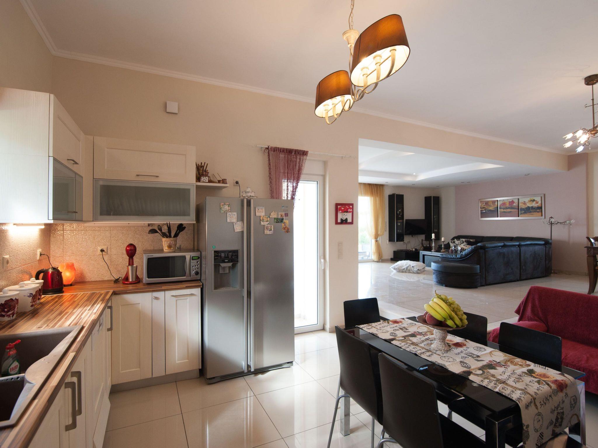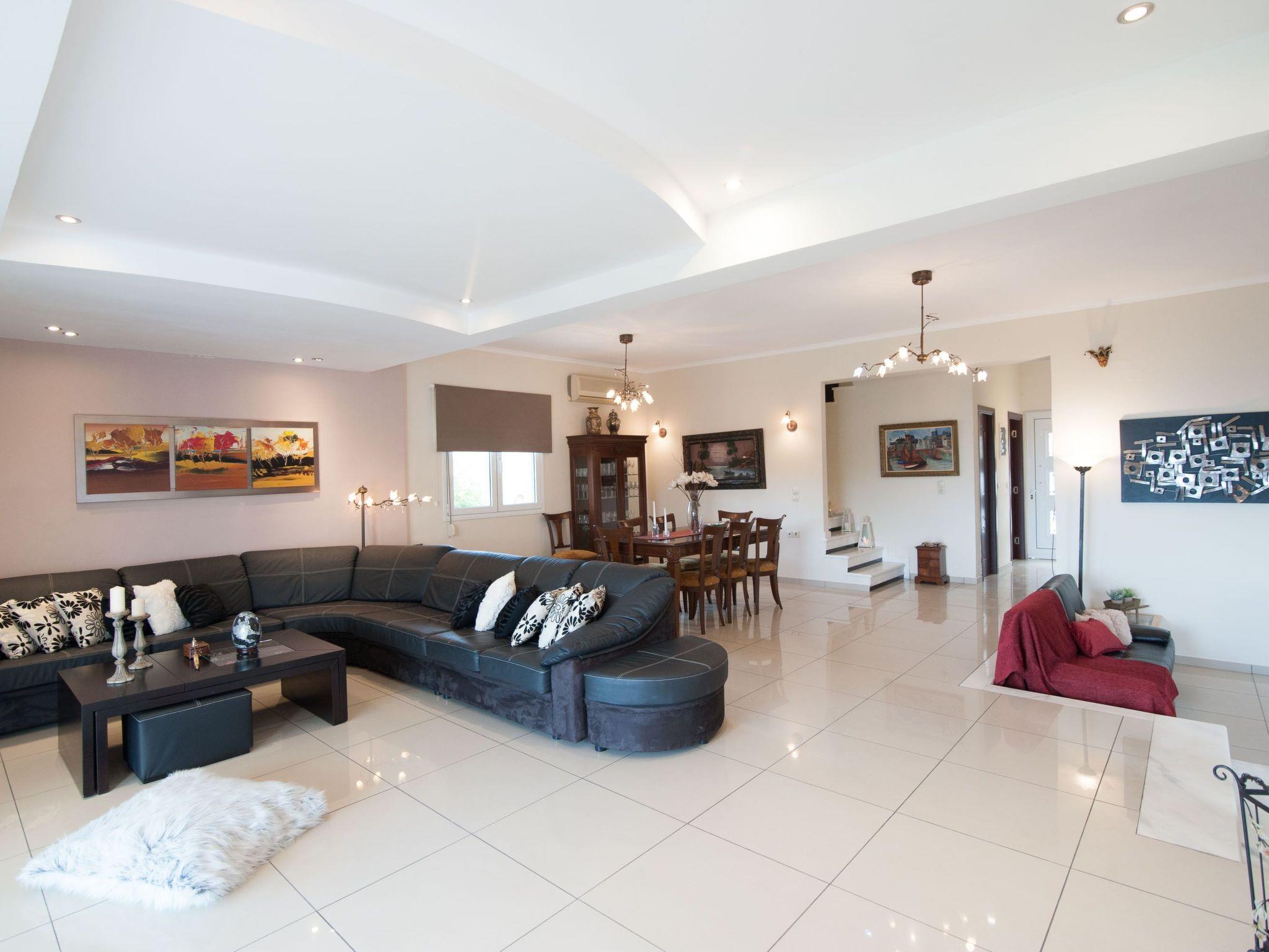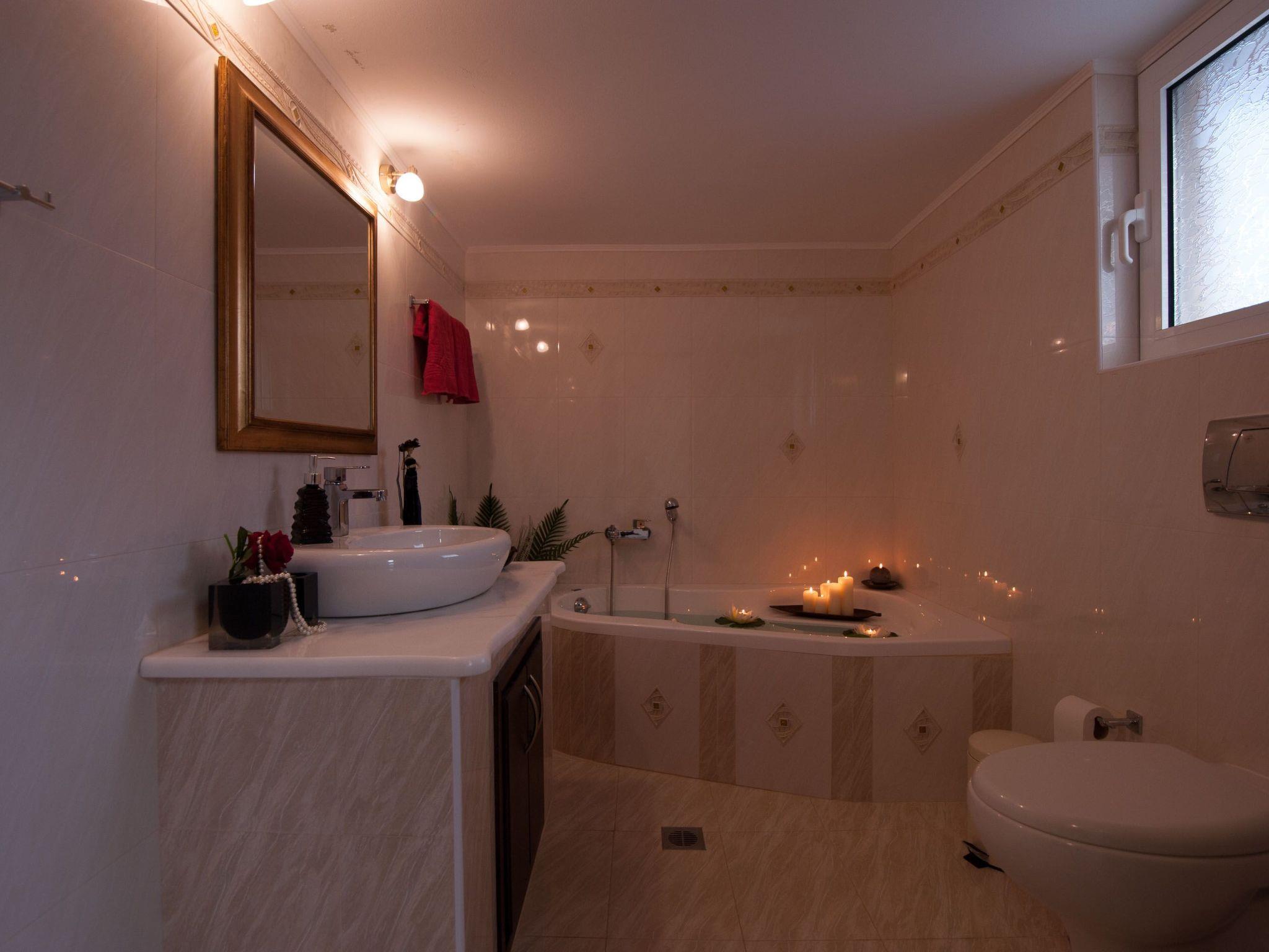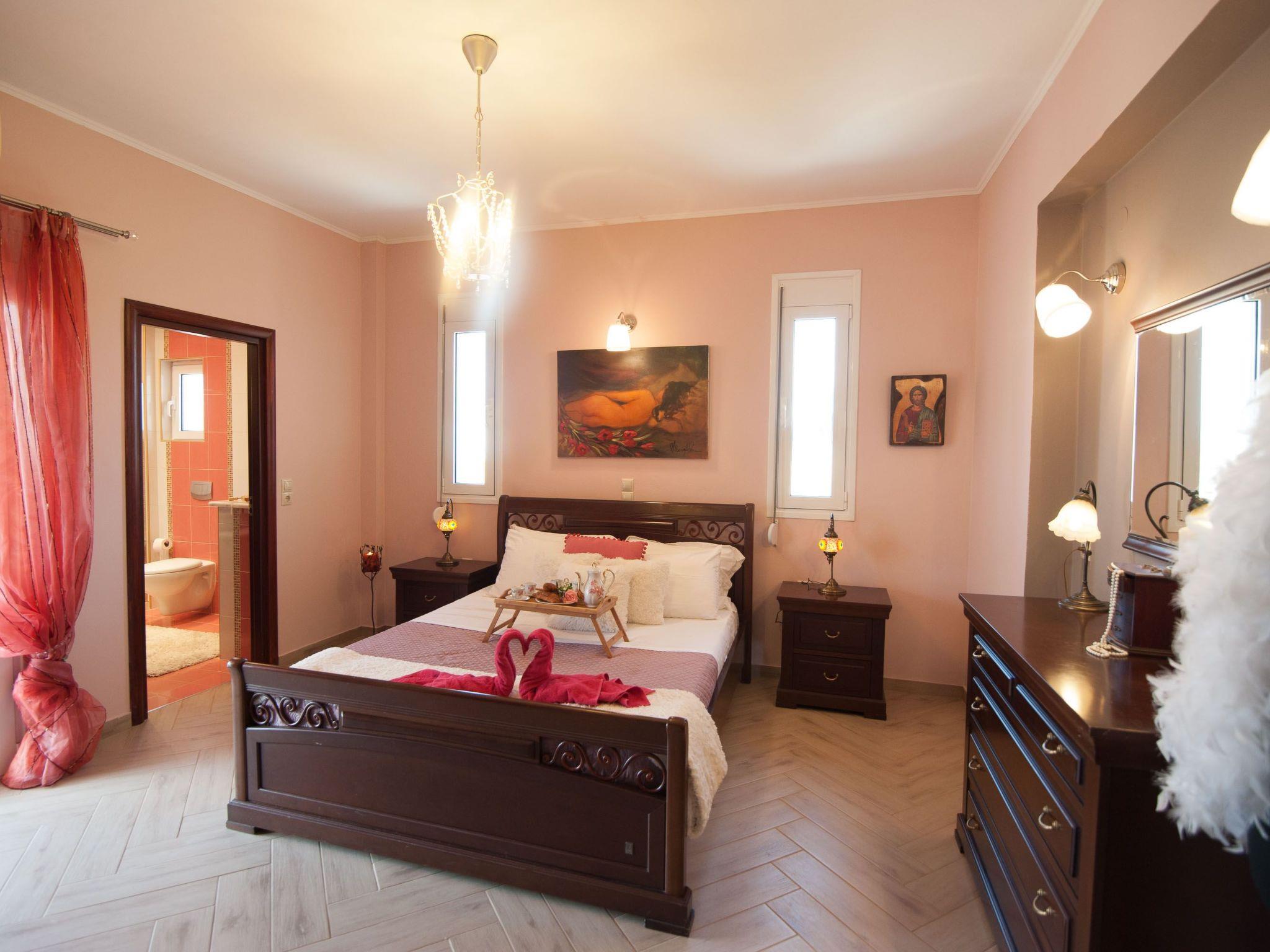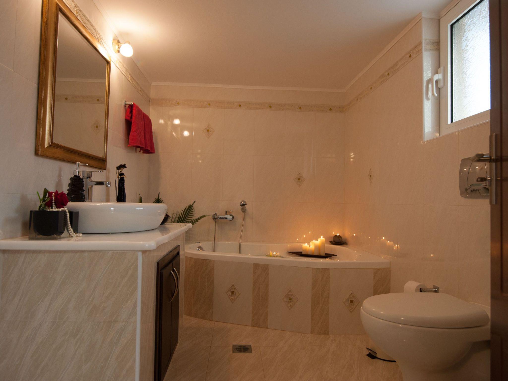 The villa offers 4 bedrooms in an elegant style, fully equipped and can accommodate 8-10 people. Each room has its own balcony overlooking the Cretan Sea and the mountains. It also offers 3 bathrooms (1 with bathtub and 2 with hydromassage cabins). They are equipped with a washing machine, hairdryer and towels.